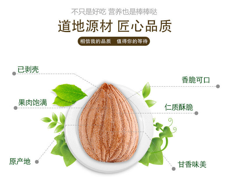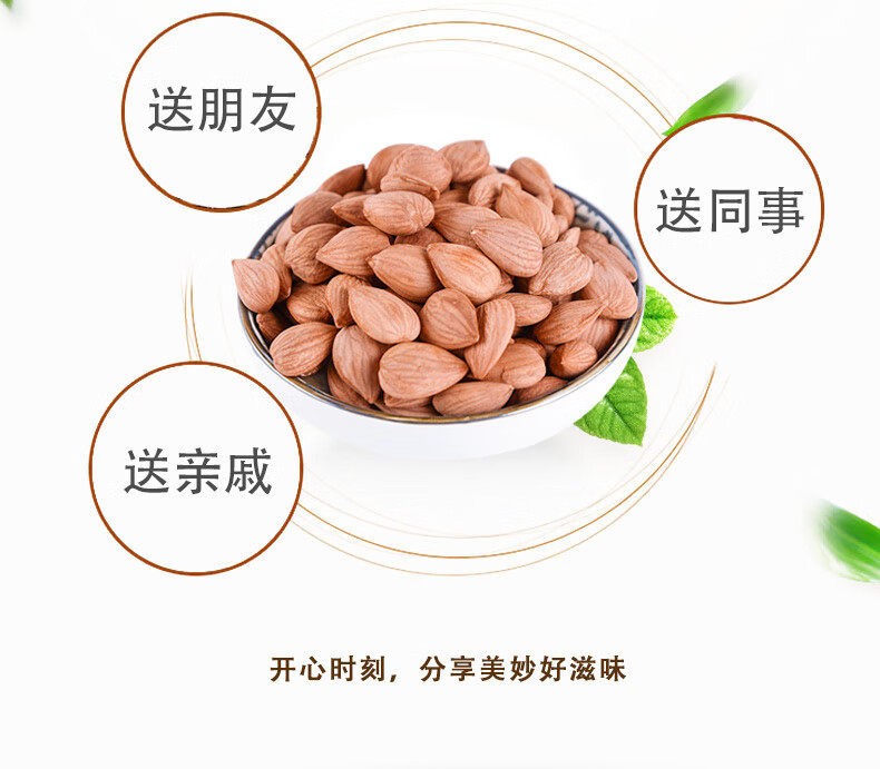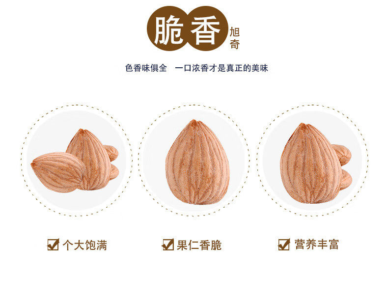 | Packaging specifications | 100g ripe almonds,250g ripe almonds,500g ripe almonds,1000g ripe almonds,1500g ripe almonds,2500g ripe almonds |