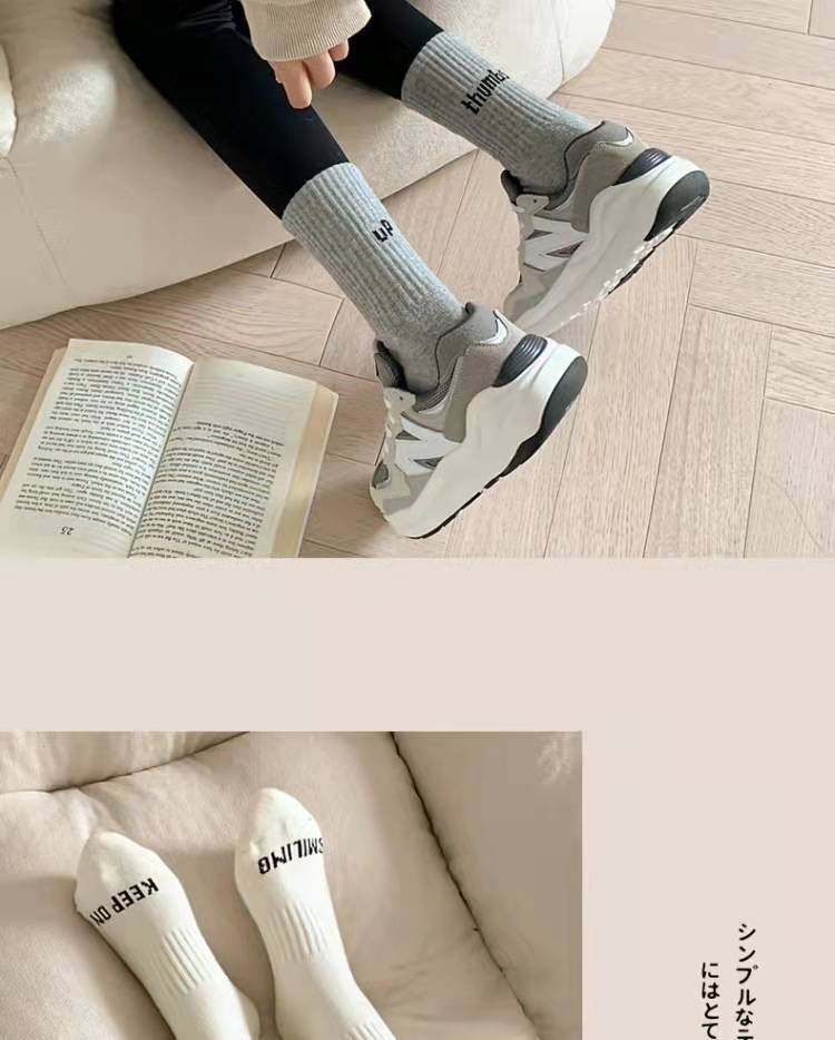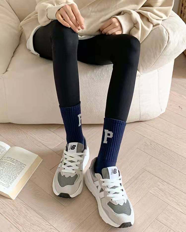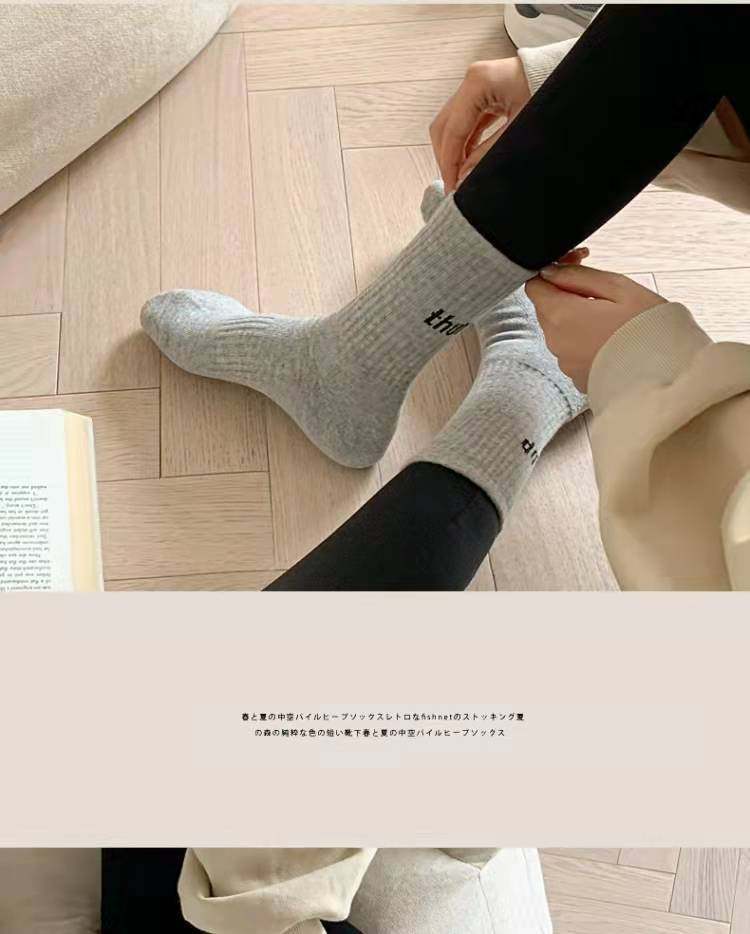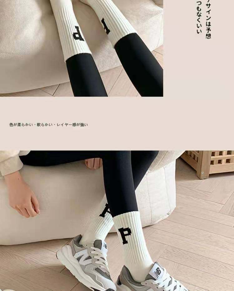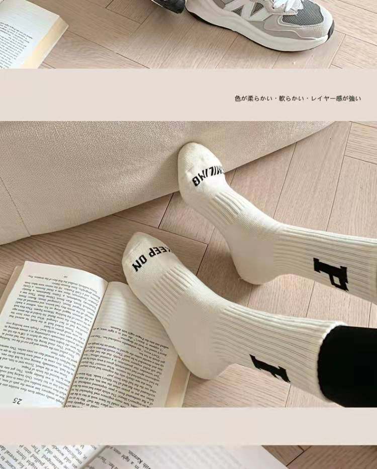 Women's Mid-Calf Socks Paired with Shark Pants, Trendy Ins Influencer Letter New Spring and Autumn Long Socks