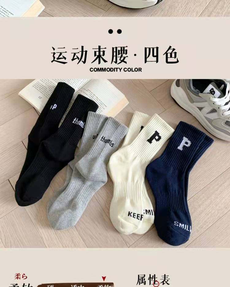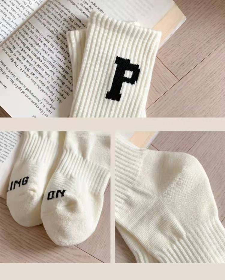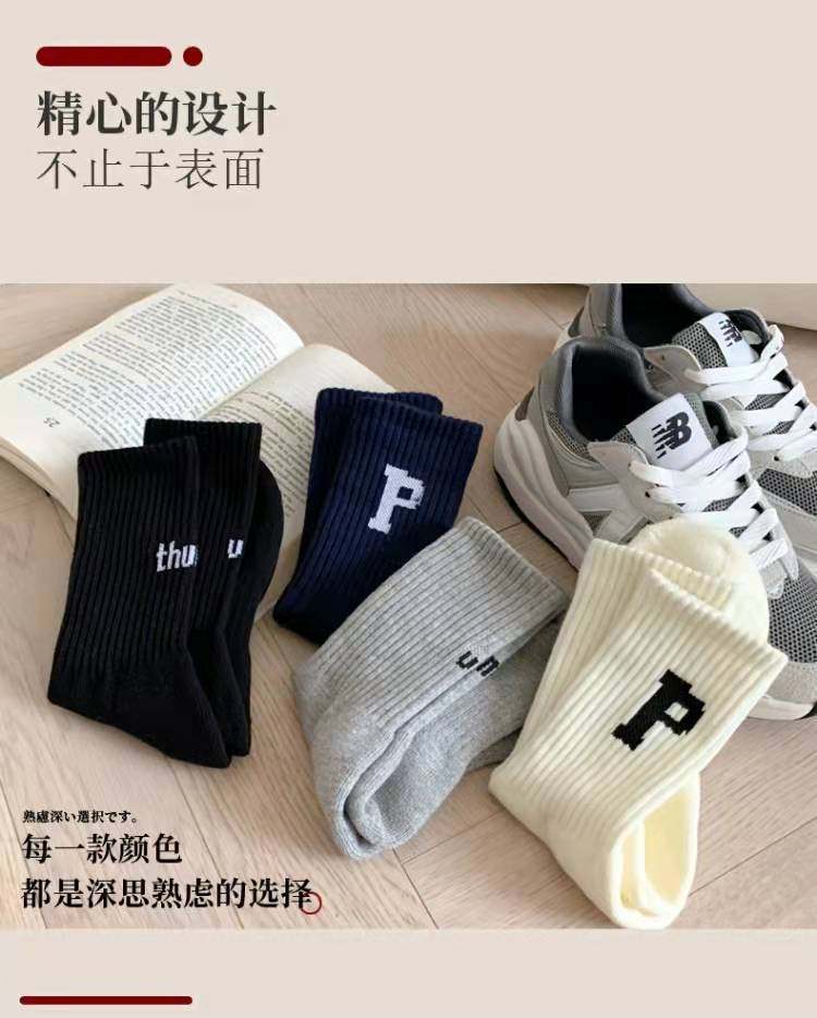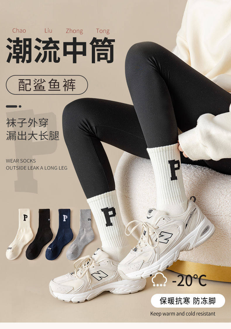 Women's Mid-Calf Socks Paired with Shark Pants, Trendy Ins Influencer Letter New Spring and Autumn Long Socks