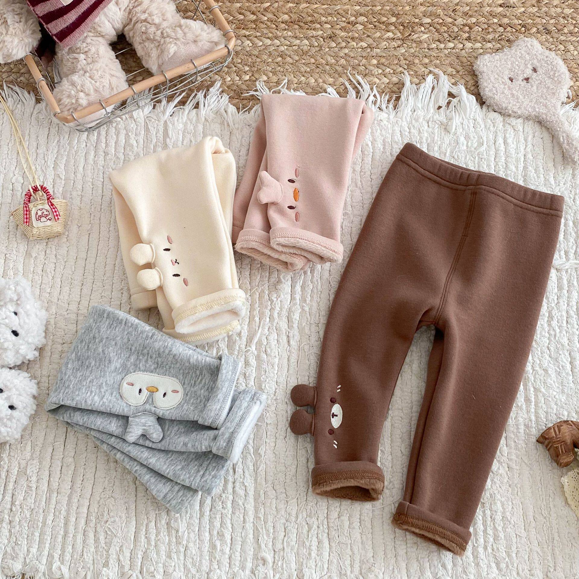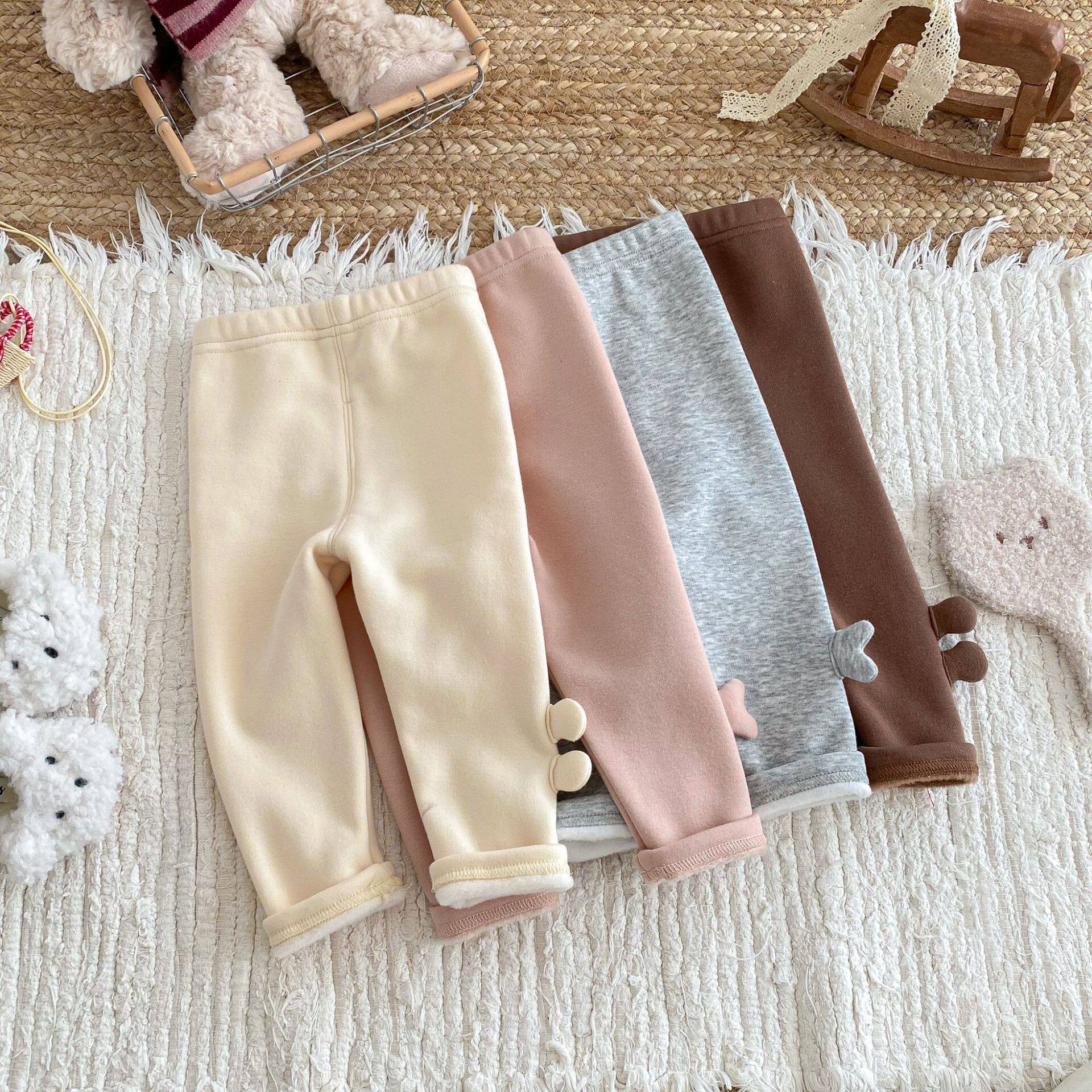Girls' Super Cute Leggings 2025 New Winter Baby Stereo Ear Thickeneded Casual Pants Kidsren's Winter Pants
