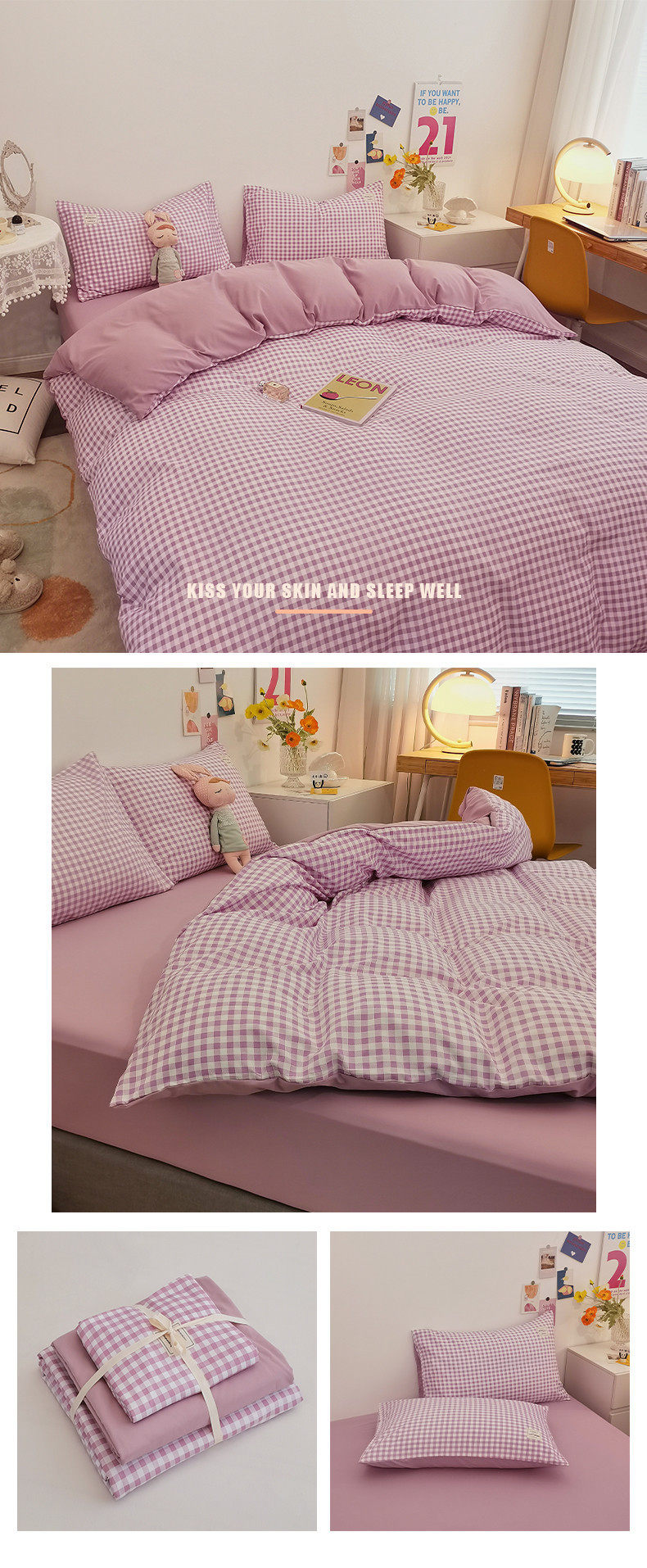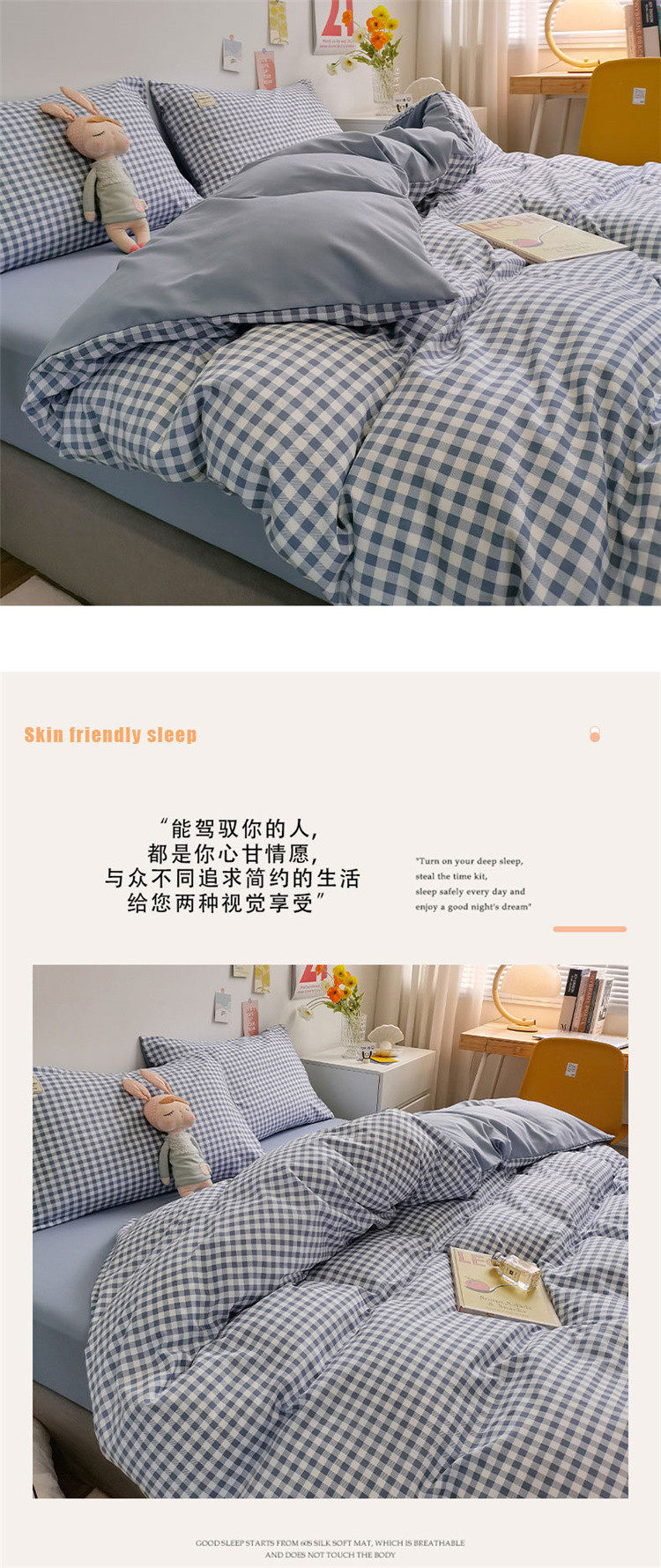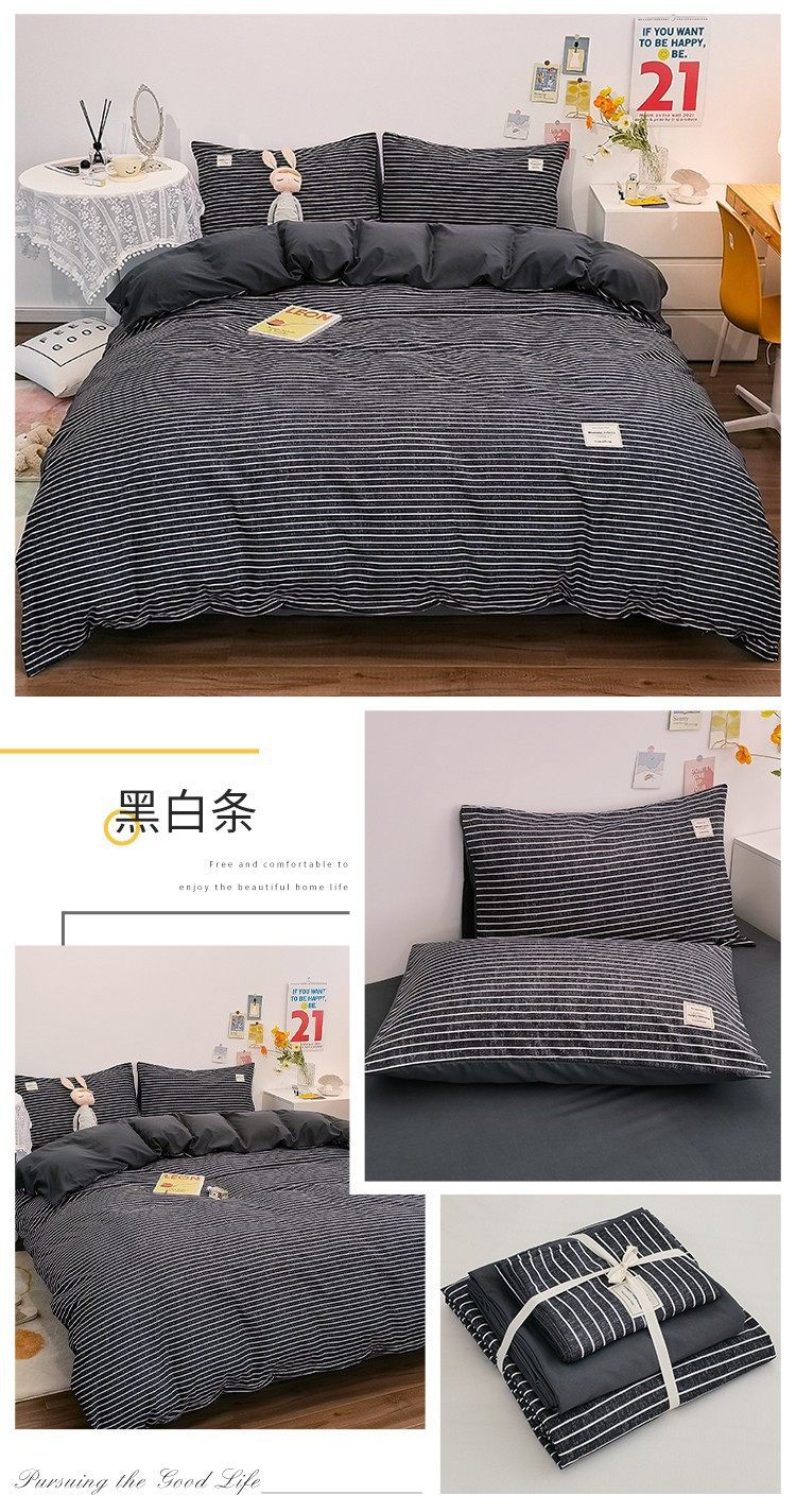 Nude Sleeping Pure Washed Cotton Four-Piece Set, Skin-Friendly Ins Bed Bed Sheets and Quilt Cover, Small New Dormitory Bed Bed Sheets Three-Piece Set