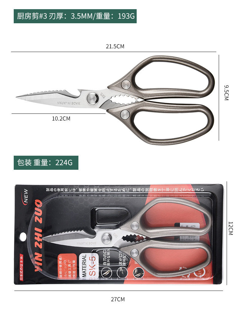 German Kitchen Scissors Household Multifunctional Scissors Sk5 Powerful Chicken Bone Scissors Kitchen Food Grade Barbecue Scissors