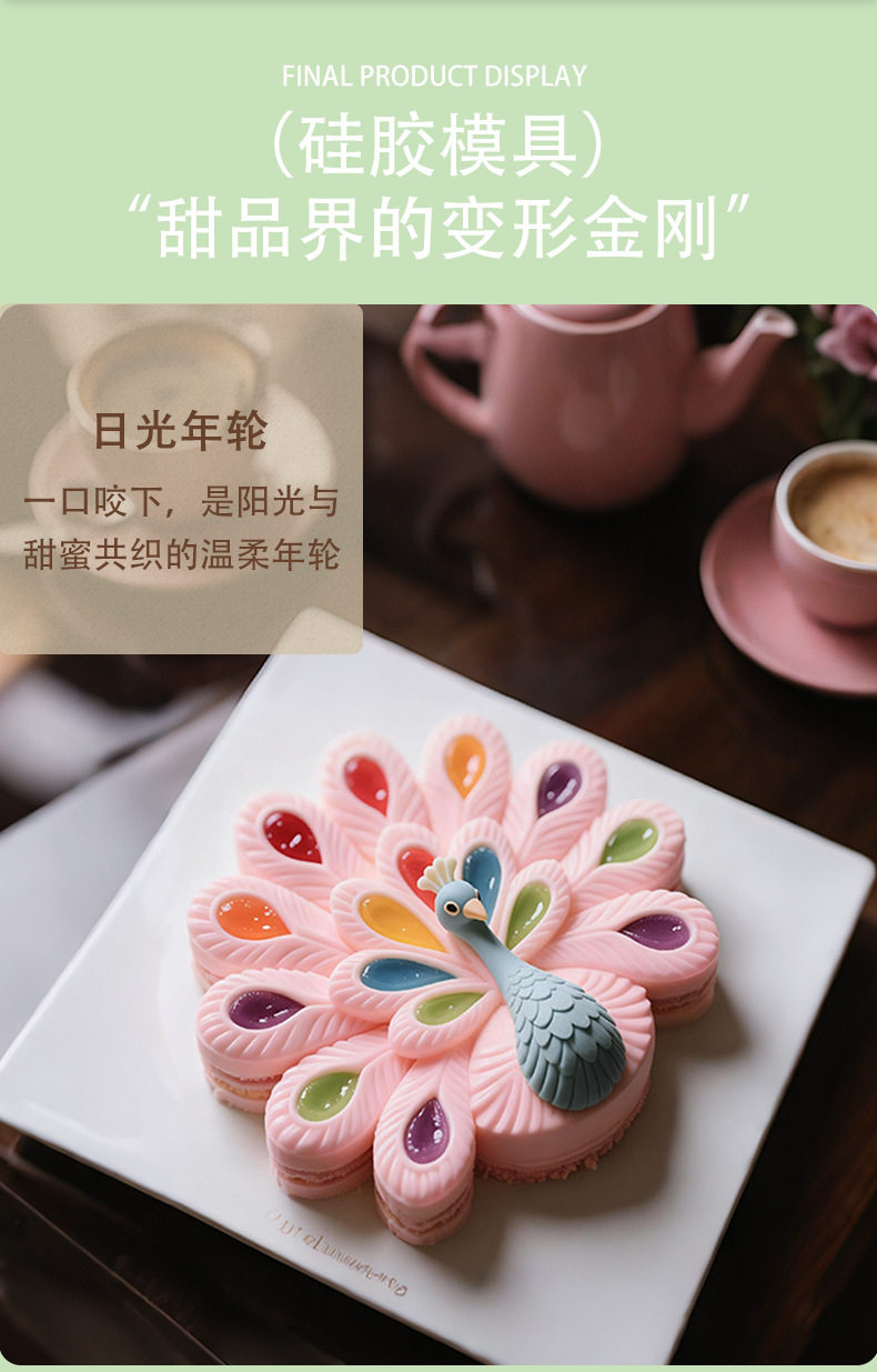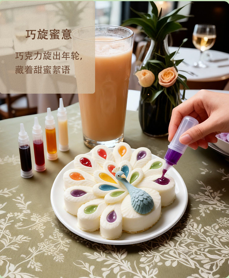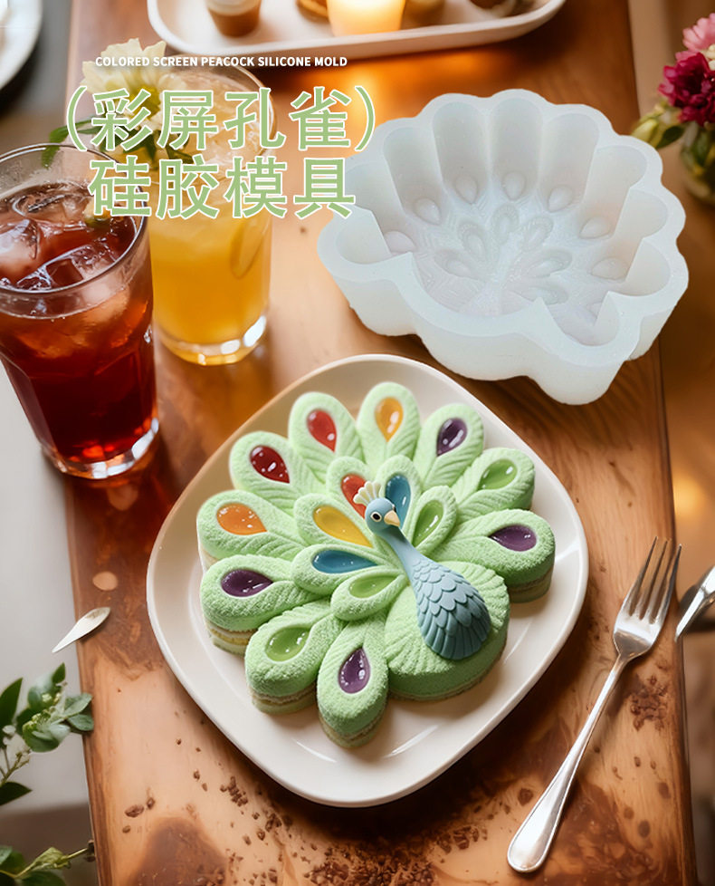 Mison Color Screen Peacock Mousse Cake Silicone Mold Oven-Free Dessert Fun DIY Chocolate Grinder