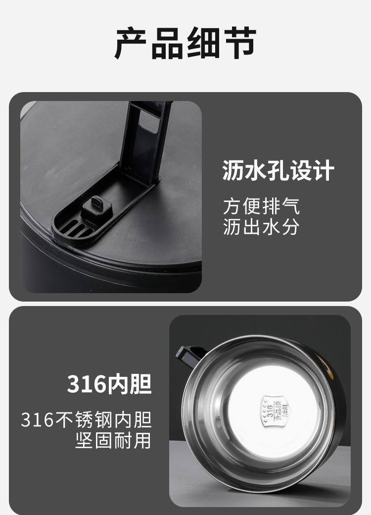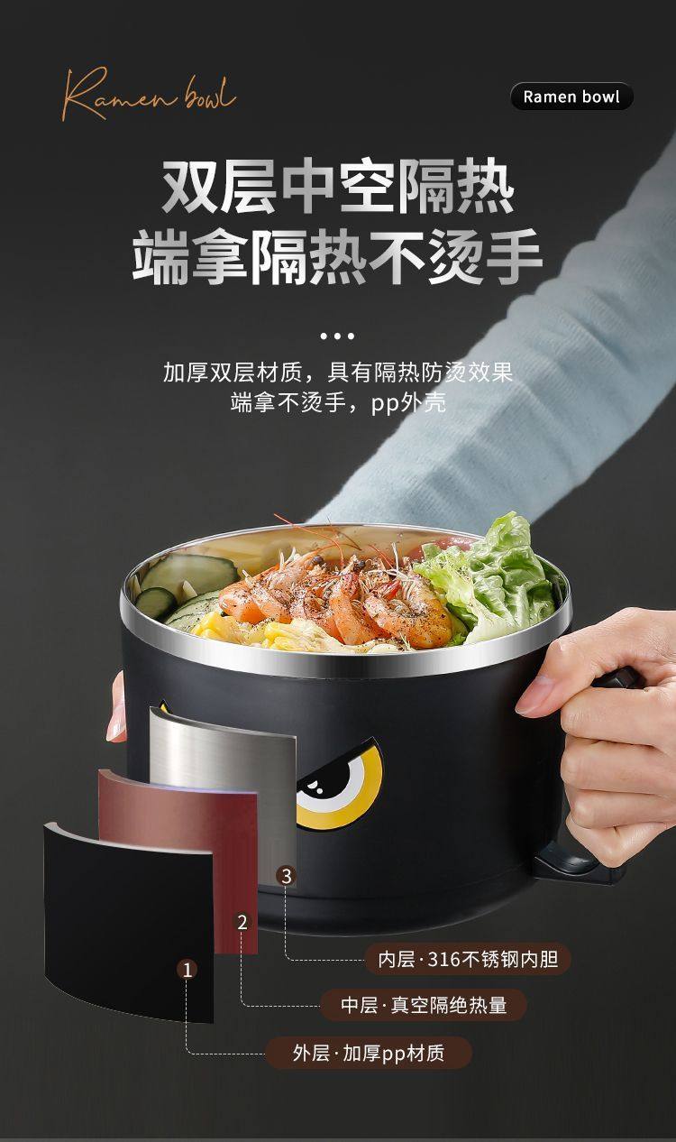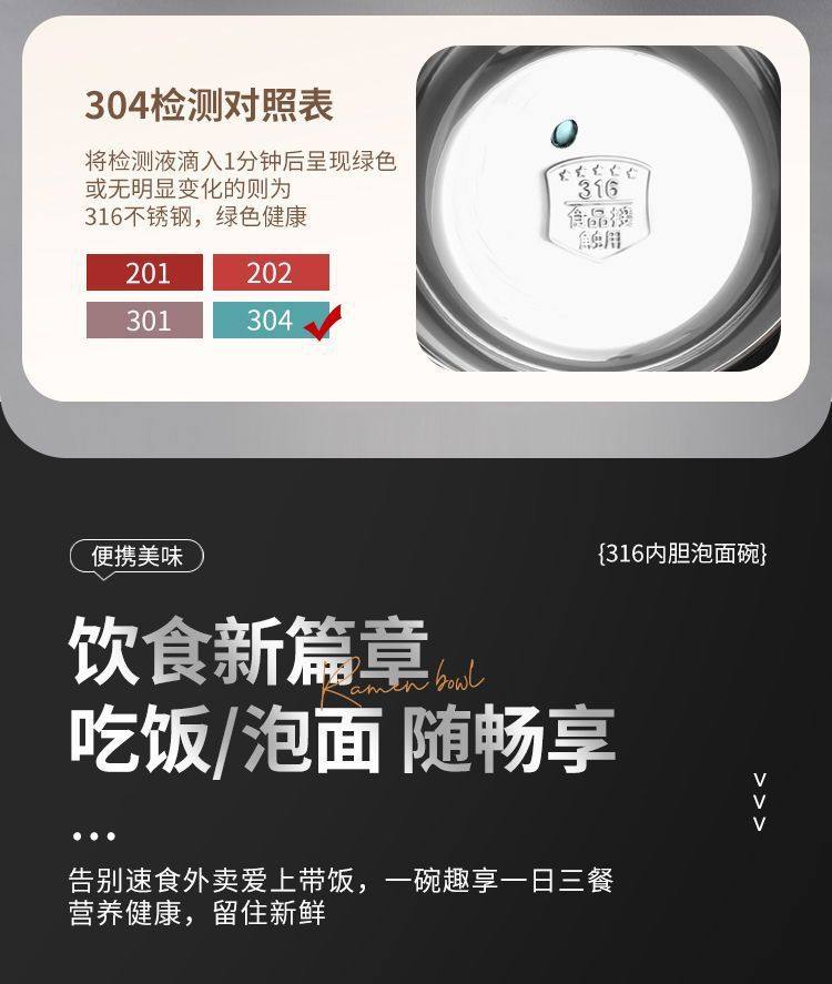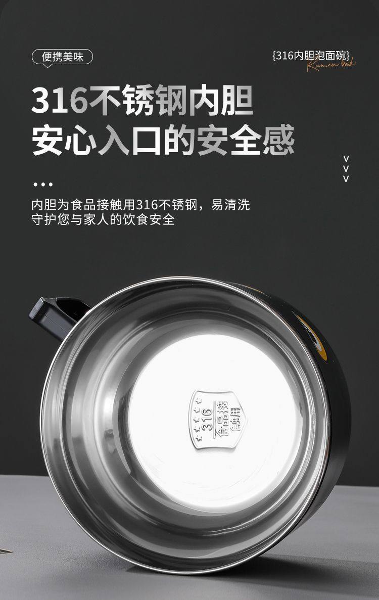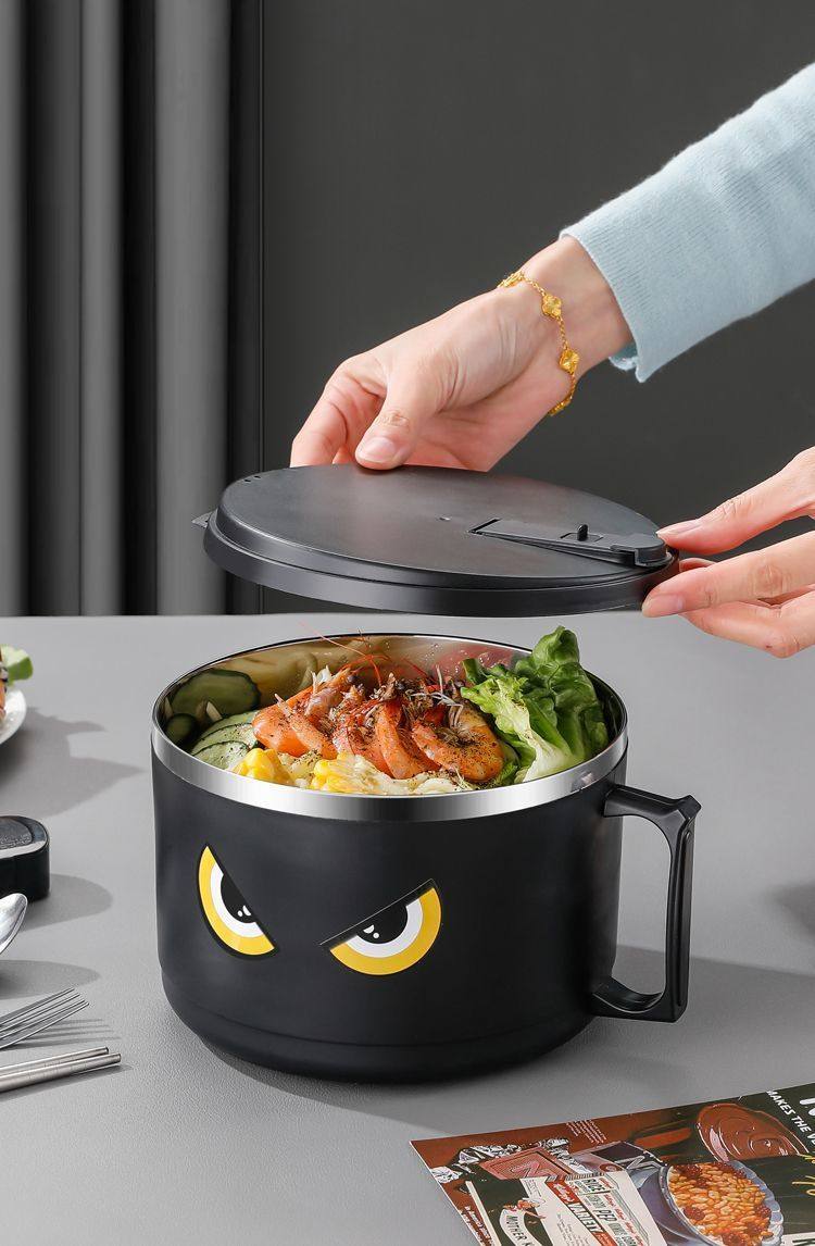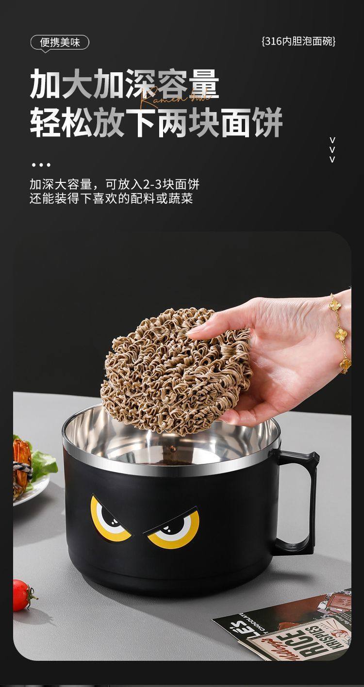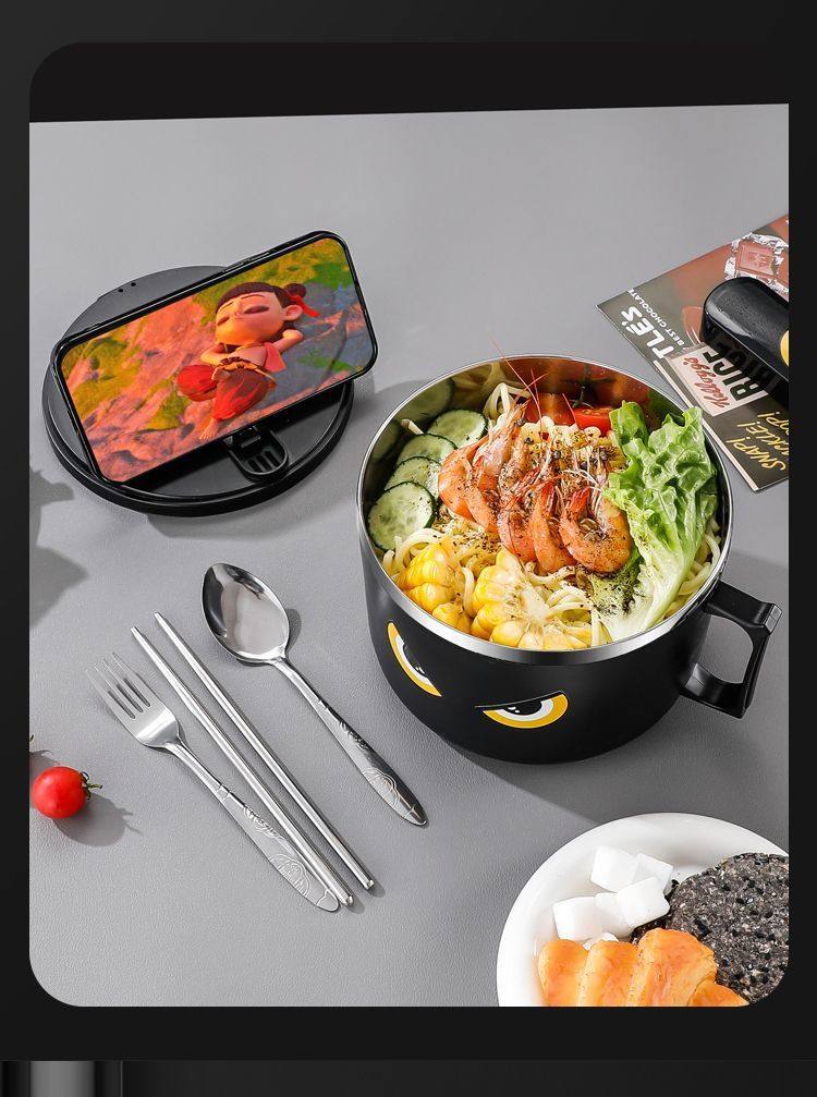 316 Stainless Steel Instant Noodle Bowl with Lid, Japanese-Style Drainable Water Bowl, Dormitory Large-Capacity Student Lunch Box