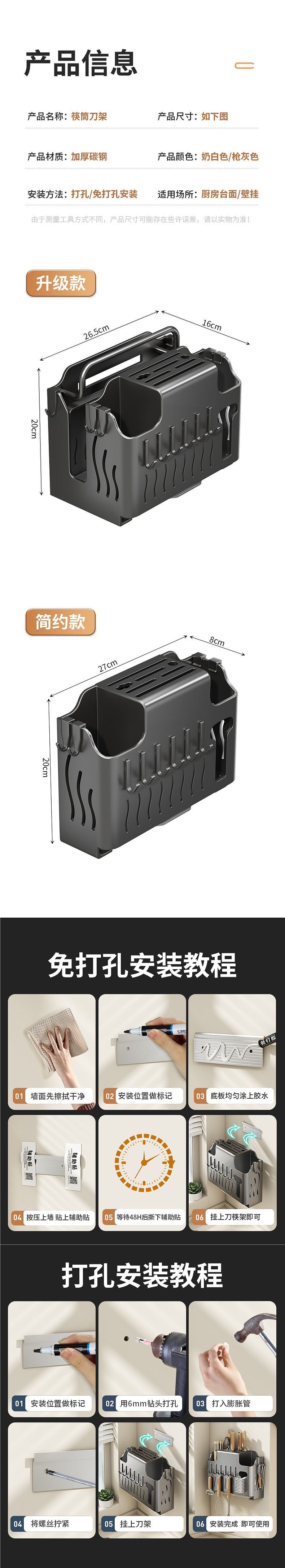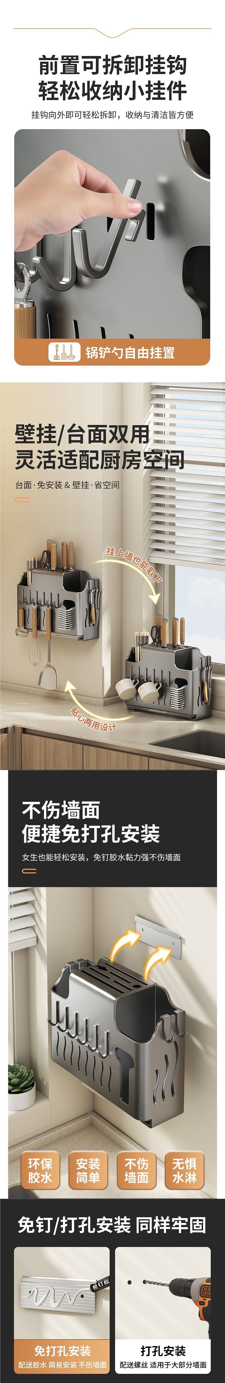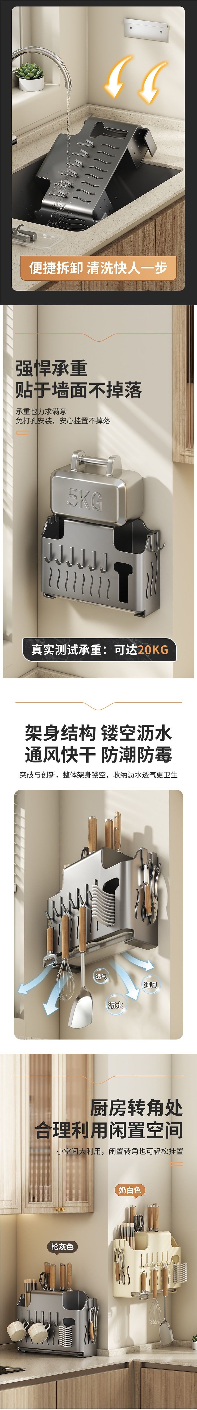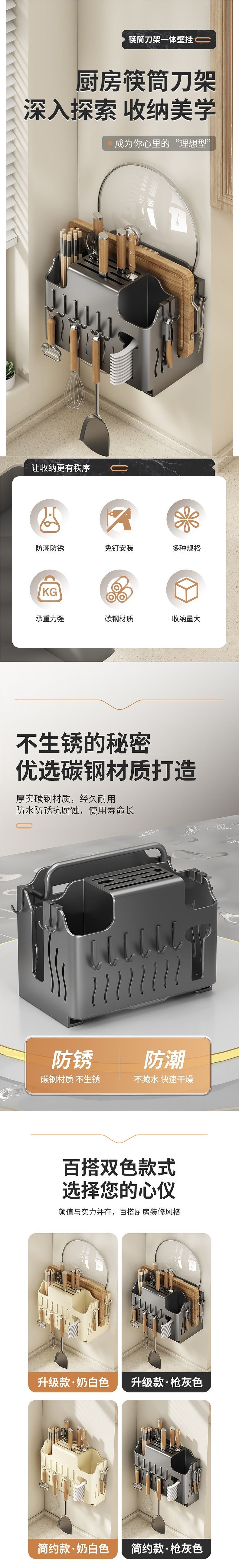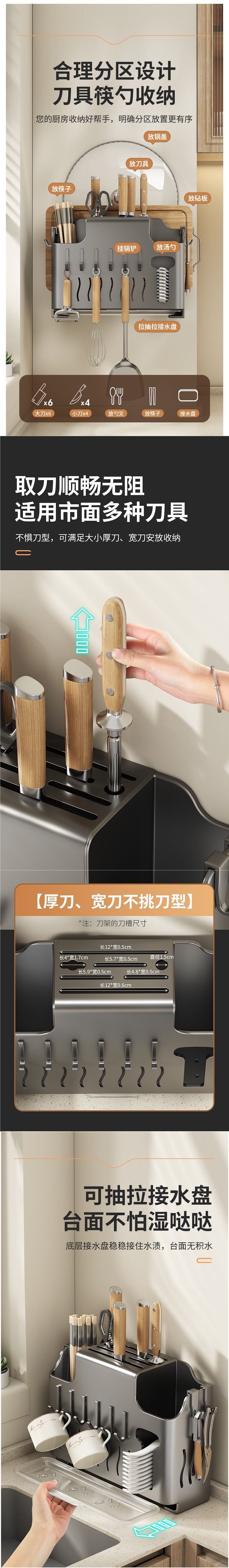 Knife Holder Storage Rack Kitchen Shelf Cutting Board Rack Knife Pot Lid Chopstick Cage Integrated Storage Rack No-Drill Wall-Mounted Rack