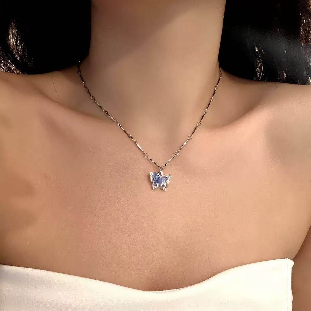 2025 Fresh Summer Cool Double-Layer Butterfly Necklace Accessories Luxury Niche Hot Girl Choker Clavicle Chain Necklace