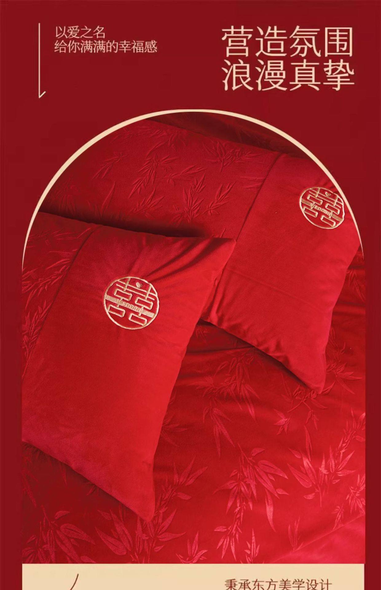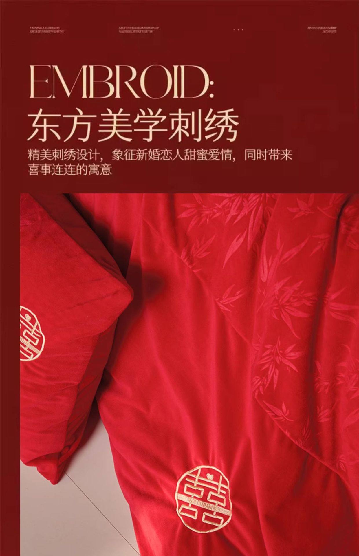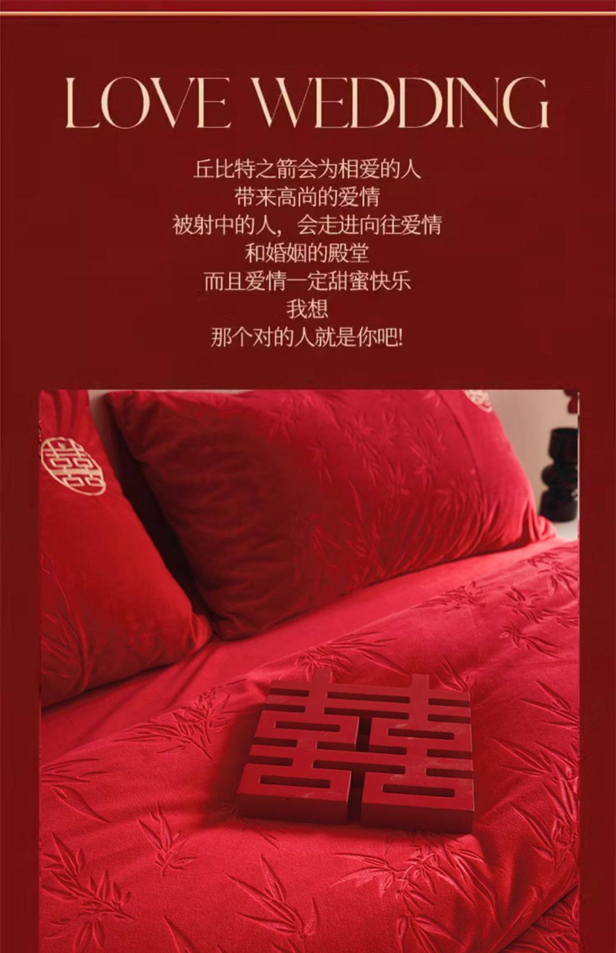 Milk Velvet Bed Four-Piece Set, Bright Red Chinese Style High-End Embroidered Bed Sheetss and Quilt Covers, Winter Wedding Bedding