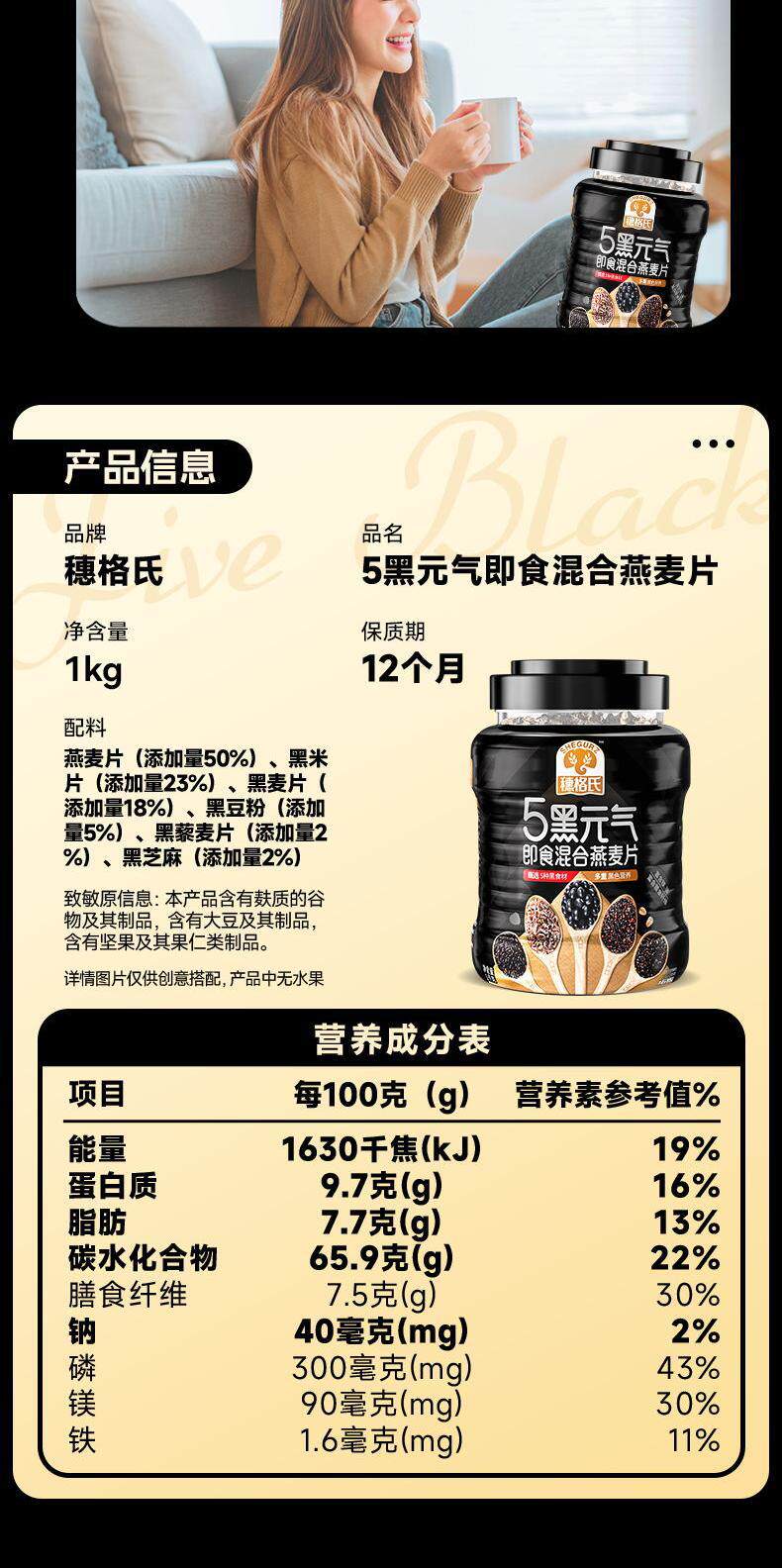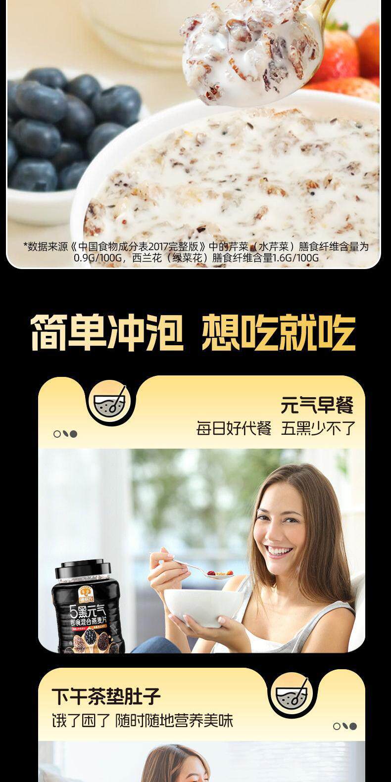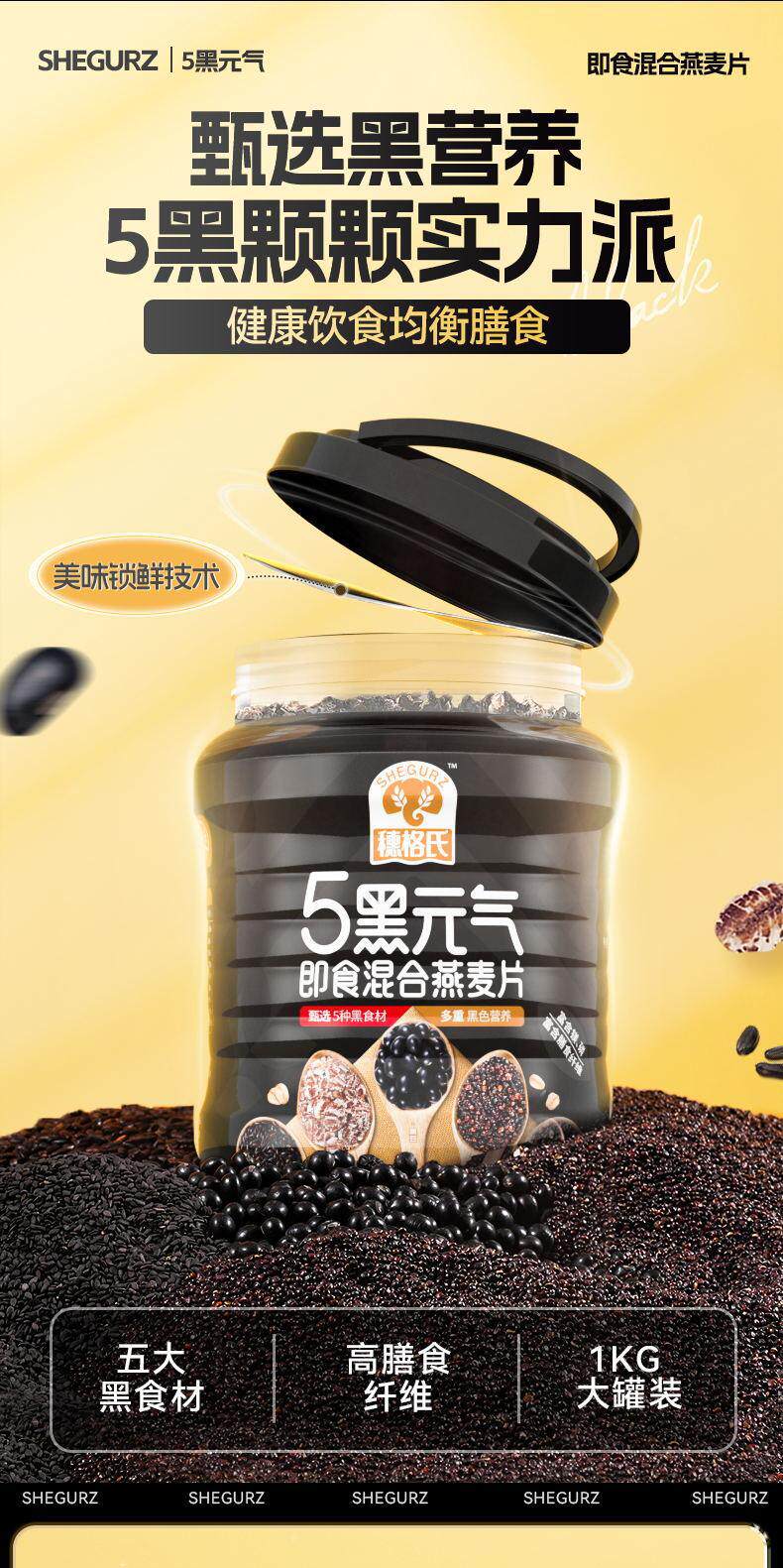 Suige's 5 Black Mixed Oatmeal 1000g Canned Nutritious Breakfast Ready-To-Eat Cereal Meal Replacement Without Additives