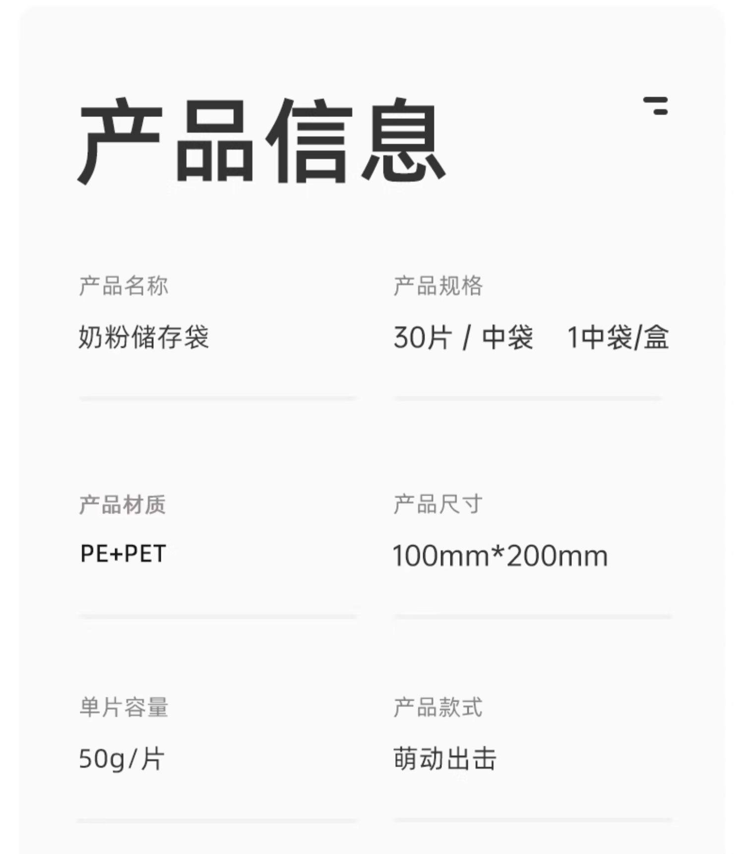 | Color | [linda mommy] milk powder storage bag 30 pieces |