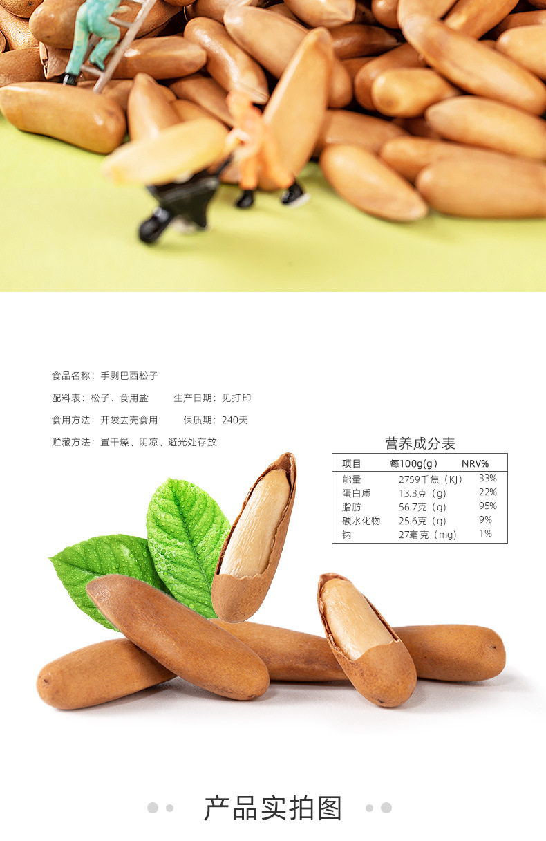 Bibi Miao New Hand-Peeled Large Pine Nuts, Large Pine Nuts, Hand-Peeled, Individually Packaged, Plump, Brazilian Wholesale