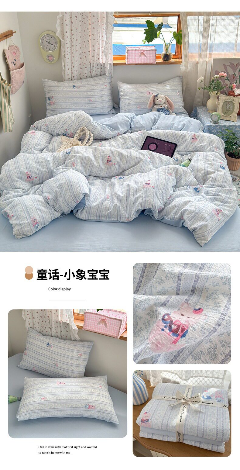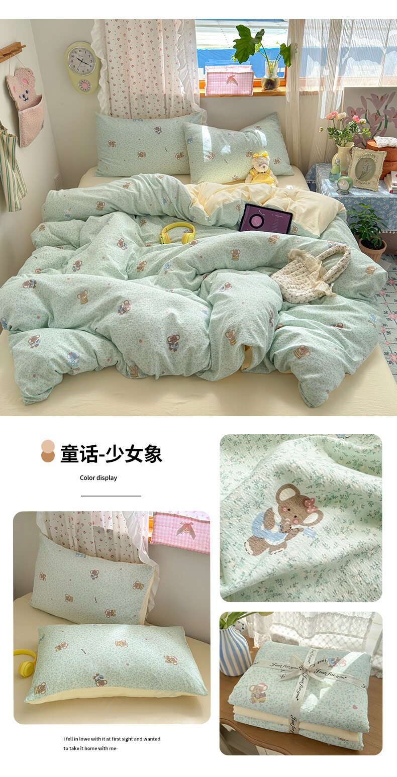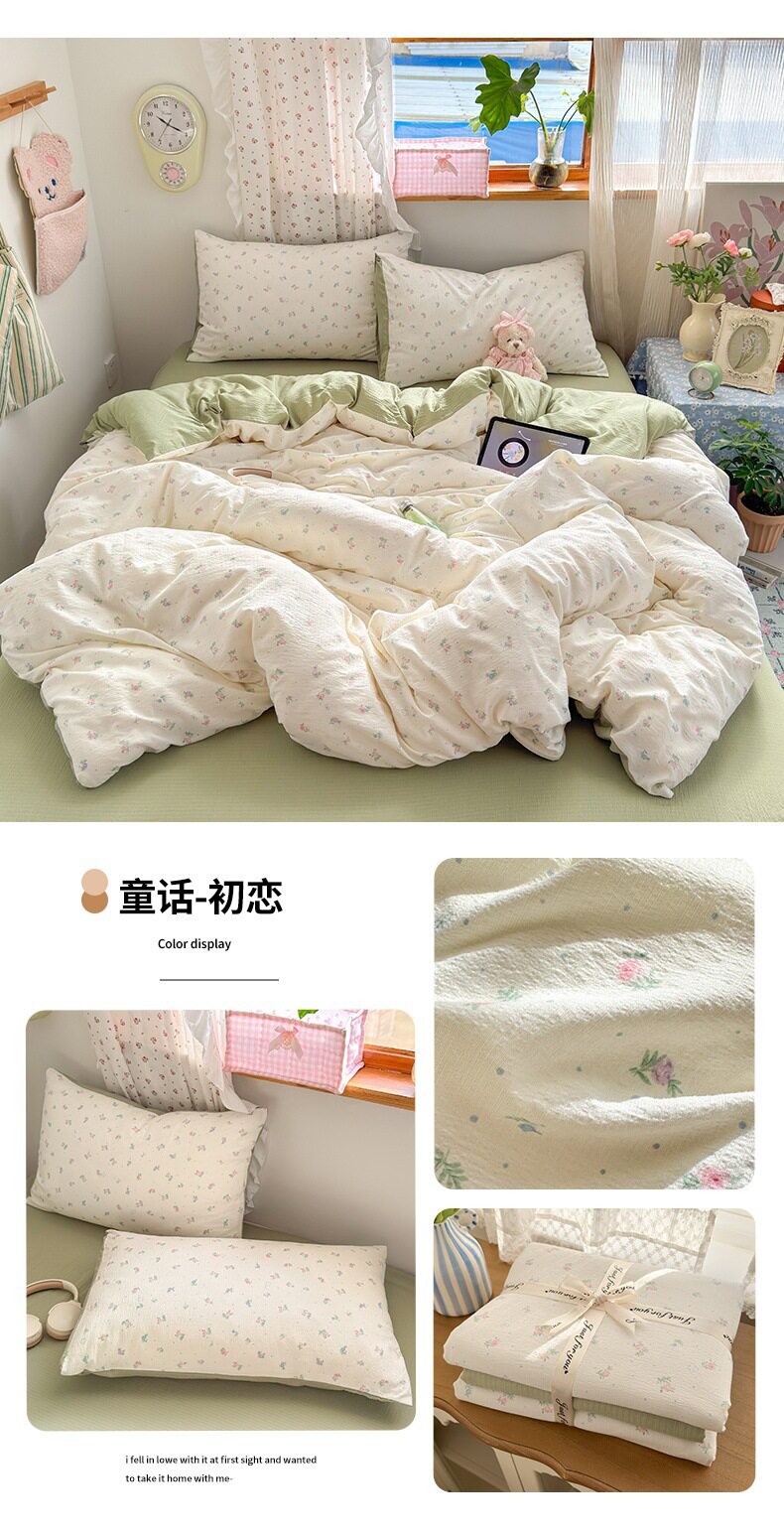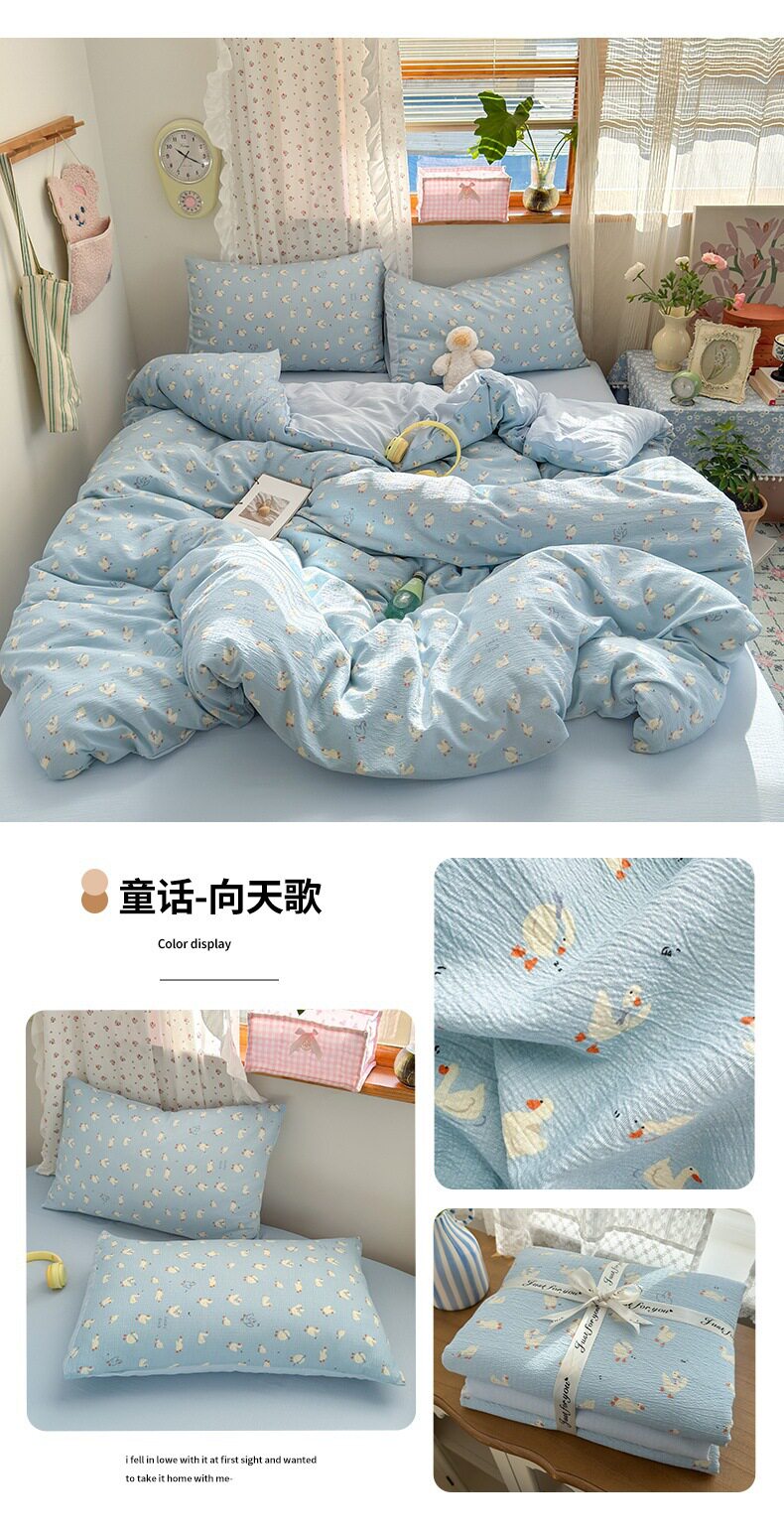Category a Maternal and Infant Grade Four-Piece Set of Pure Cotton Double-Layer Yarn Bed Bed Sheetss and Quilt Covers New Dormitory Bed Bed Sheetss Three-Piece Set