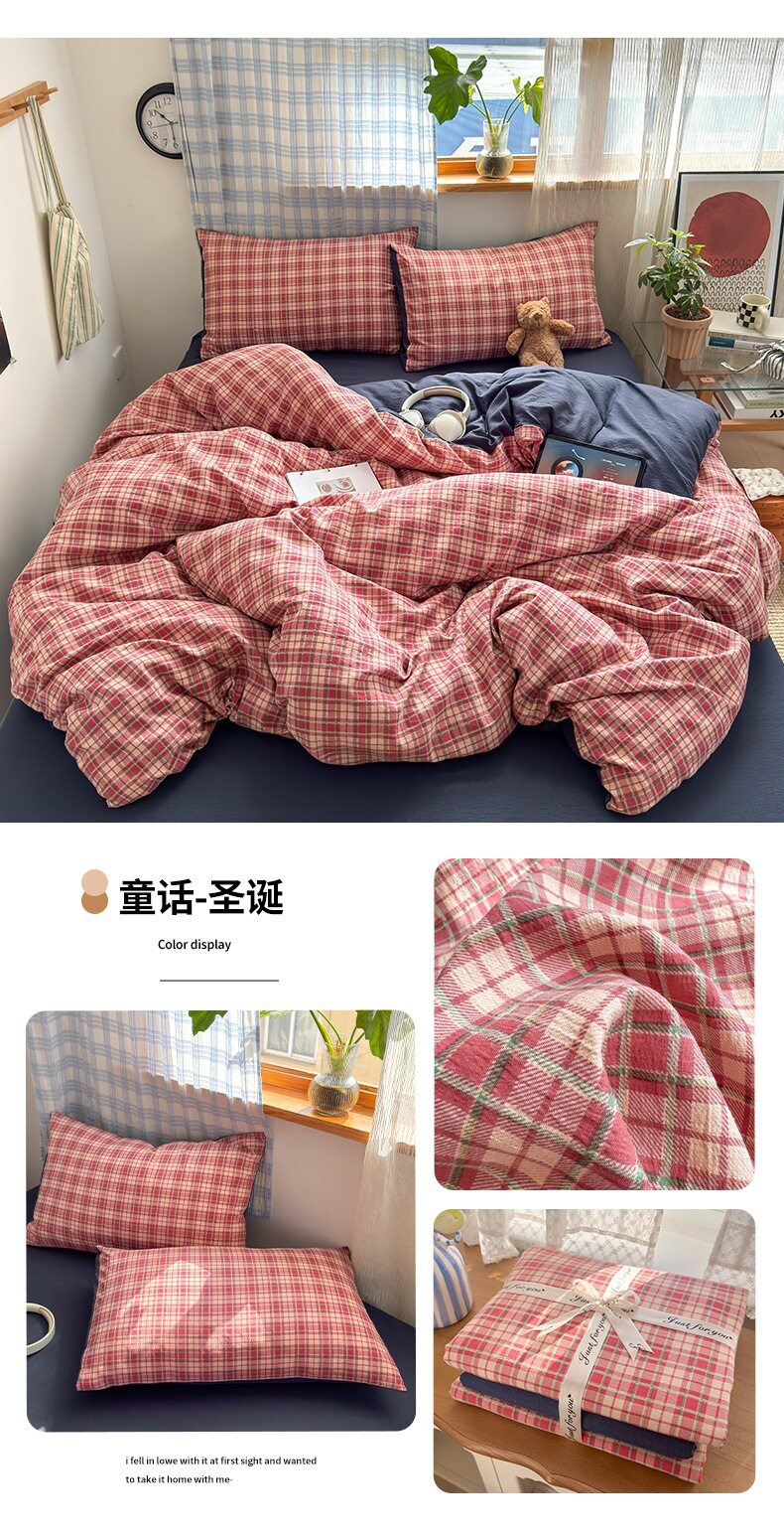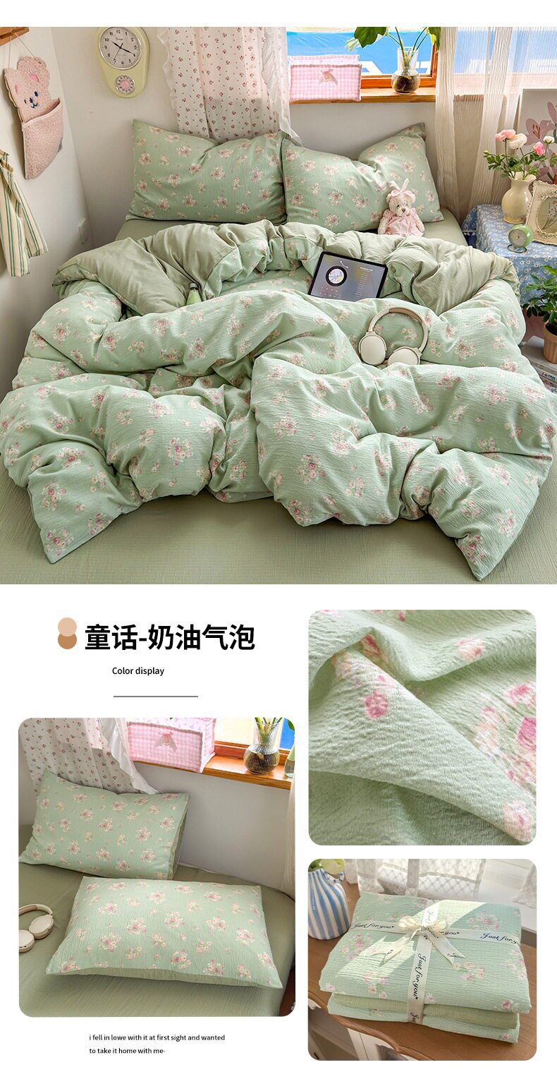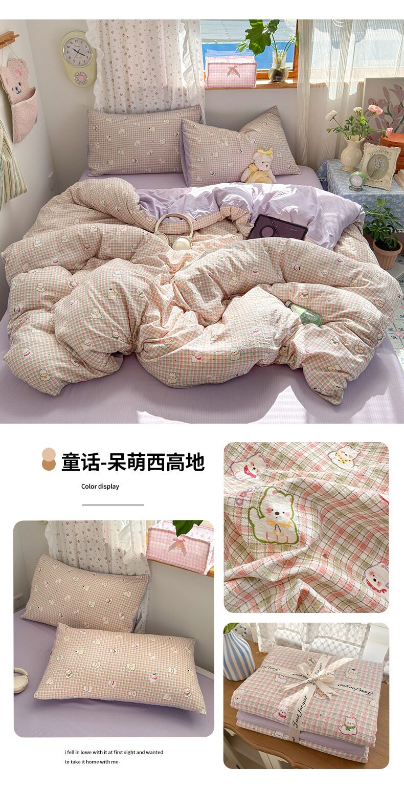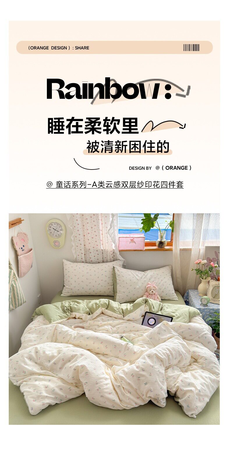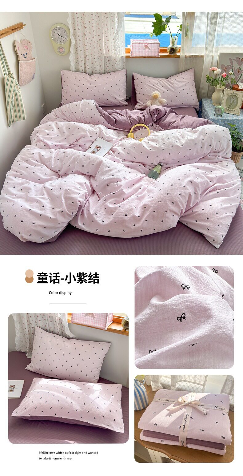 Category a Maternal and Infant Grade Four-Piece Set of Pure Cotton Double-Layer Yarn Bed Bed Sheetss and Quilt Covers New Dormitory Bed Bed Sheetss Three-Piece Set