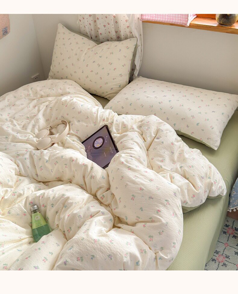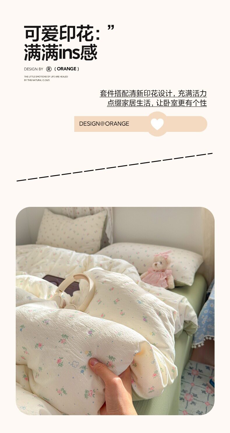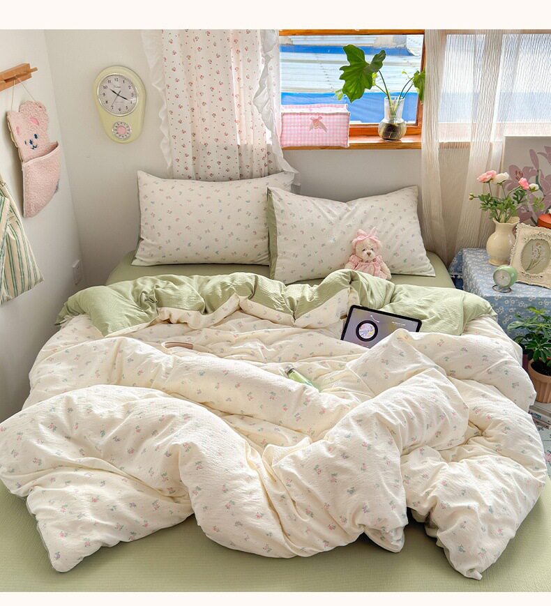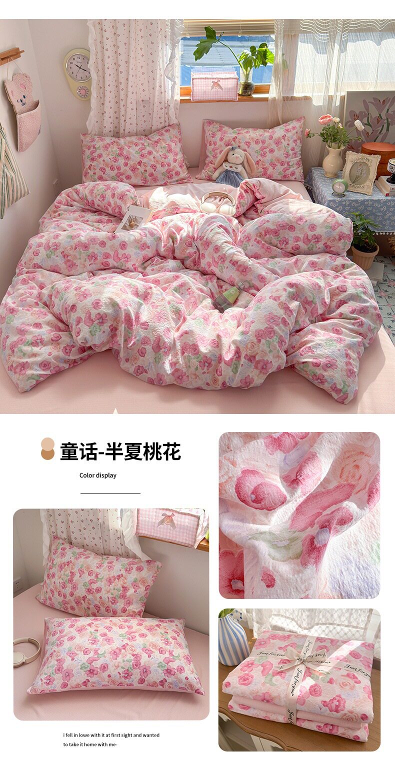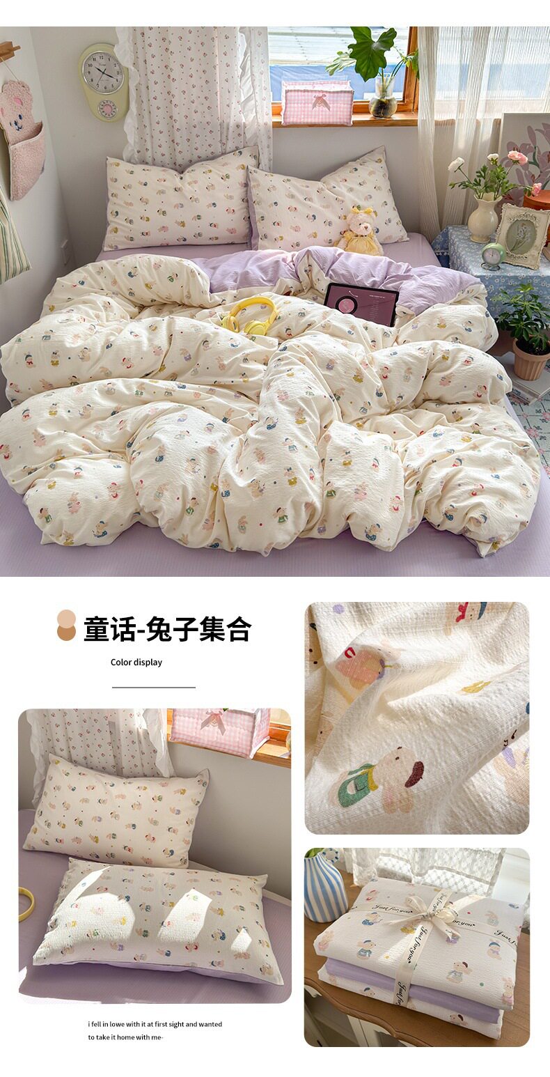 Category a Maternal and Infant Grade Four-Piece Set of Pure Cotton Double-Layer Yarn Bed Bed Sheetss and Quilt Covers New Dormitory Bed Bed Sheetss Three-Piece Set