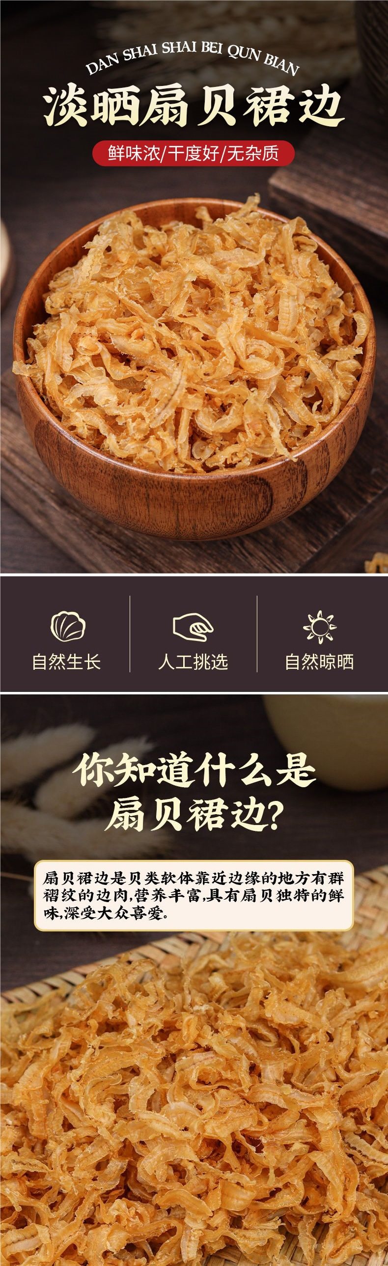 | Packaging specifications | 250g scallop and scallop skirt (90% dry, no killing, no fishy smell, easy to store),500 grams of scallops and scallops skirt (90% dry, no killing, no fishy smell, easy to store) |