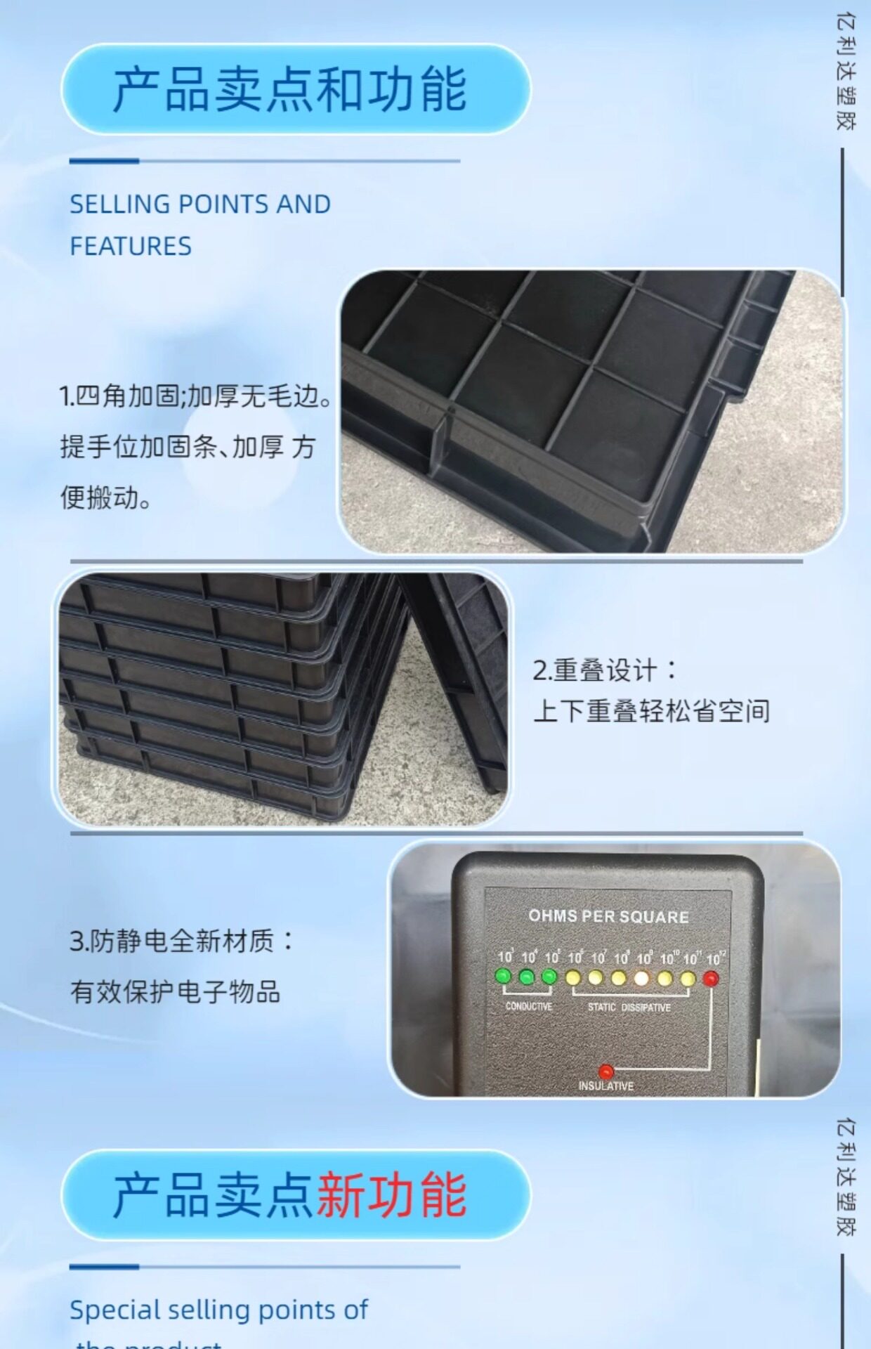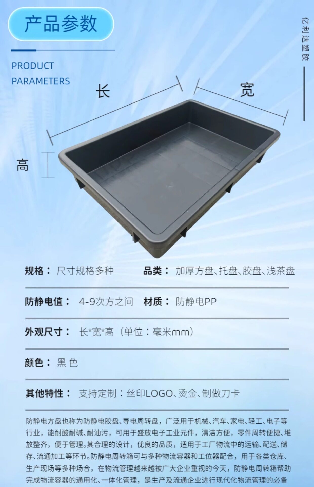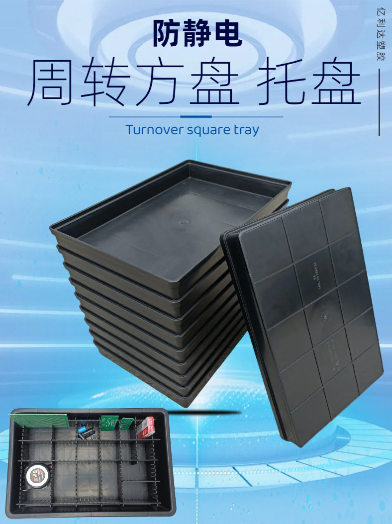 Anti-Static Tray Anti-Static Black Plastic Square Plate Electronic Component Box Turnover Box Plastic Tray Box Thickeneded
