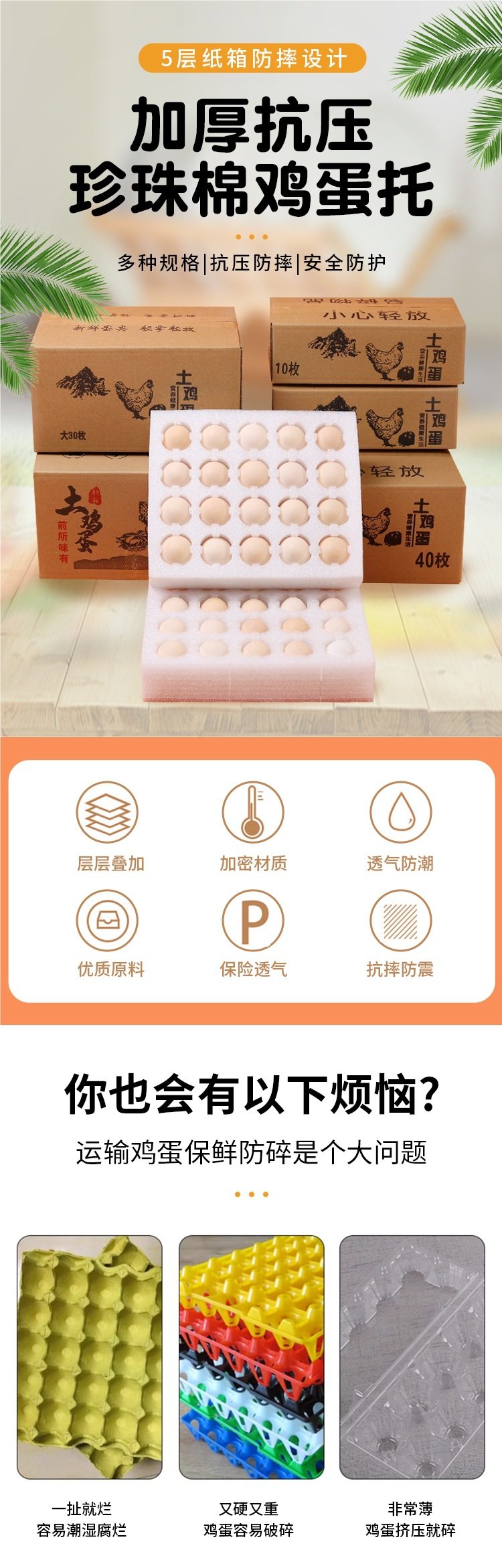 | Specifications and models | 10 pieces [40 to 50 grams] egg tray + carton,20 pieces [40 to 50 grams] egg tray + carton,20 pieces [50 to 60 grams] egg tray + carton,30 pieces [40 to 50 grams] egg tray + carton,30 pieces [50 to 60 grams] egg tray + carton,40 pieces [40 to 50 grams] egg tray + carton,40 pieces [50 to 60 grams] egg tray + carton,50 pieces [40 to 50 grams] egg tray + carton,50 pieces [50 to 60 grams] egg tray + carton,60 pieces [40 to 50 grams] egg tray + carton,60 pieces [40 to 50 grams] egg tray + carton four-layer style,60 pieces [50 to 60 grams] egg tray + carton,100 pieces [40 to 50 grams] egg tray + carton,100 pieces [50 to 60 grams] egg tray + carton,If you need customization or shipping, please contact customer service |