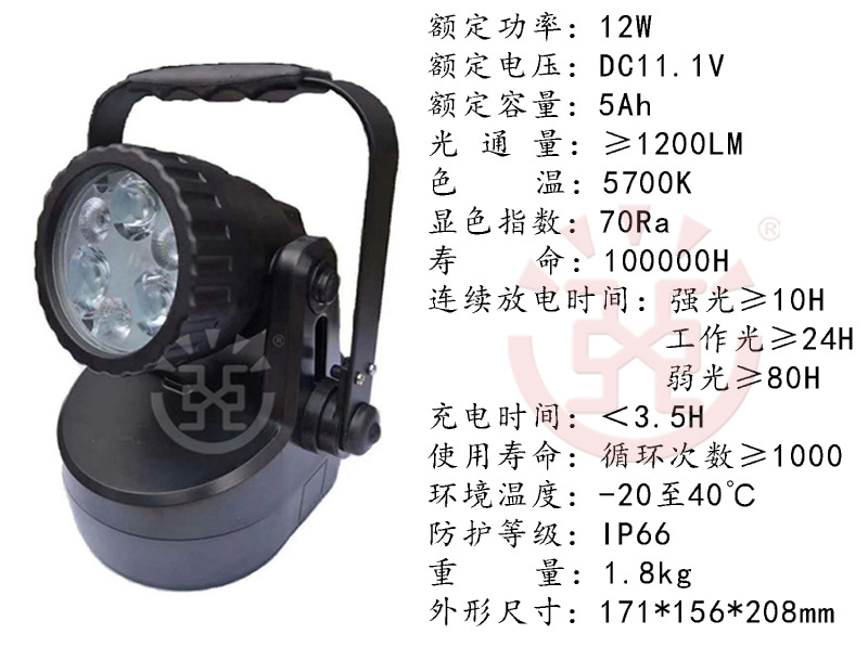 Jiw5282 Lightweight Multi-Functional Strong Light Red and Blue Warning Explosion-Proof Satchel Light Magnetic Rechargeable Work Light