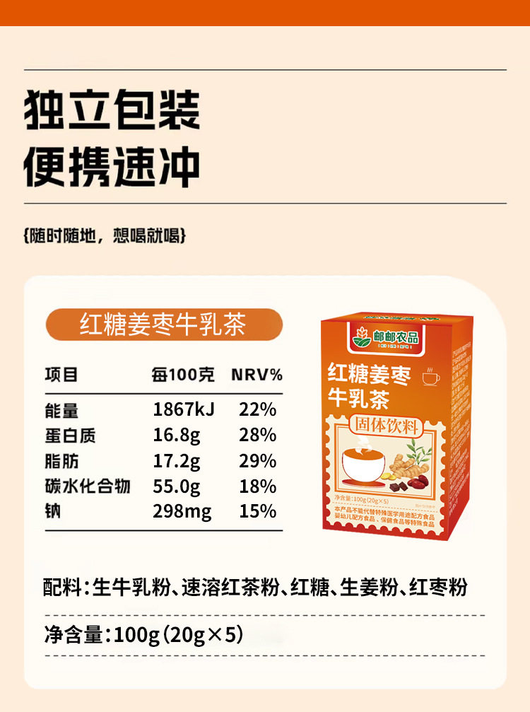 | Item number | Youyou nongpin brown sugar ginger date milk tea 100g |