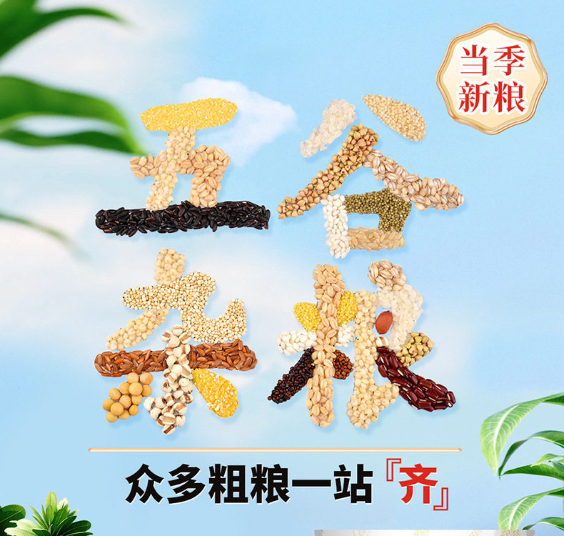 | Packaging specifications | ️️grain rice️️choose any 5 bags and get free shipping️️,Corn grits 3.49 yuan/jin,Sticky corn grits 500g/bag,Stupid corn grits 500g/bag,Wheat kernels 500g/bag,Rye kernels 500g/bag,Braned brown rice 500g/bag,Red rice 500g/bag,Blood glutinous rice 500g/bag,Sorghum 500g/bag,Round glutinous rice 500g/bag,Oatmeal rice 500g/bag,Black rice 500g/bag,Plateau highland barley 500g/bag,Yellow millet 500g/bag,Large yellow rice 500g/bag,Buckwheat kernels 500g/bag,Bitter buckwheat 500g/bag,Black millet 500g/bag,White quinoa 500g/bag,️️grain beans️️choose any 5 bags and get free shipping️️,Northeast soybeans 500g/bag,Soy milk soybeans (high protein) 500g/bag,Chickpeas 500g/bag,Red kidney beans 500g/bag,Northeast black beans (green core) 500g/bag,Northeastern mung beans 500g/bag,Red cowpea 500g/bag,Xinjiang chickpeas 500g/bag,Adzuki beans 500g/bag,Red beans 500g/bag,️️other categories️️choose 5 bags and get free shipping️️,Small sago 500g/bag,Flax seeds (raw) 500g/bag,White barley 500g/bag,Red barley 500g/bag,Peanuts 500g/bag,Four red peanuts 500g/bag,Black peanuts 300g/bag,Chia seeds 300g/bag,Long-grain fresh rice (freshly milled and shipped) 500g/bag,Yellow rock sugar (original flavor) 400g/bag,Old brown sugar (original flavor) 400g/bag,️️nutritional porridge️️free shipping for any 5 bags️️,Xiaomi spleen and stomach porridge 500g/bag,Xiaomi pumpkin porridge 500g/bag,Four-color millet porridge 500g/bag,Eight treasure porridge (laba festival) 500g/bag,Five red porridge (qi and blood) 500g/bag,Five black porridge (nourishing black) 500g/bag,Northeastern large grits porridge 500g/bag,️️grain rice️️free shipping for any 5 bags️️,Grains, tubers and rice 500g/bag,Five-color brown rice 500g/bag,Seven-color brown rice 500g/bag,️️soymilk ingredients️️free shipping for any 5 bags️️,Five-color frozen soy milk 500g/bag,White kidney beans (small capsules) 500g/bag |