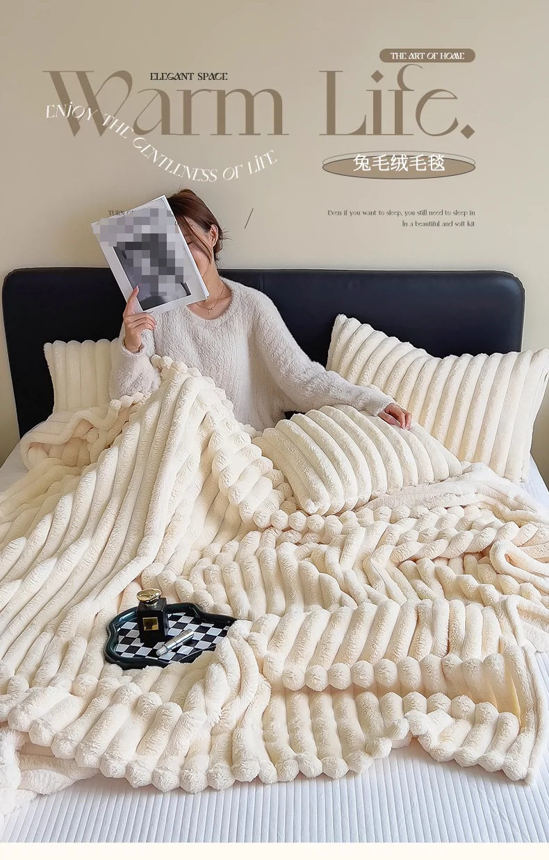 Rabbit Plush Blanket Multifunctional Nap Blanket French Velvet Summer Air-Conditioned Quilt Small Blanket Sofa Cover Blanket Car Blanket
