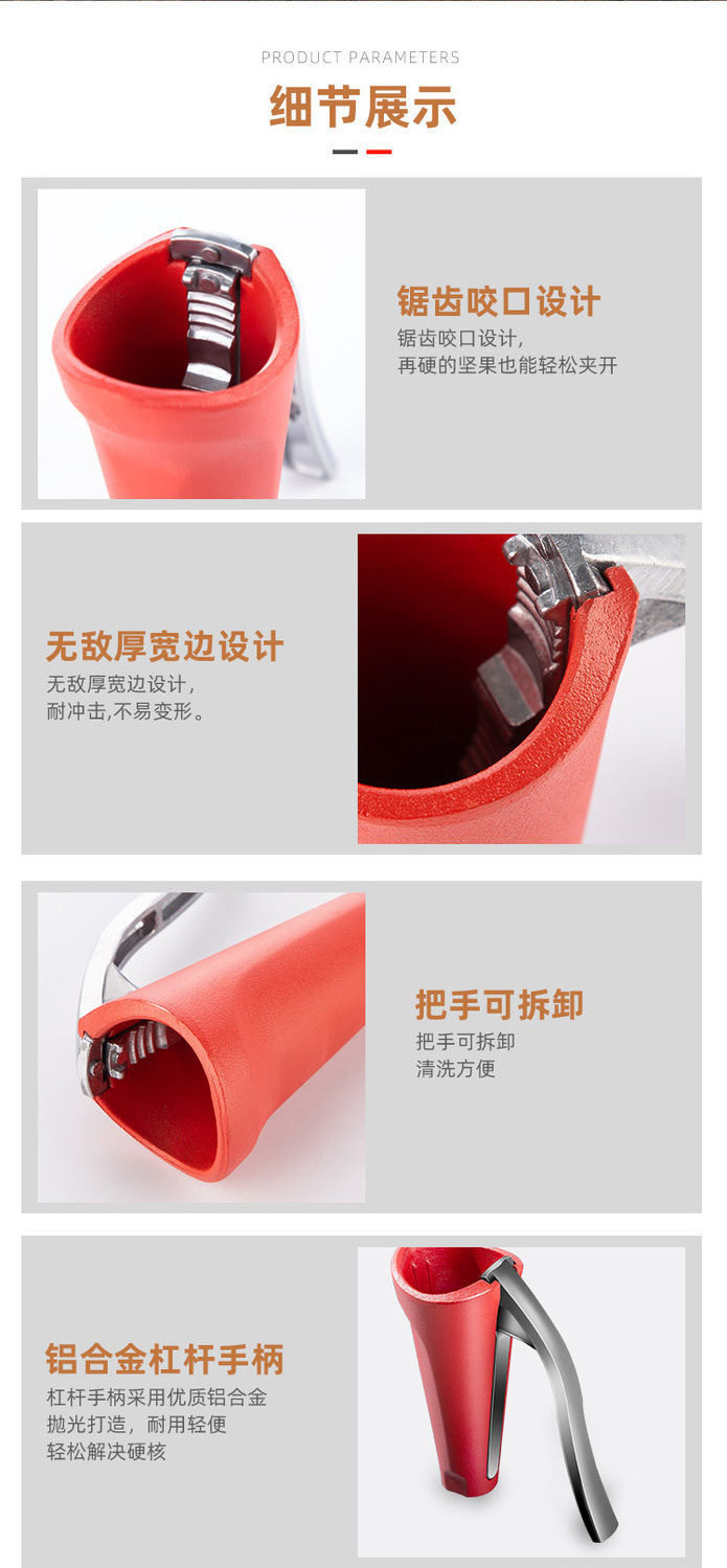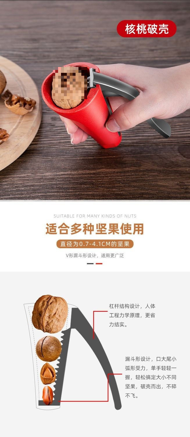 | Specifications | Upgraded thickened barrel # Universal for various nuts [red 1 handful],Upgraded thickened barrel # A variety of nuts are available [red 2 handfuls],Package 1: 1 barrel-shaped red + 1 single-port clip,Package 2: 1 barrel-shaped red handle + 1 silver clip with 4 mouths |