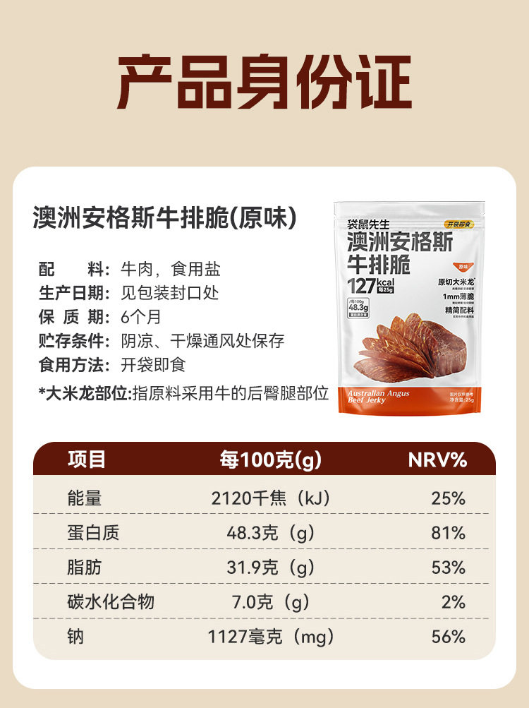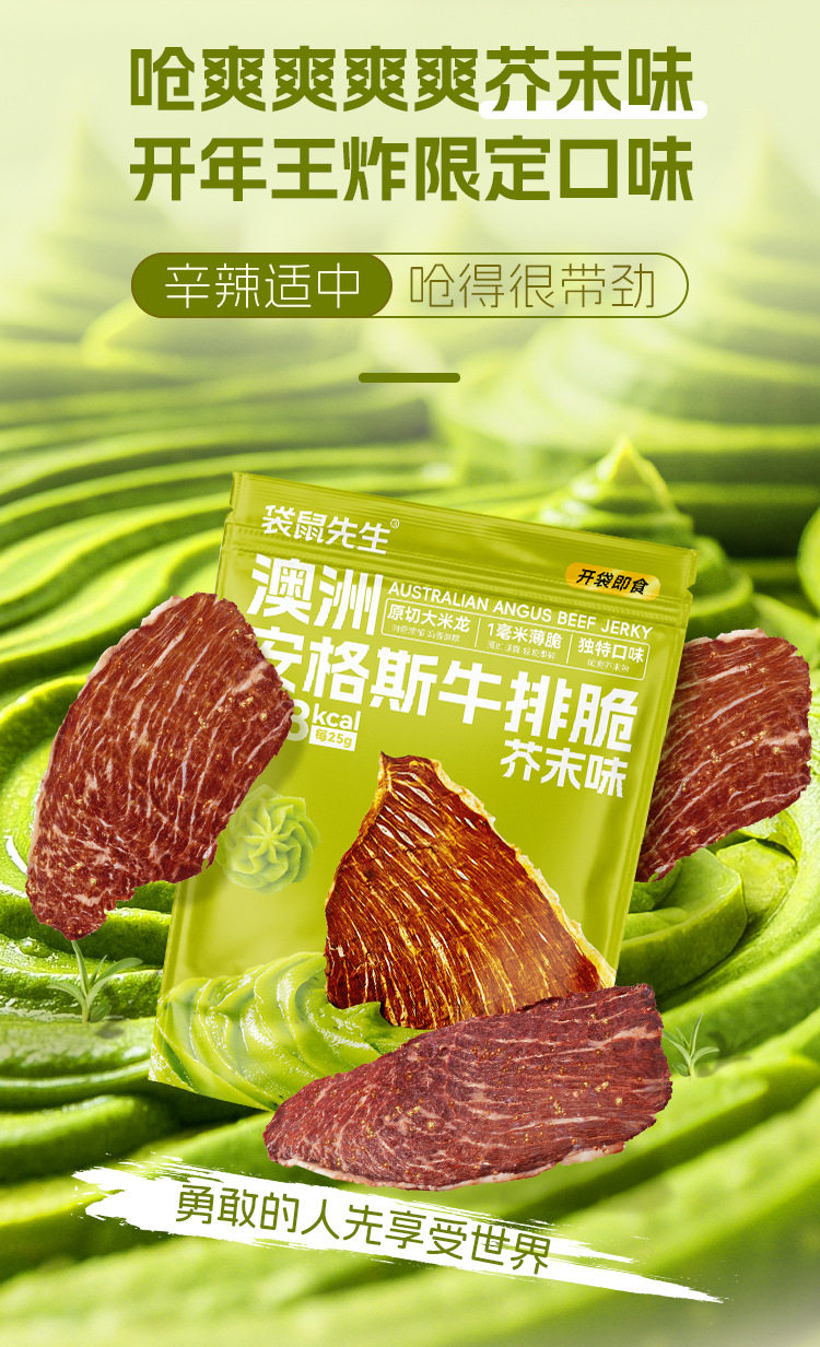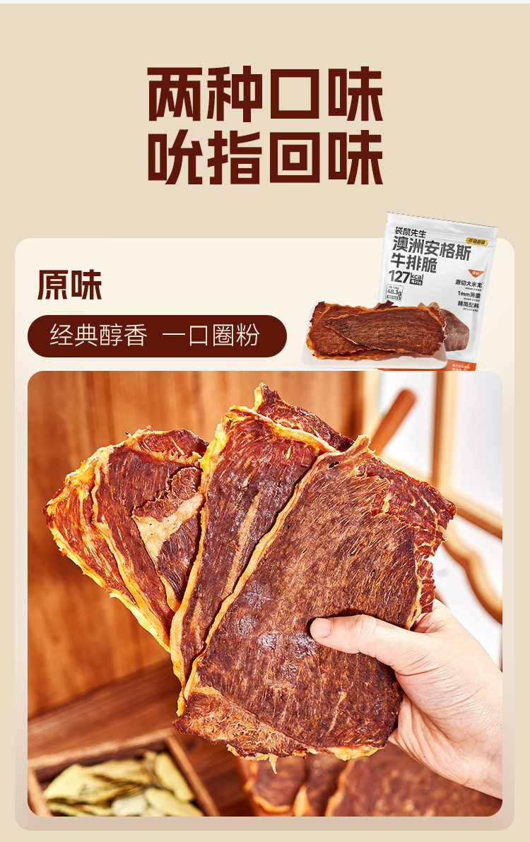 | Packaging specifications | 25g (per bag)-[hot and spicy flavor] 25g*1 bag,25g (per bag)-[hot and spicy flavor] 25g*2 bags,25g (per bag)-[hot and spicy flavor] 25g*4 bags,25g (per bag)-[hot and spicy flavor] 25g*5 bags,25g (per bag)-[original flavor] 25g*1 bag,25g (per bag)-[original flavor] 25g*2 bags,25g (per bag)-[original flavor] 25g*4 bags,25g (per bag)-[original flavor] 25g*5 bags,25g (per bag)-[mustard flavor] 25g*1 bag,25g (per bag)-[mustard flavor] 25g*2 bags,25g (per bag)-[mustard flavor] 25g*4 bags,25g (per bag)-[mustard flavor] 25g*5 bags,25g (per bag)-[mixed flavor] 25g steak crispy x4-mustard 1 original 2 spicy 1,25g (per bag)-[mixed flavor] 25g steak crispy x5-original 2 spicy 2 mustard 1,25g (per bag)-[mixed flavor] 25g steak crispy x2-original 1 spicy 1,25g (per bag)-[mixed flavor] 25g steak crispy x4-2 original 2 spicy,25g (per bag)-[mixed flavor] 25g steak crispy x5-3 original 2 spicy |