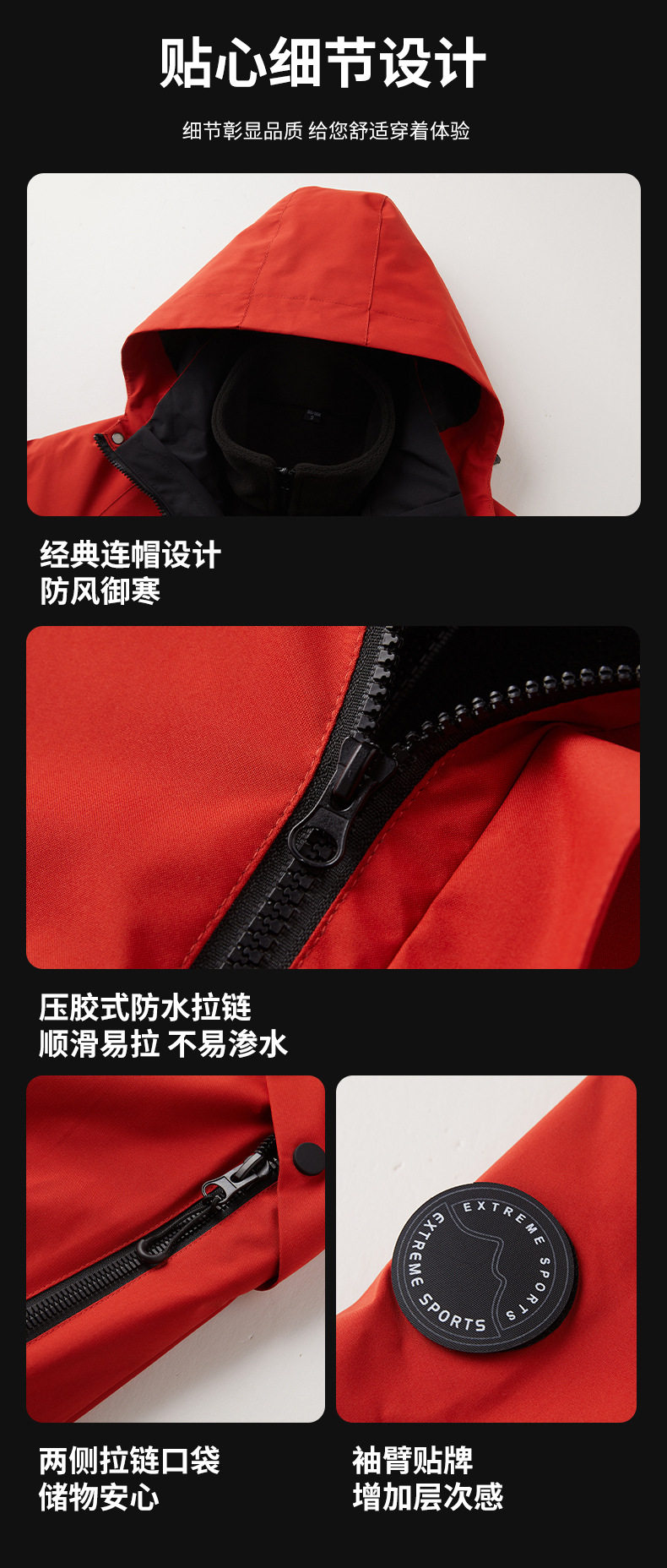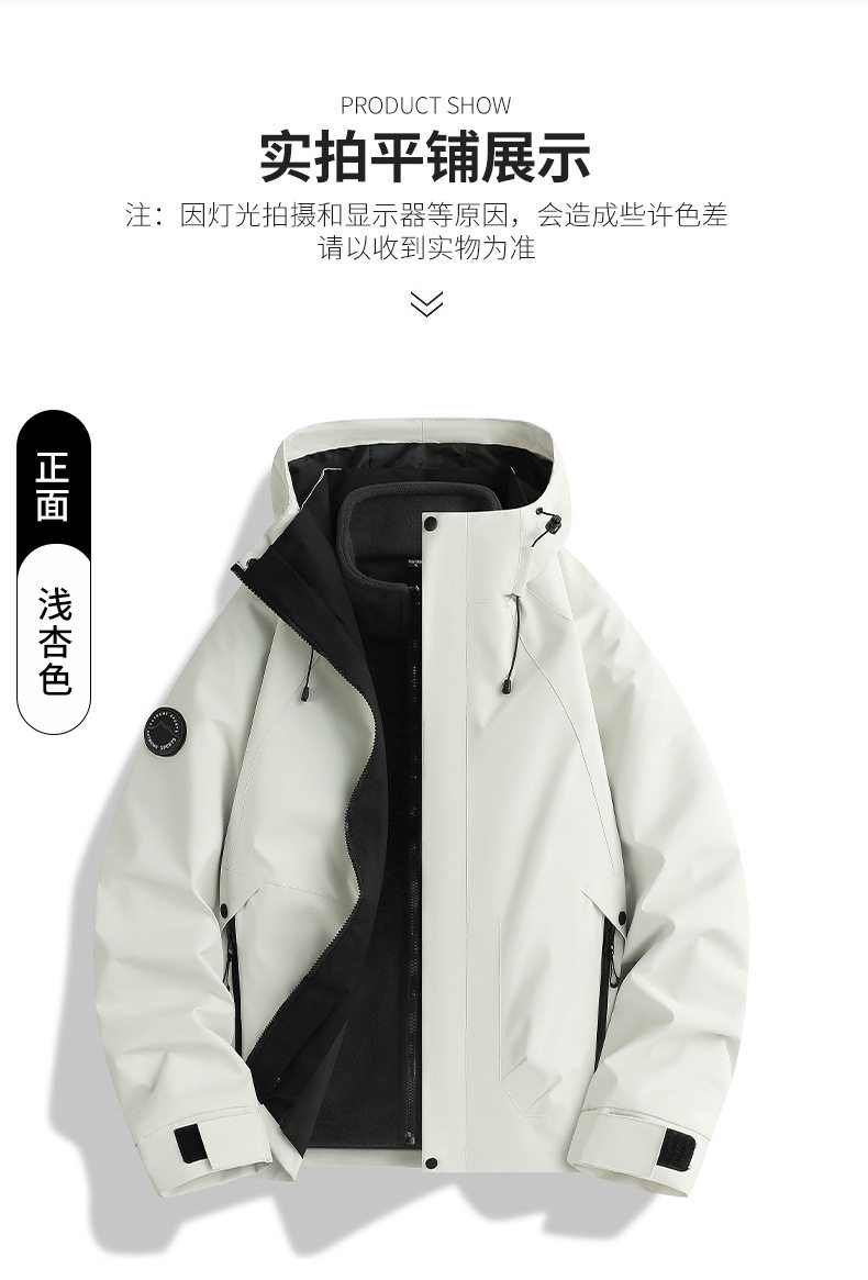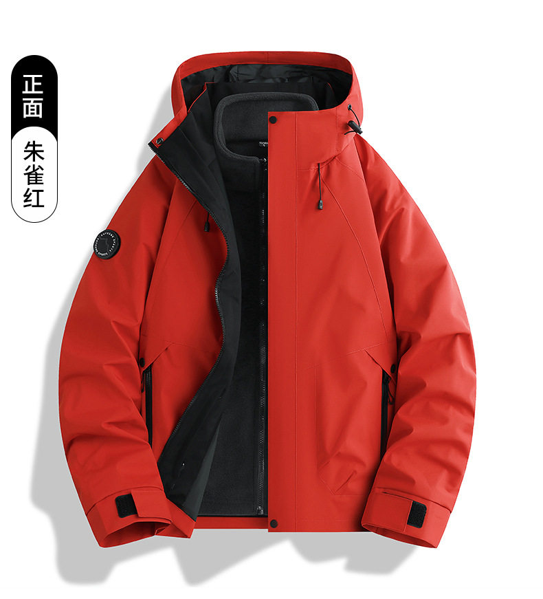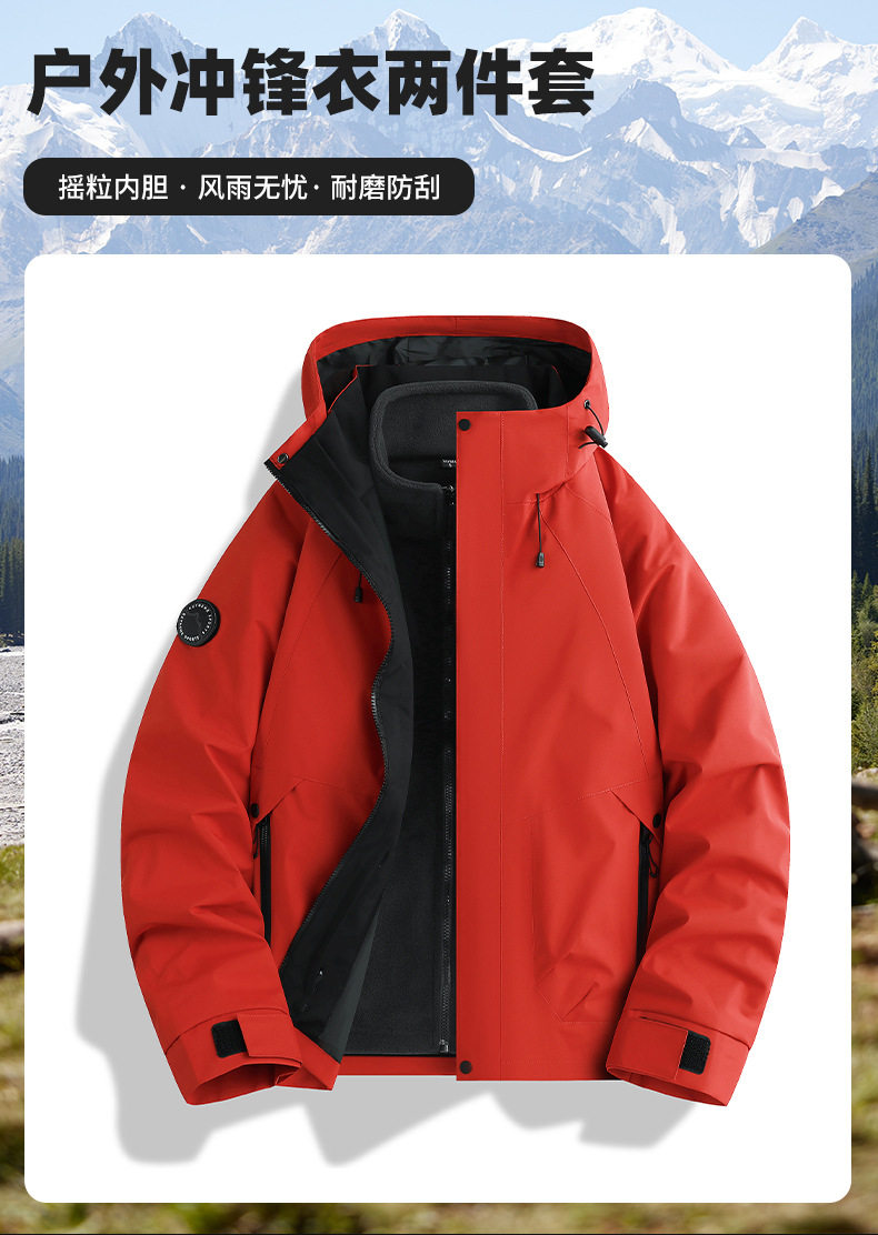 Hooded Jacket, Autumn and Winter Windproof and Waterproof Three-In-One Mountaineering Jacket, Polar Fleece Liner, Same Style Jacket for Men and Women