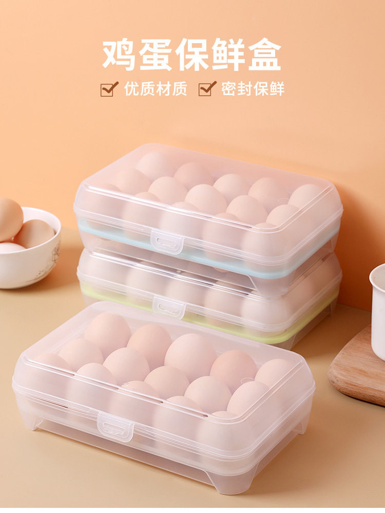 Home Kitchen 15-Compartment Refrigerator Egg Box Crisper Portable Food Storage Storage Box Transparent Egg Tray Box Wholesale