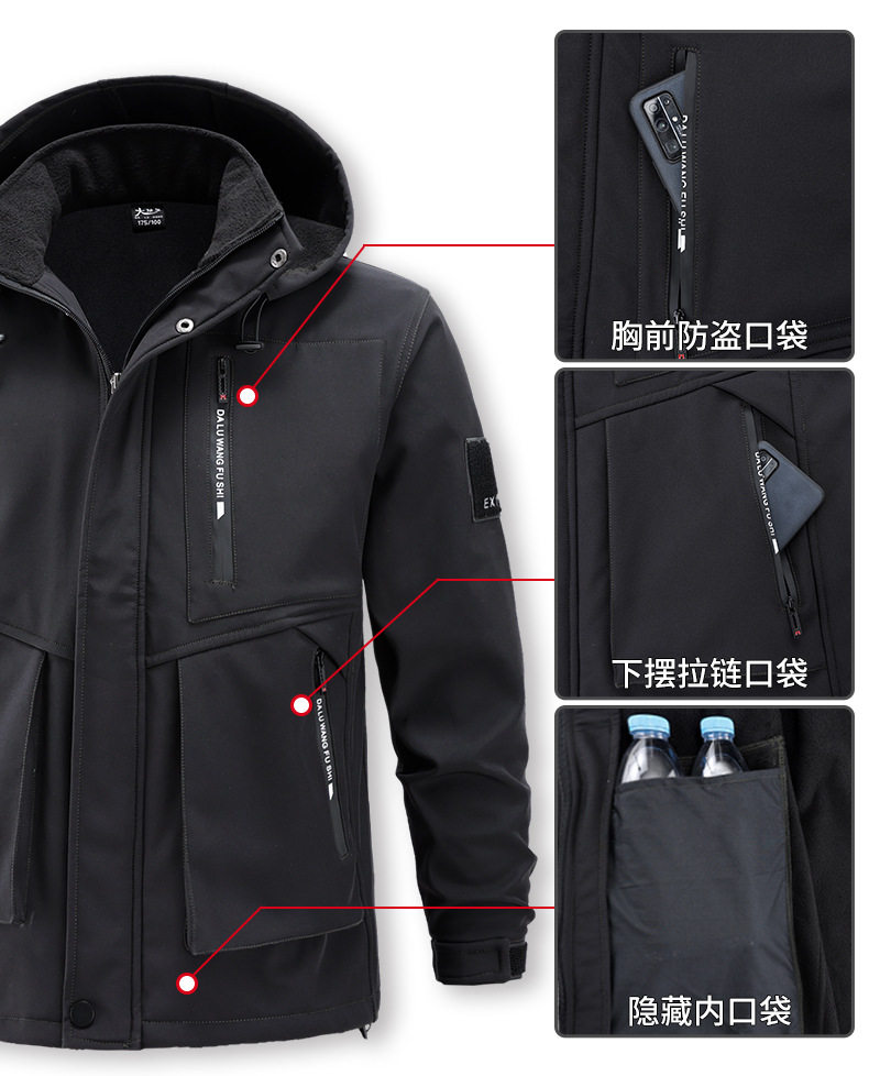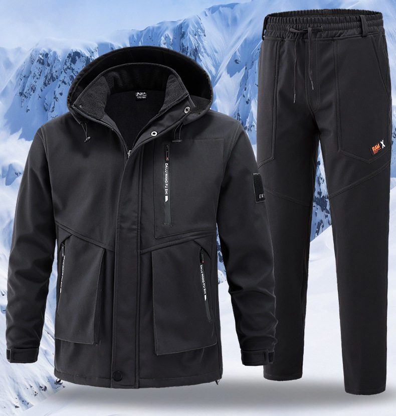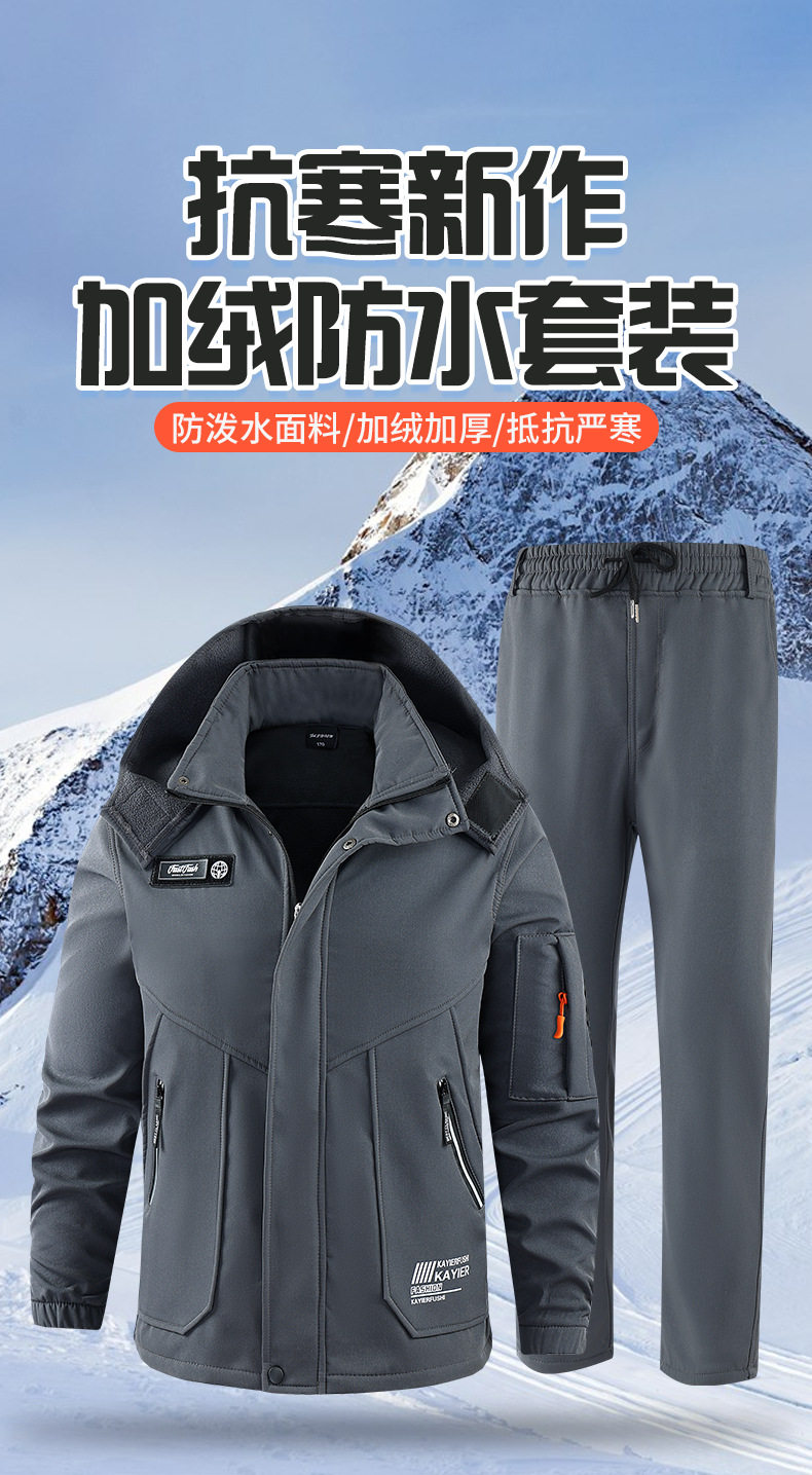 Autumn and Winter Jacket Suit for Men and Women, Windproof and Waterproof Single Layer Fleece-Lined to Heattech, Outdoor Cycling, Skiing and Mountaineering Clothing Workwear