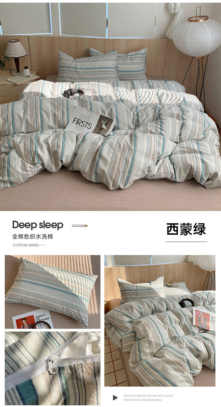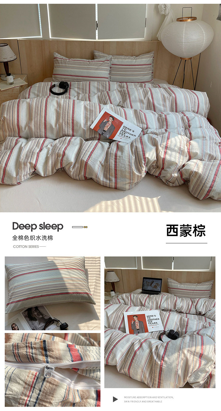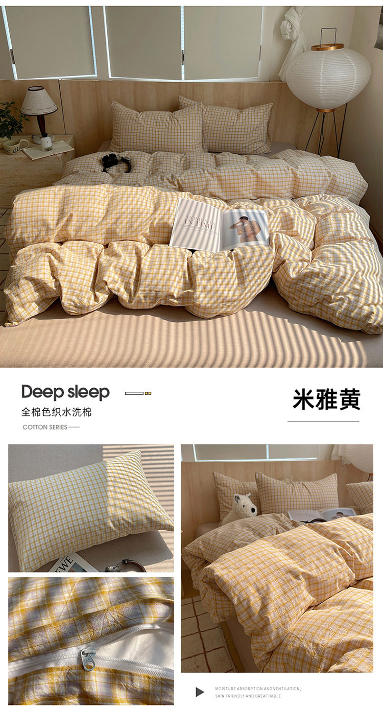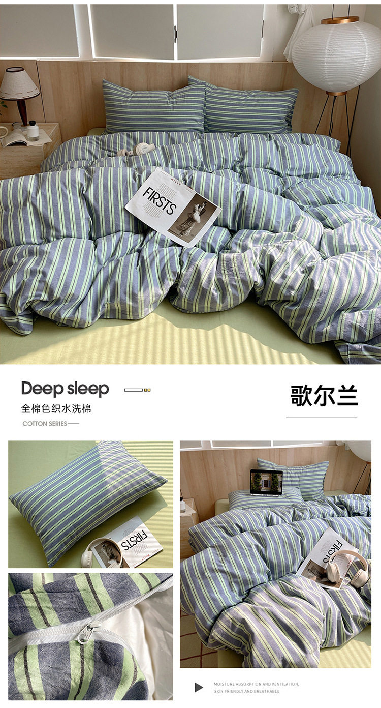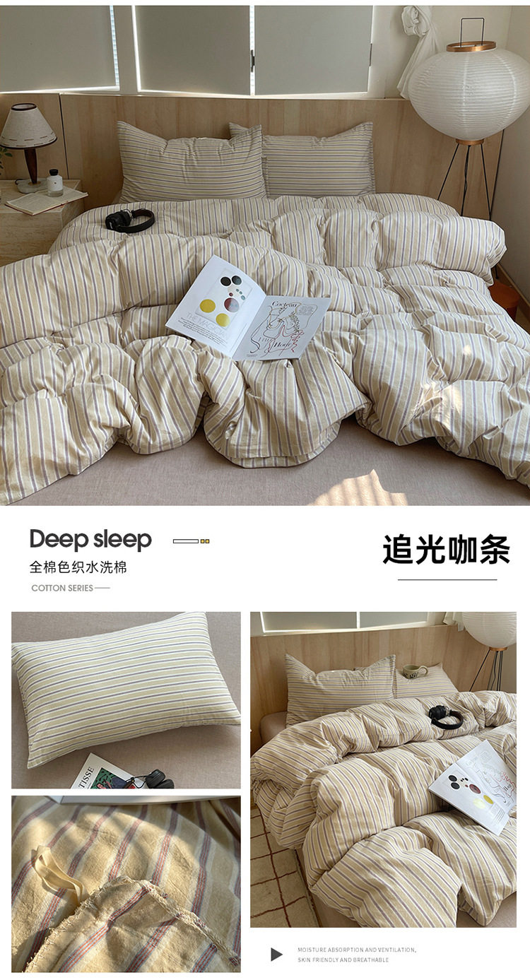 Class a Pure Cotton Yarn-Dyed Washed Cotton Four-Piece Set Japanese-Style Unprinted Style Pure Cotton Bed Sheetss and Fitted Bed Sheetss for Naked Sleeping Bedding Sets