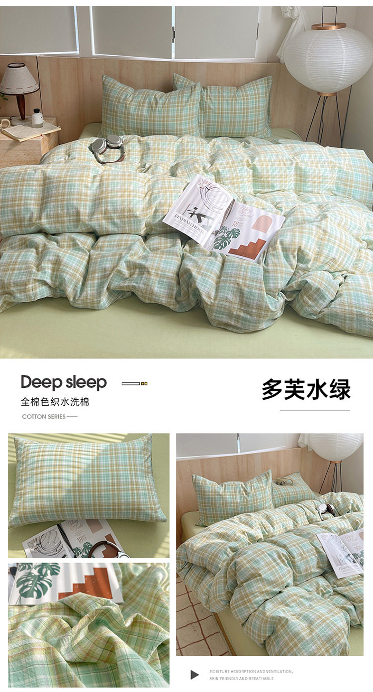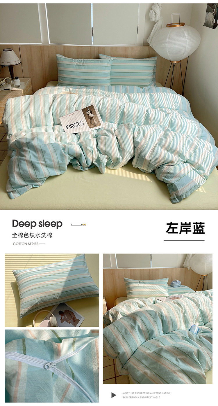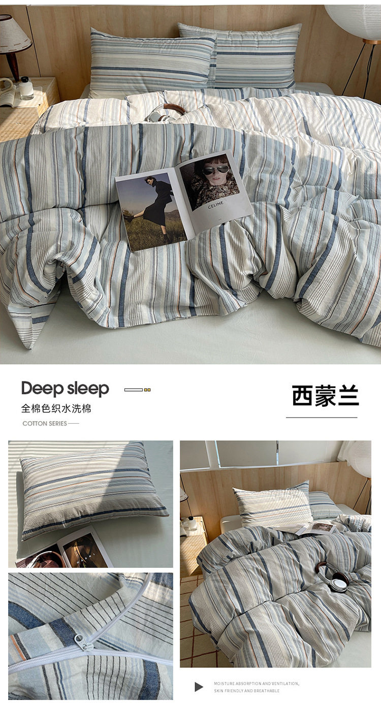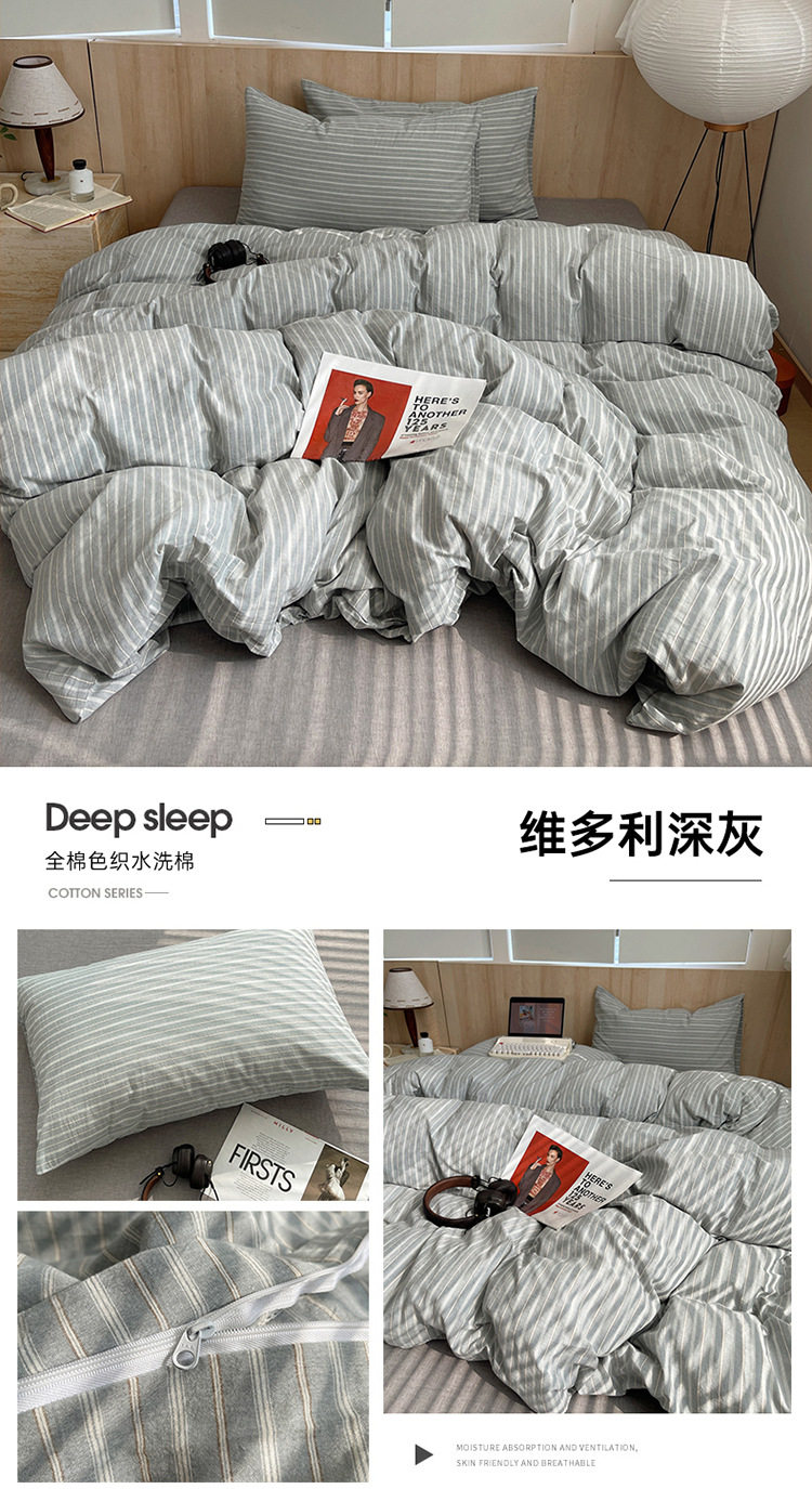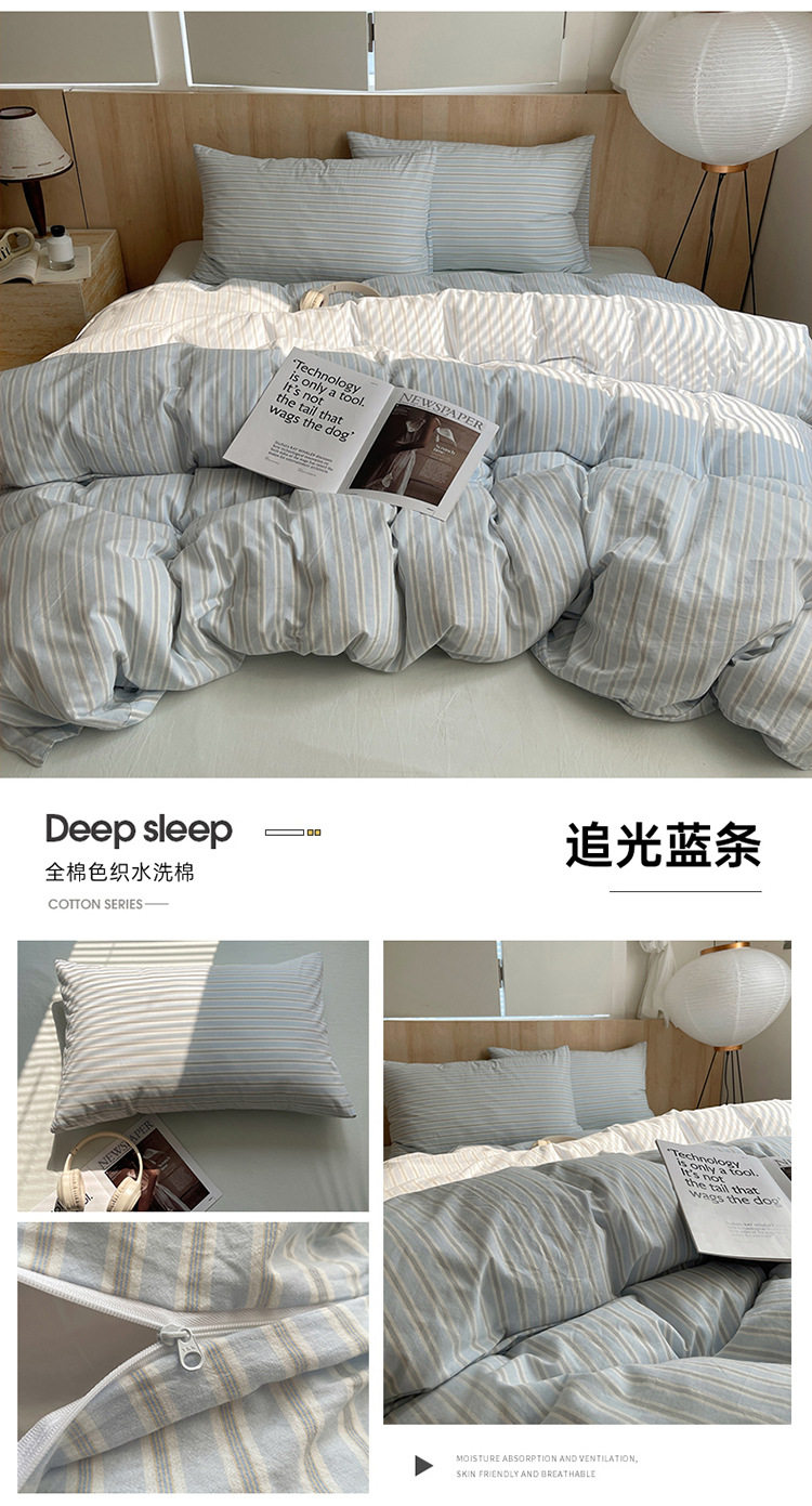Class a Pure Cotton Yarn-Dyed Washed Cotton Four-Piece Set Japanese-Style Unprinted Style Pure Cotton Bed Sheetss and Fitted Bed Sheetss for Naked Sleeping Bedding Sets