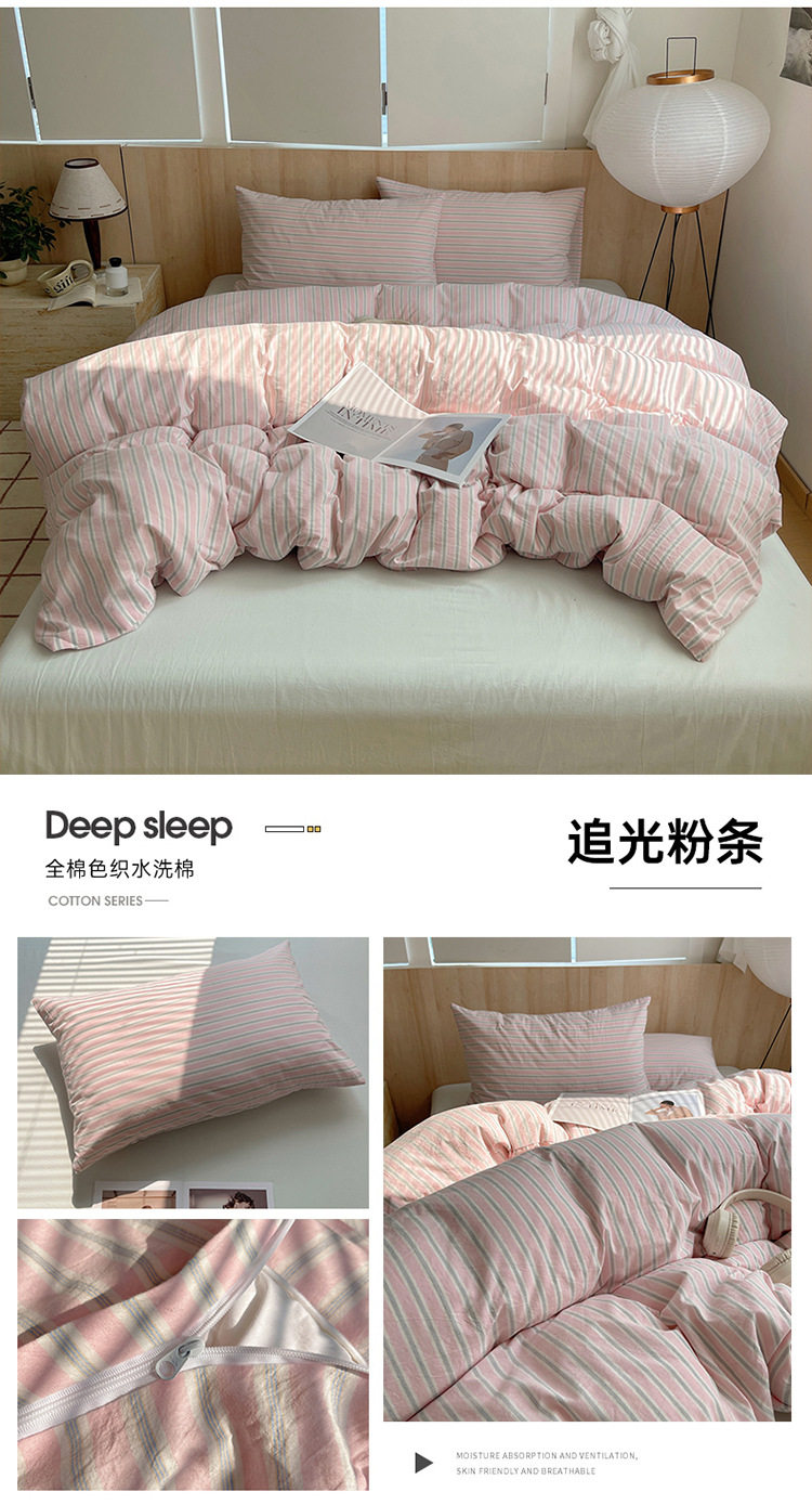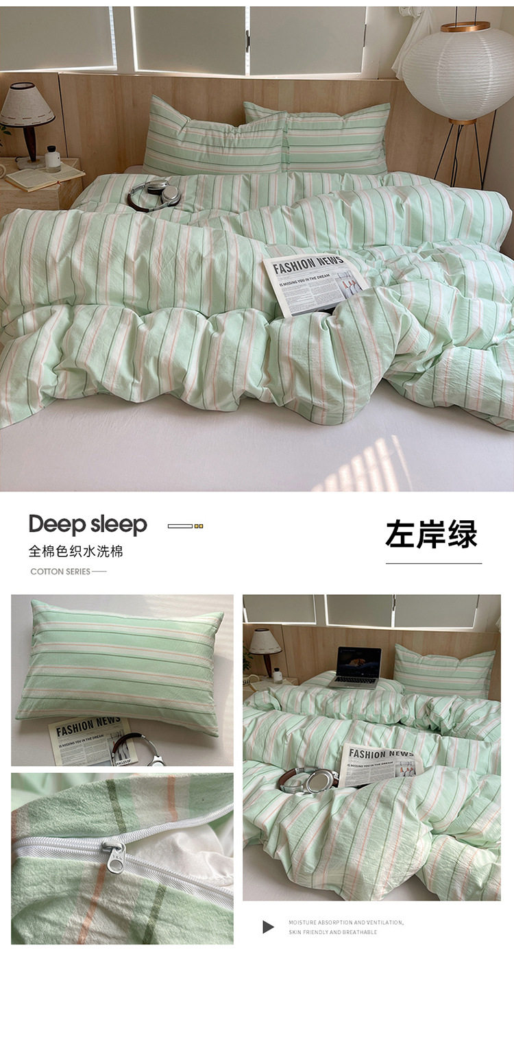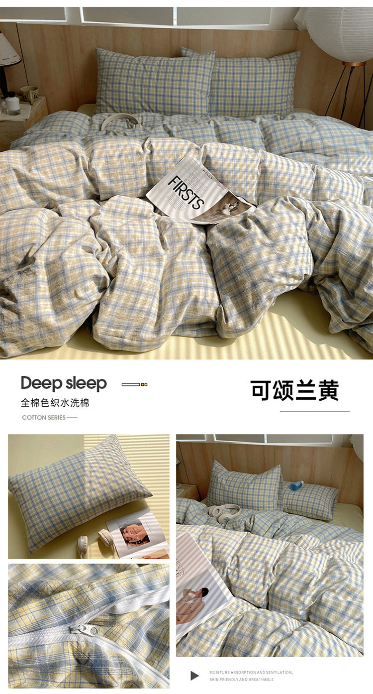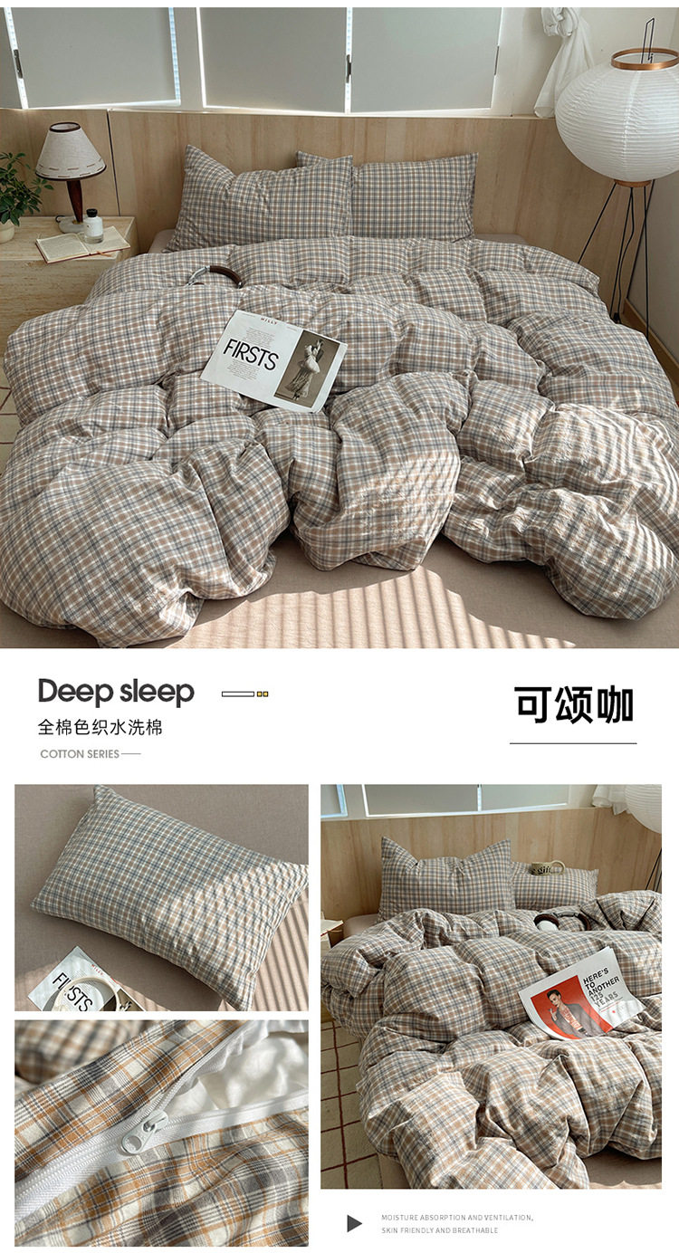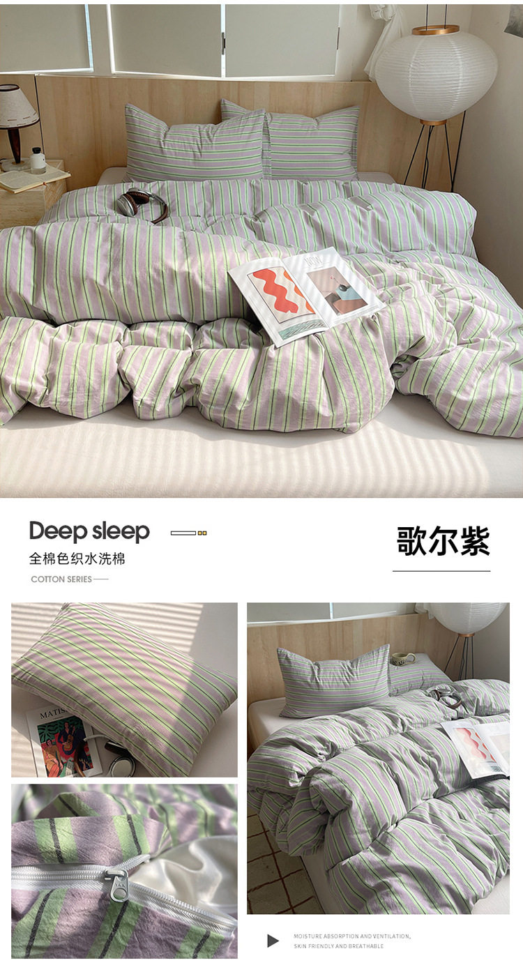 Class a Pure Cotton Yarn-Dyed Washed Cotton Four-Piece Set Japanese-Style Unprinted Style Pure Cotton Bed Sheetss and Fitted Bed Sheetss for Naked Sleeping Bedding Sets