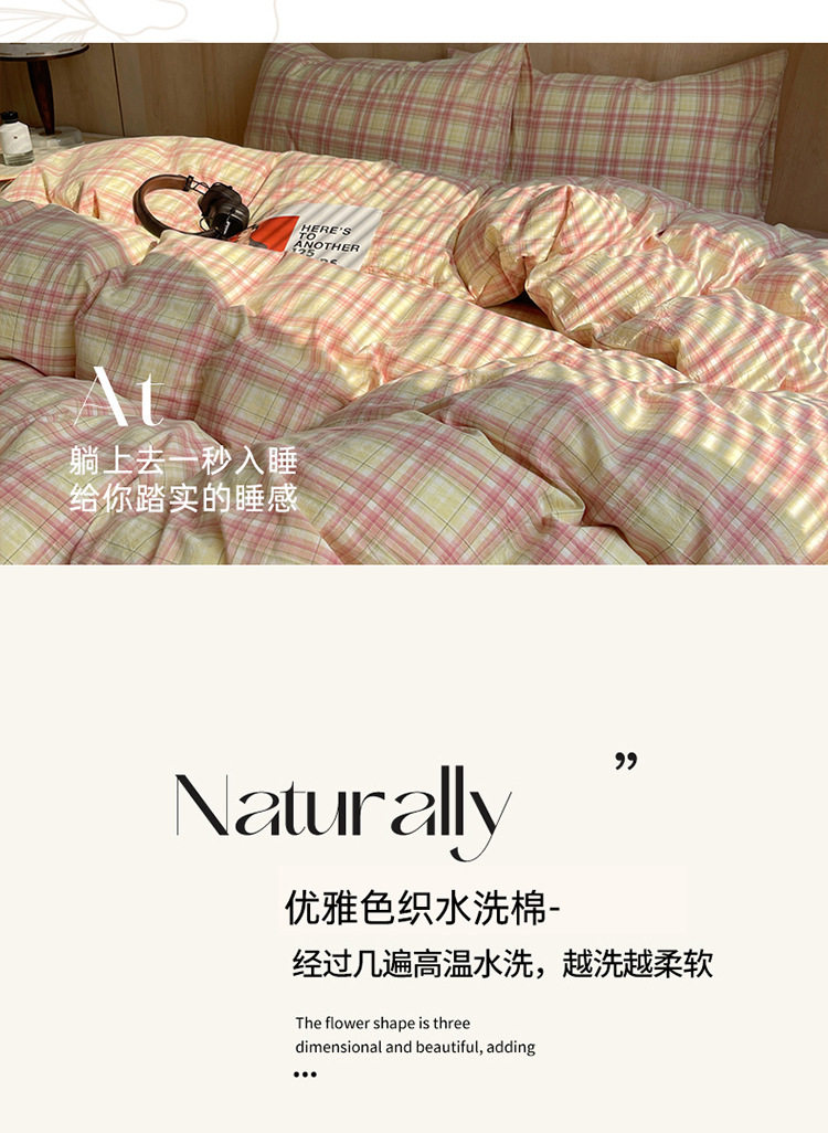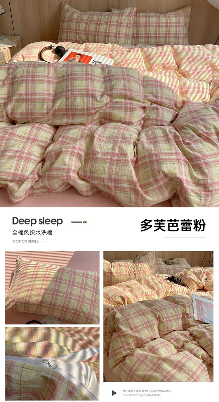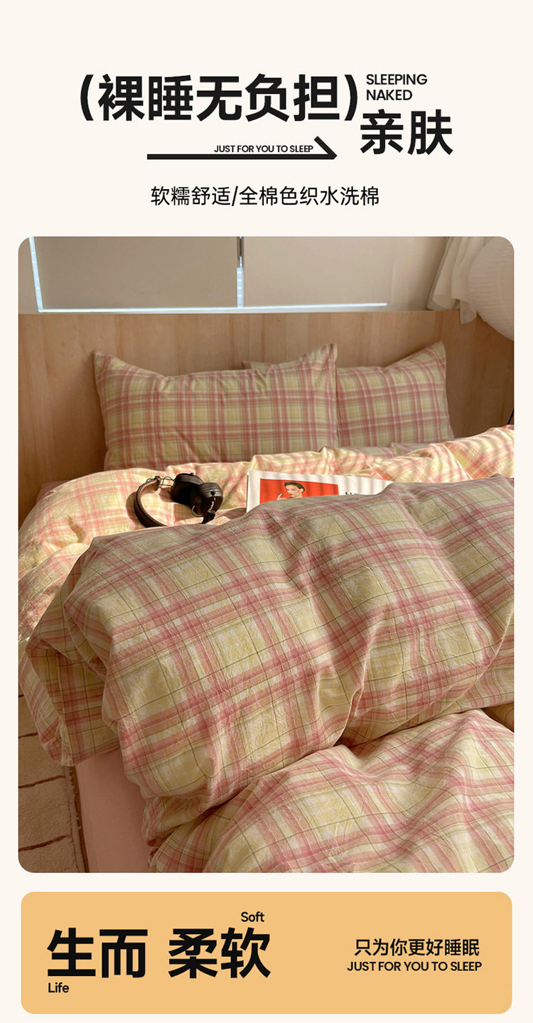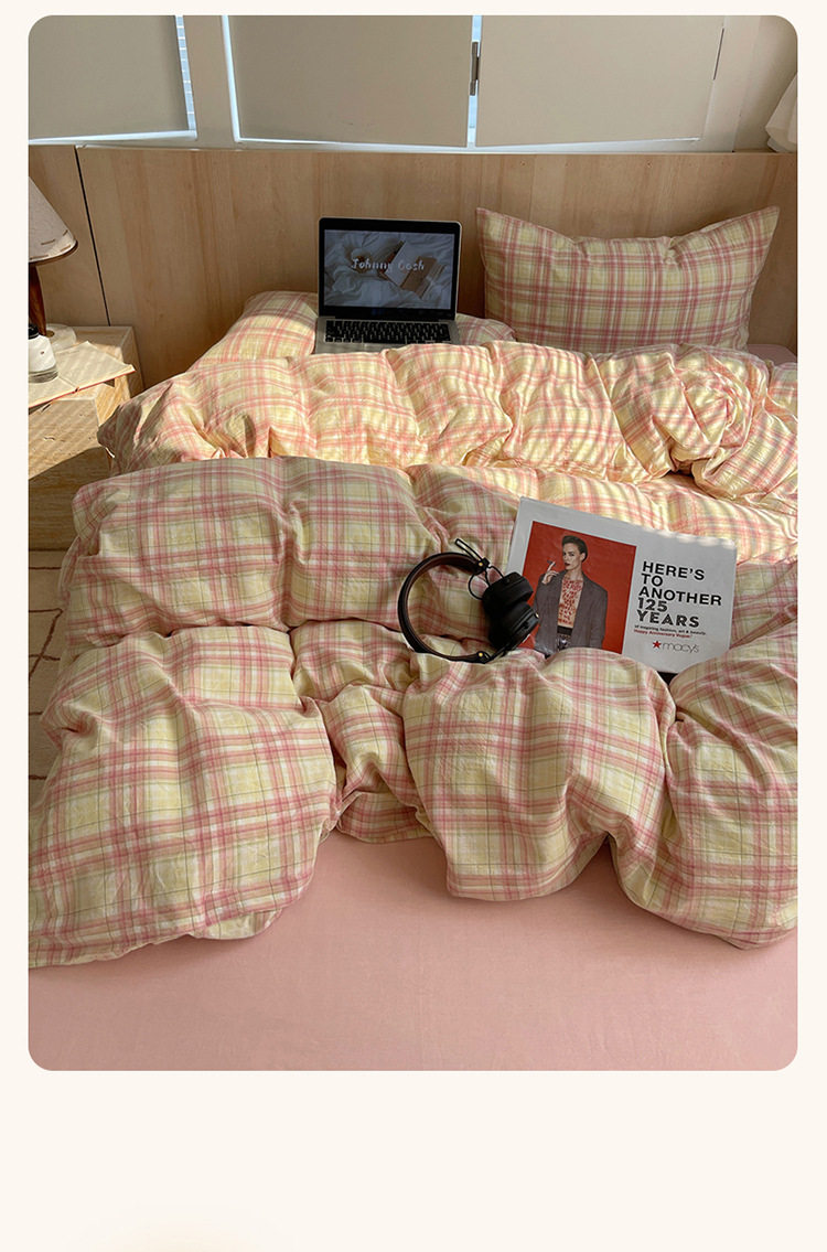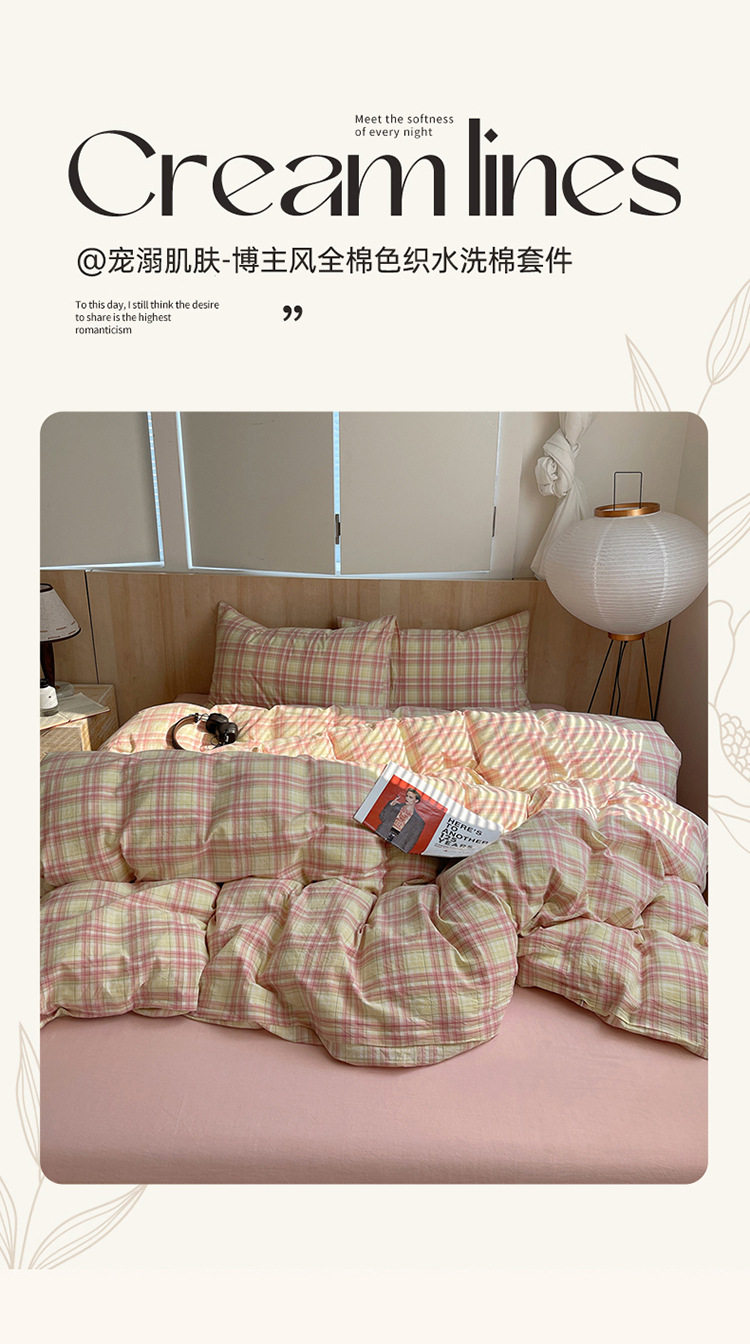 Class a Pure Cotton Yarn-Dyed Washed Cotton Four-Piece Set Japanese-Style Unprinted Style Pure Cotton Bed Sheetss and Fitted Bed Sheetss for Naked Sleeping Bedding Sets