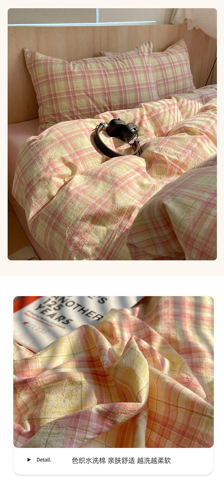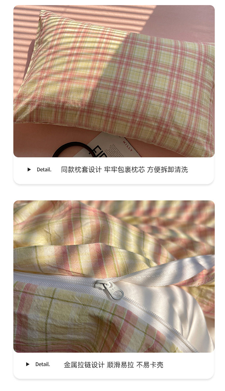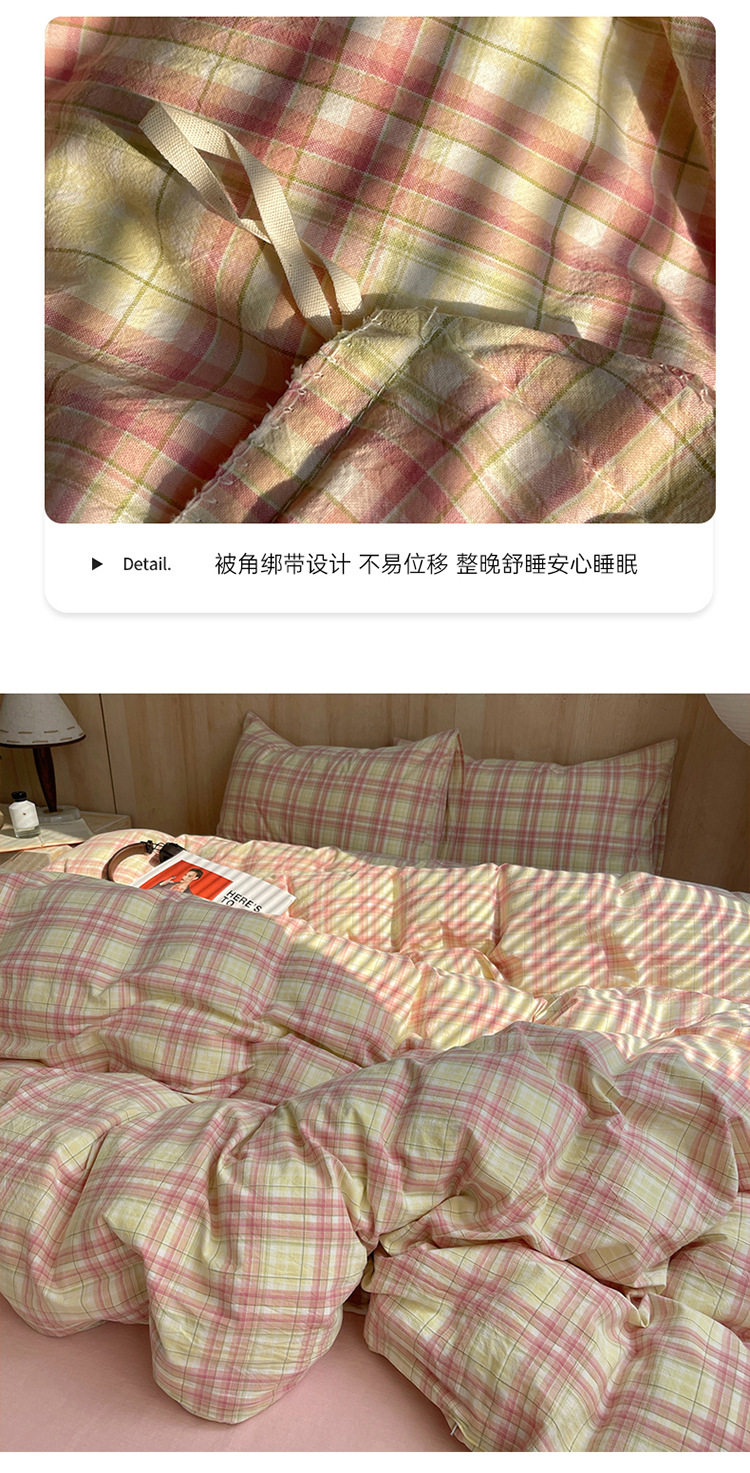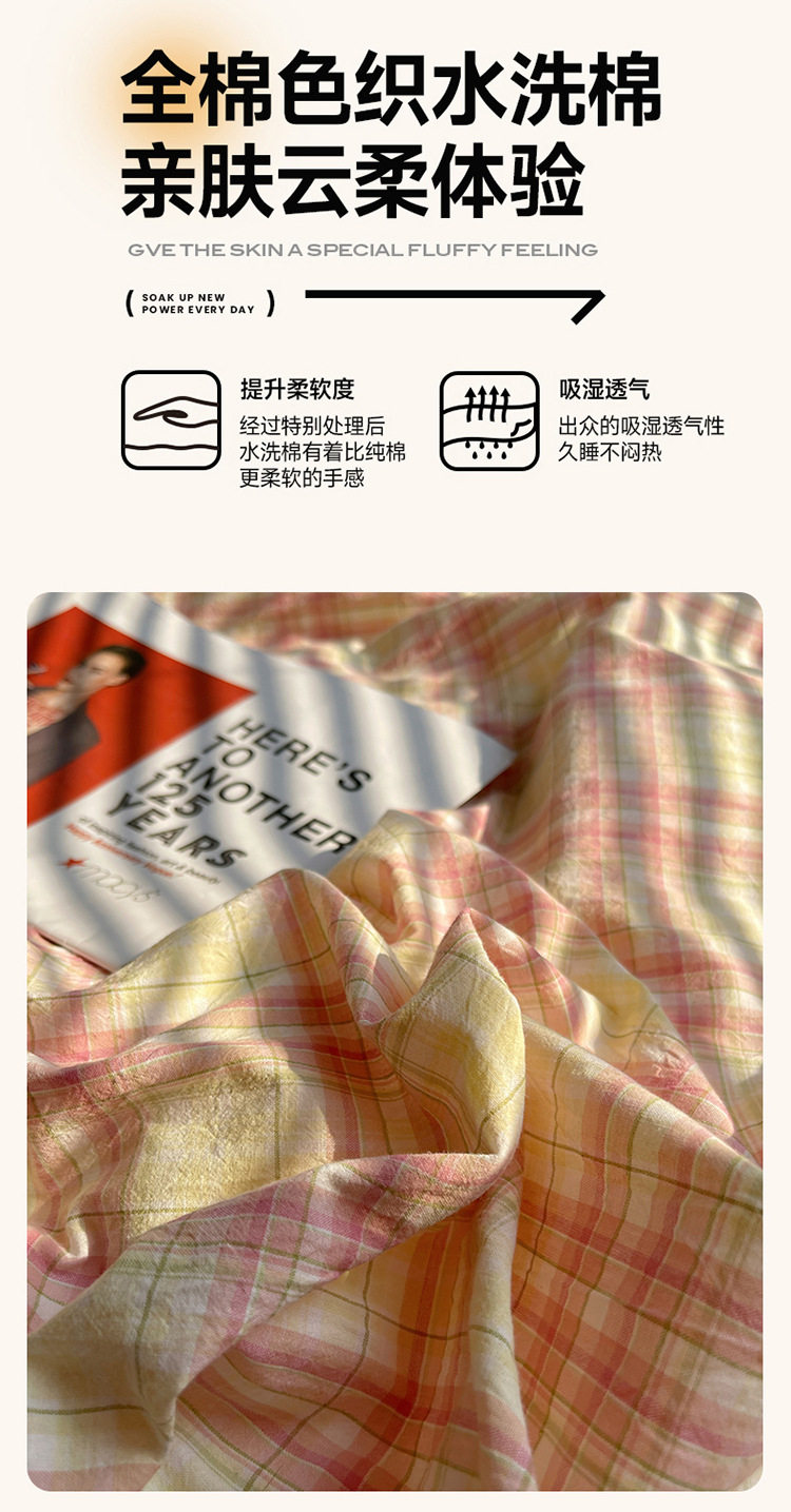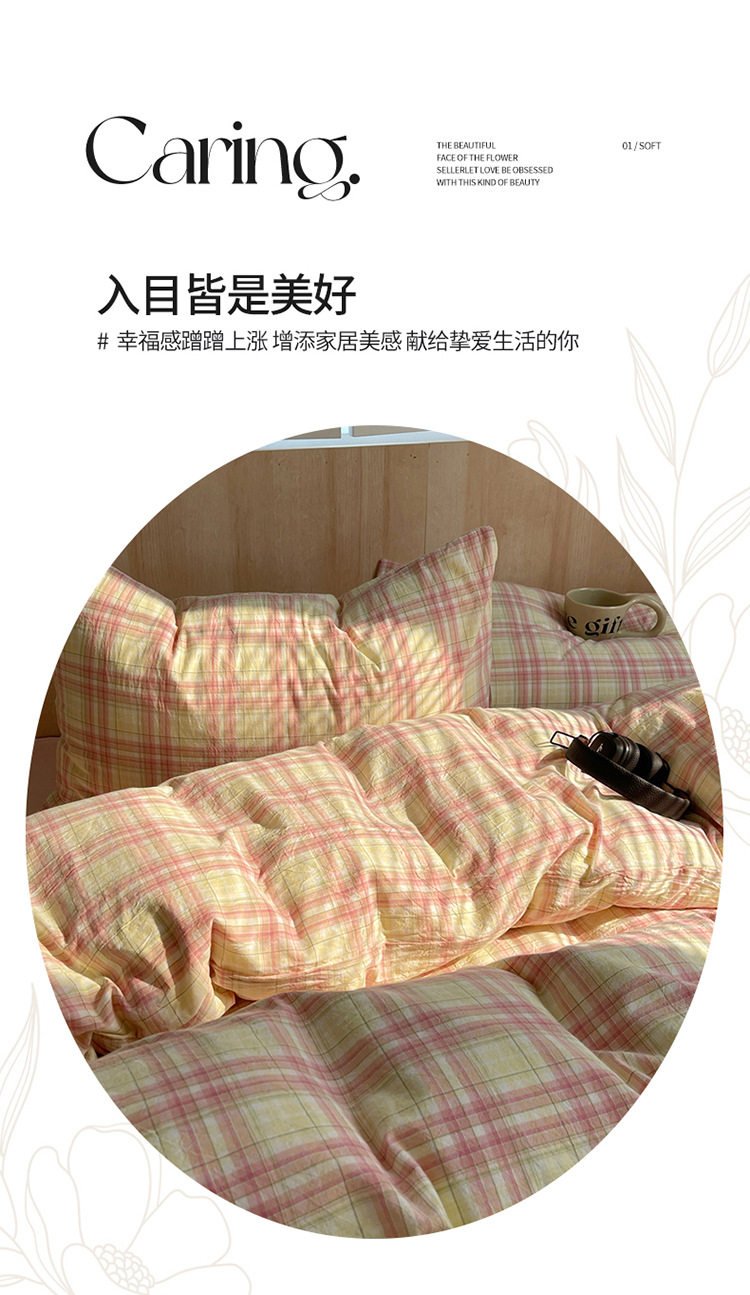 Class a Pure Cotton Yarn-Dyed Washed Cotton Four-Piece Set Japanese-Style Unprinted Style Pure Cotton Bed Sheetss and Fitted Bed Sheetss for Naked Sleeping Bedding Sets