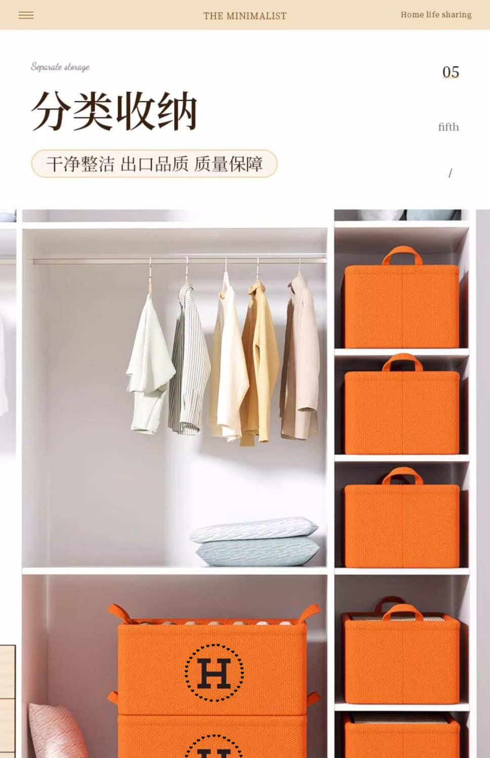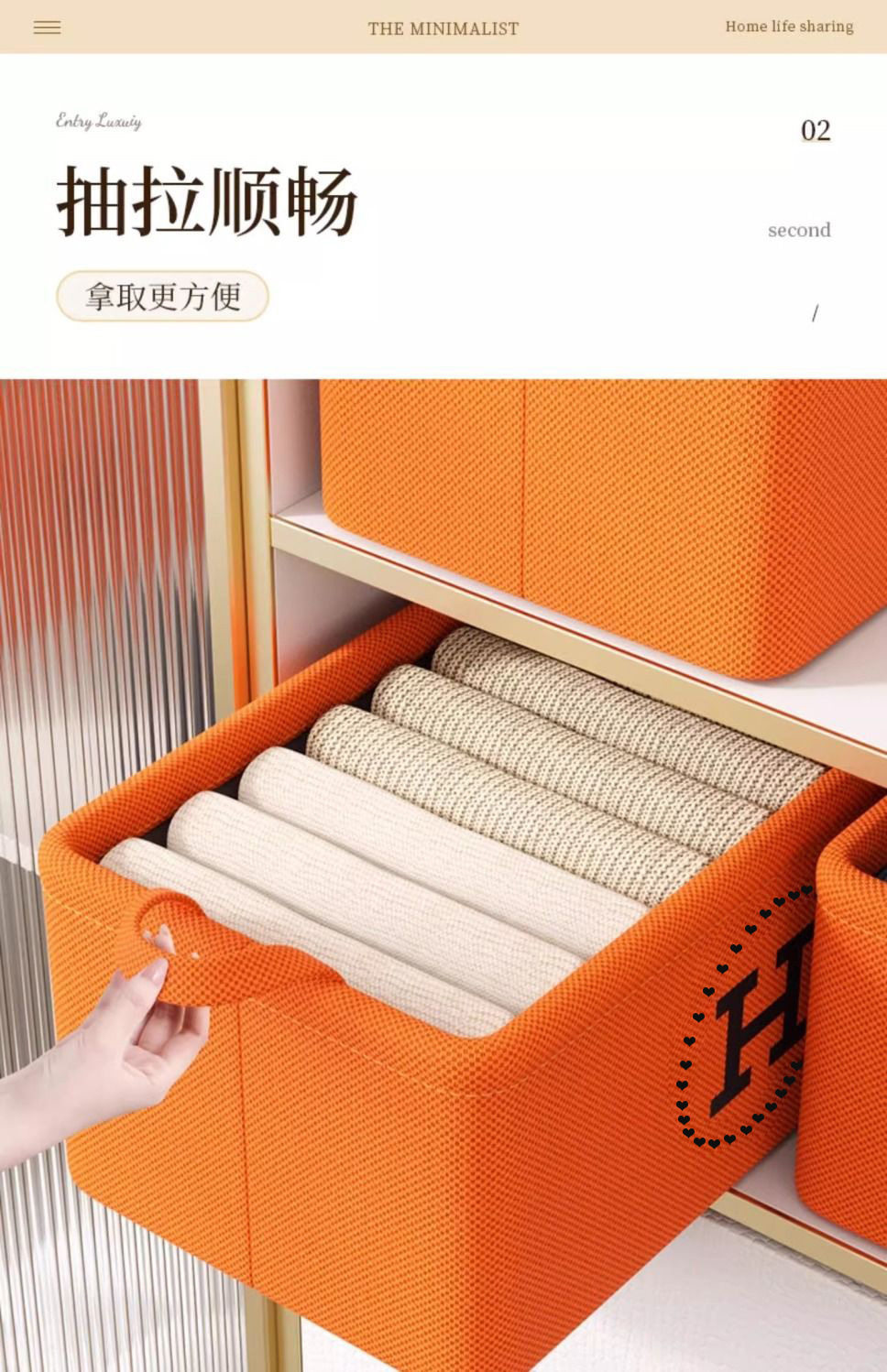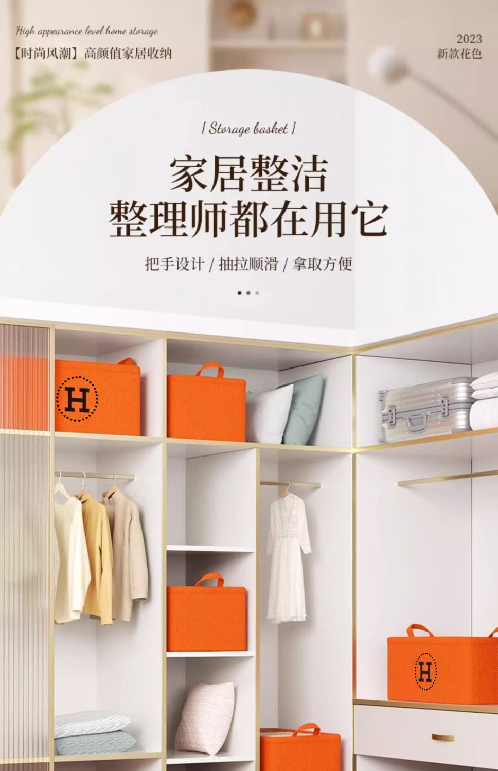 Hermès Orange Storage Basket Cotton and Linen Eva Thickeneded Foldableing Wardrobe Storage Basket Clothes Socks Sundry Storage Box