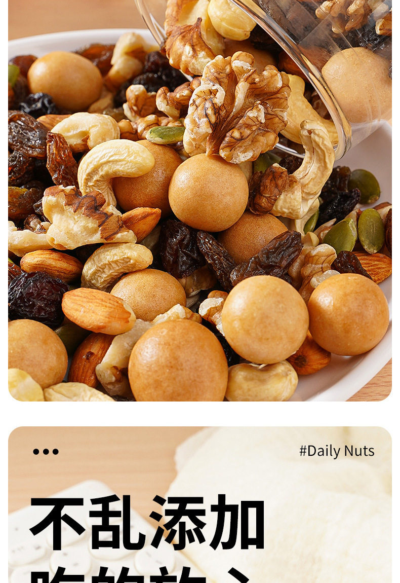 | Packaging specifications | Daily nuts 15g*10 packs,Daily nuts 15g*20 packs,Daily nuts 15g*30 packs,Daily nuts 15g*45 packs,Daily nuts 15g*60 packs |