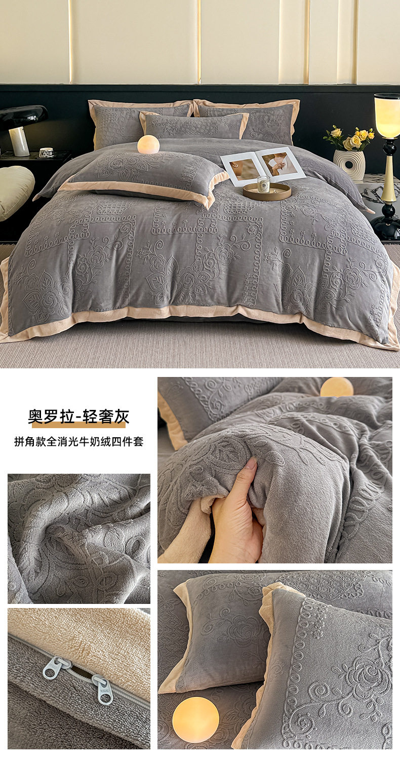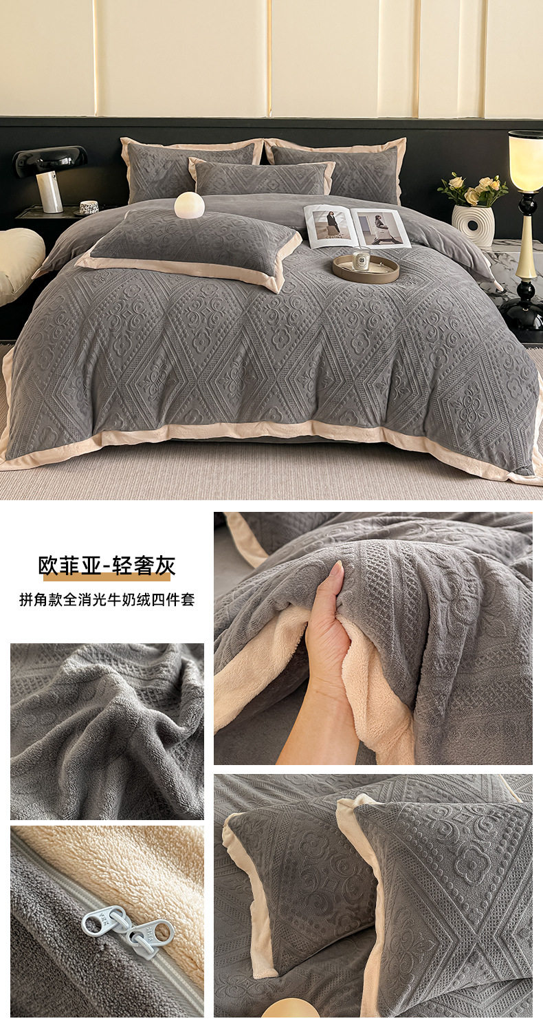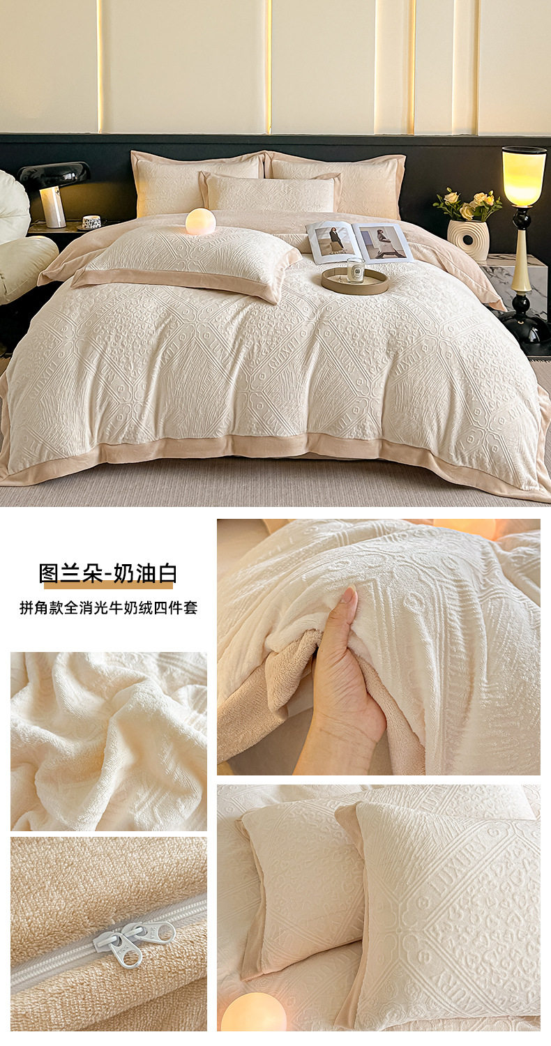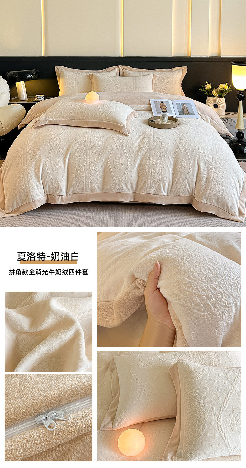 2025 New Corner Style Class a Fully Matte Milk Velvet Stereo 5D Carved Velvet Four-Piece Set Available for Live Broadcast and Can Be Shipped on Behalf of Others