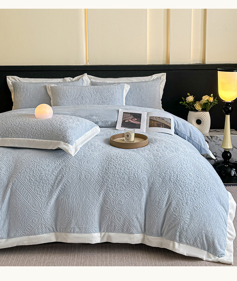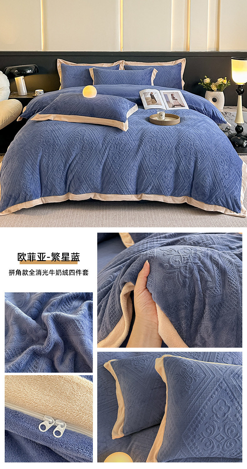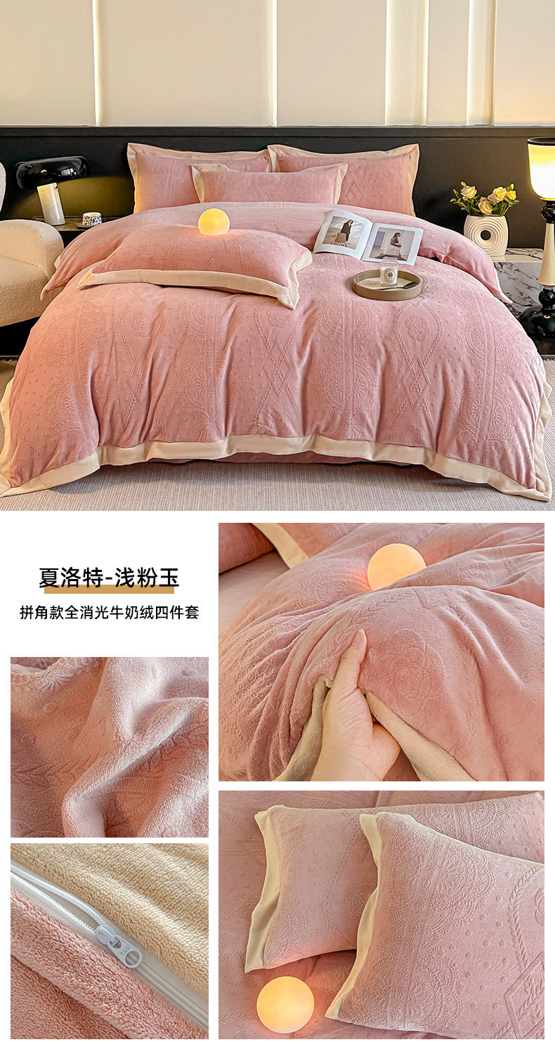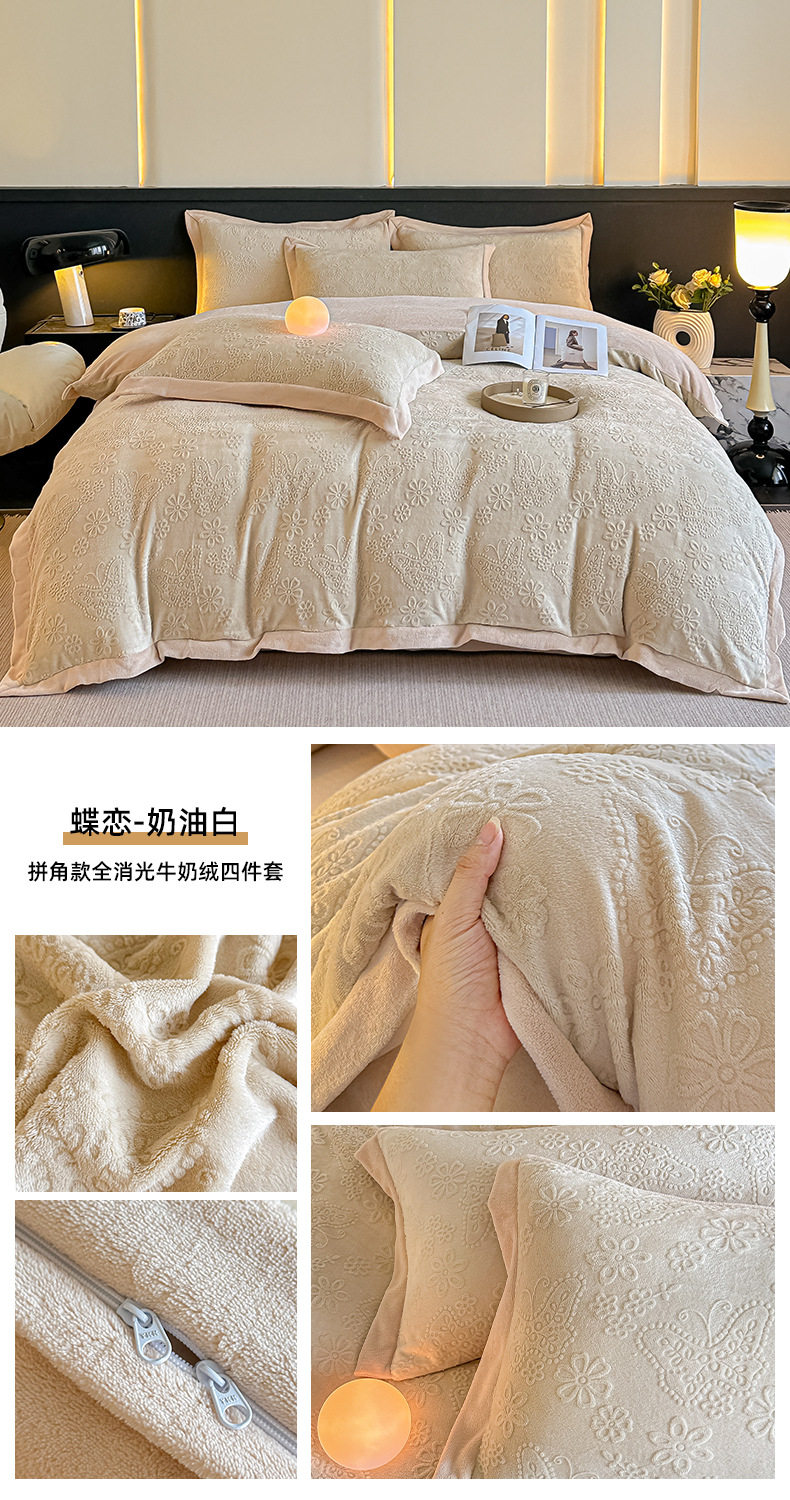 2025 New Corner Style Class a Fully Matte Milk Velvet Stereo 5D Carved Velvet Four-Piece Set Available for Live Broadcast and Can Be Shipped on Behalf of Others