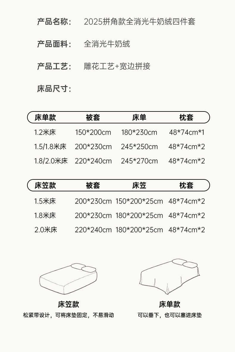 | Size specifications | [sheet style] 0.9 three-piece set - quilt cover 150x200,[sheet style] 1.2 three-piece set - quilt cover 150x200,【bed sheet style】1.5m four-piece bedding set - duvet cover 200x230 cm,【bed sheet style】1.8m four-piece bedding set - duvet cover 200x230 cm,[sheet style] 2.0 four-piece set - quilt cover 220x240,【fitted sheet style】1.5m four-piece bedding set - duvet cover 200x230 cm,【fitted sheet style】1.8m four-piece bedding set - duvet cover 200x230 cm,[fitted sheet] 1.8 four-piece set - quilt cover 220x240 |