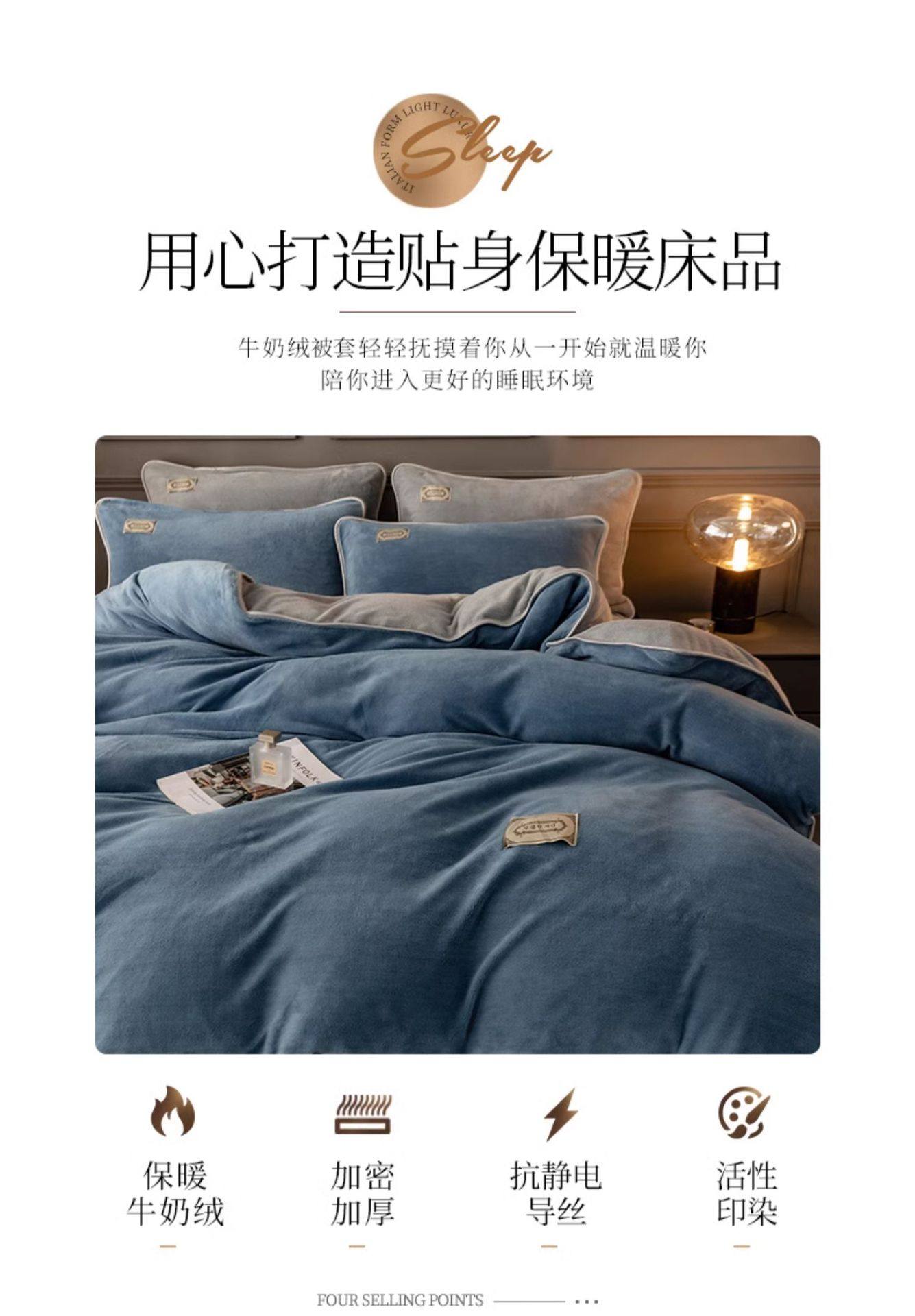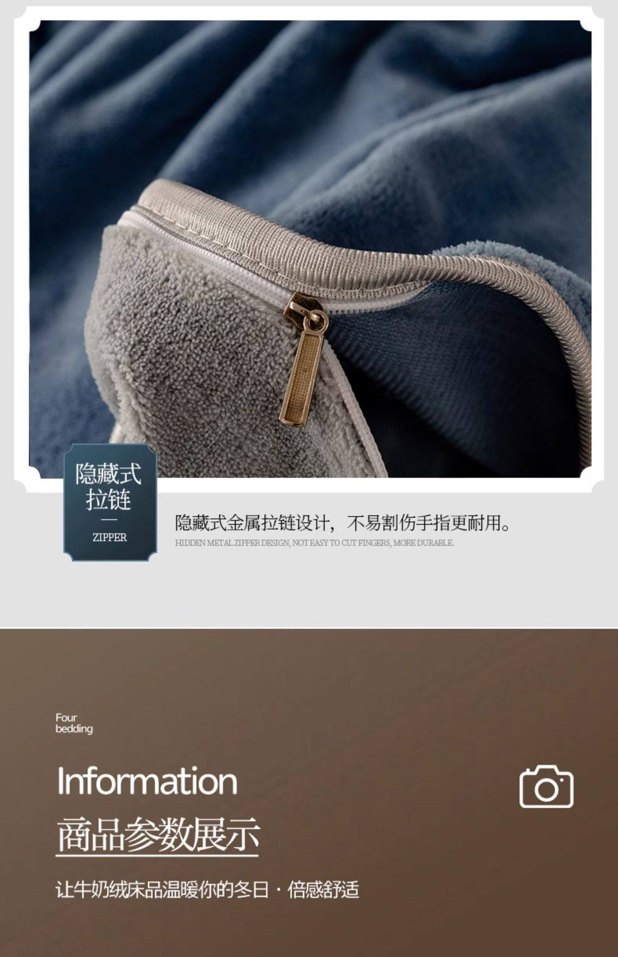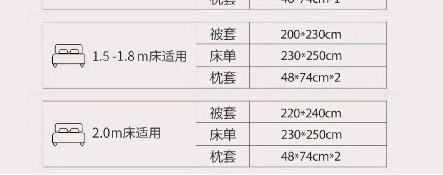 | Size specifications | 150x200cm [double-sided thickened milk velvet that is not easy to shed],180x220cm [double-sided thickened milk velvet that is not easy to shed],200x230cm [double-sided thickened milk velvet that is not easy to shed],220x240cm [double-sided thickened milk velvet that is not easy to shed],1.2m bed [three-piece bed sheet set] - suitable for 150x200cm quilt core,1.5m bed [sheet set of four] - suitable for 200x230cm quilt core,1.8m bed [sheet set of four] - suitable for 200x230cm quilt core,2.0m bed [sheet set of four] - suitable for 220x240cm quilt core,1.5m bed [four-piece fitted sheet set] - suitable for 200x230cm quilt core,1.8m bed [four-piece fitted sheet set] - suitable for 200x230cm quilt core |