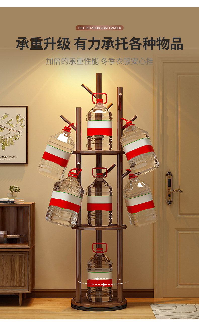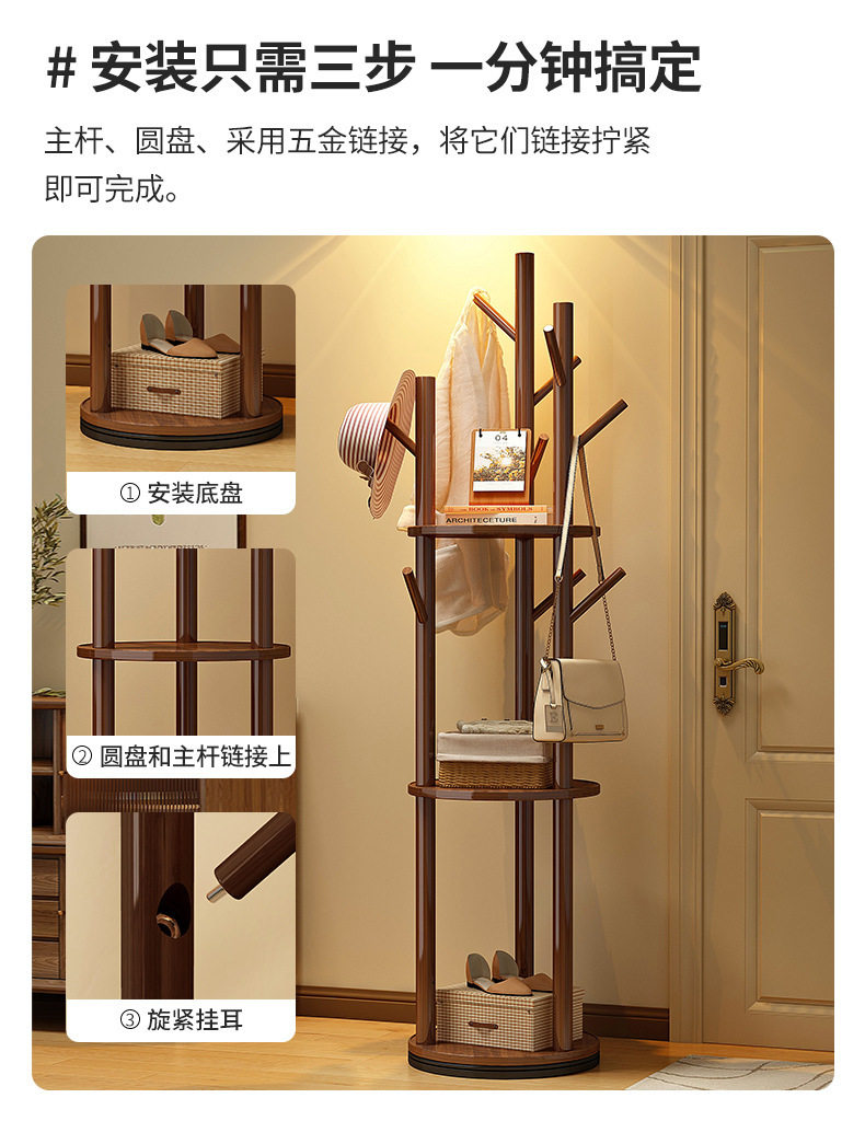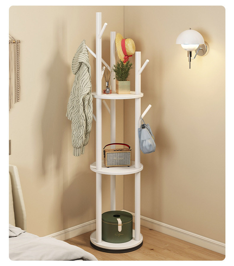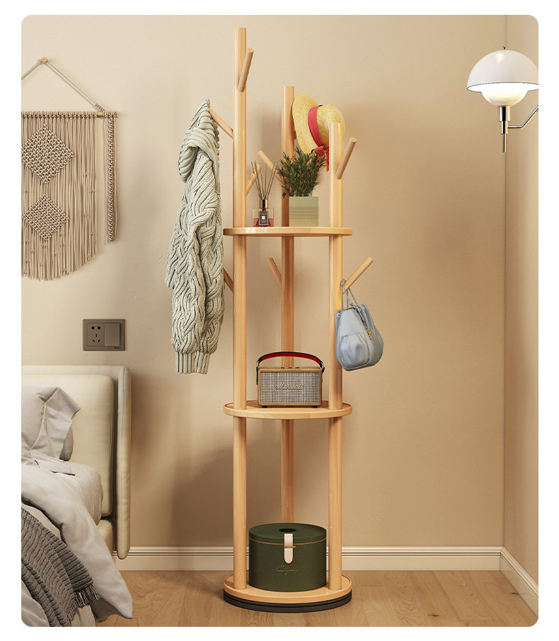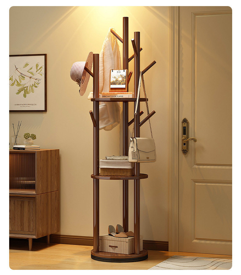 Solid Wood Rotating Coat Rack Floor-Standing Vertical Clothes Rack Bedroom Home Living Room Light Luxury Storage Rack