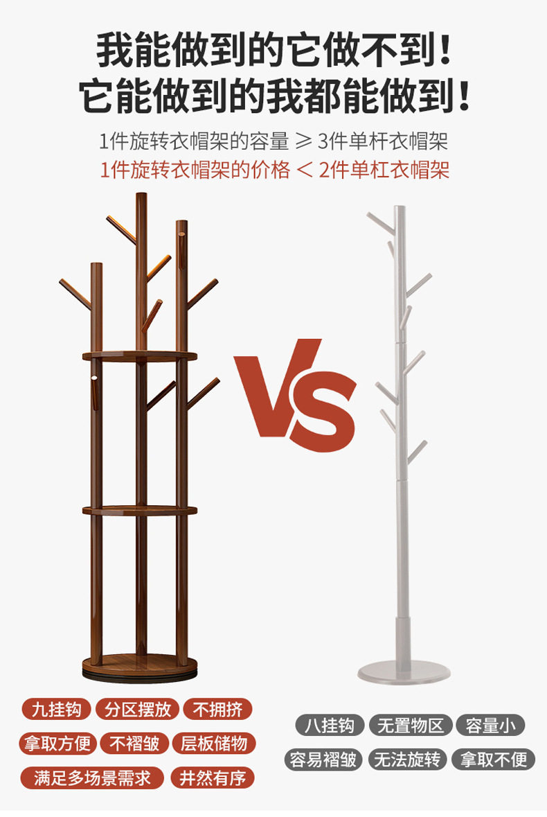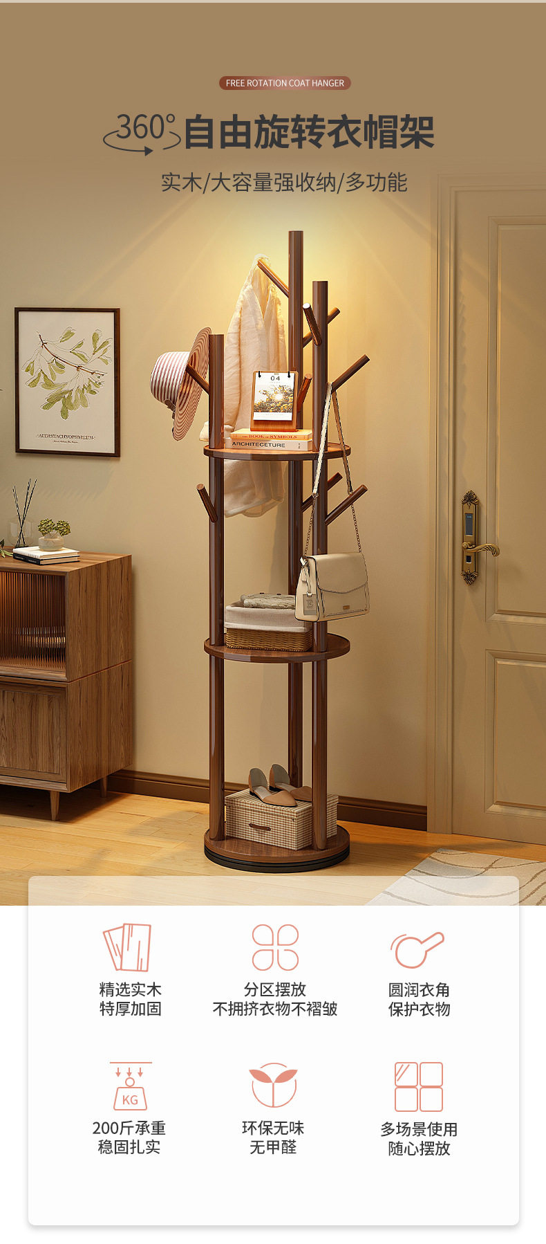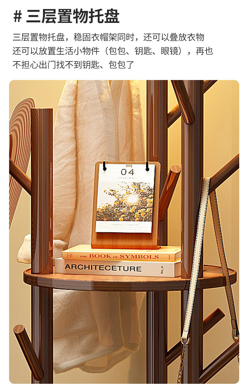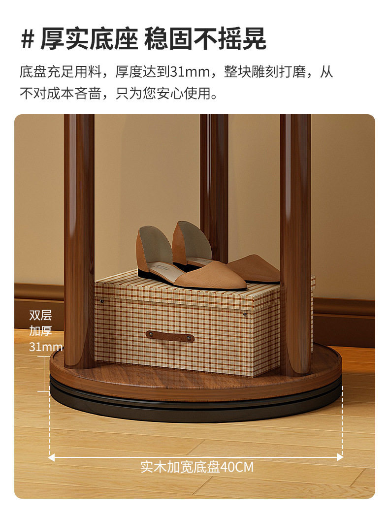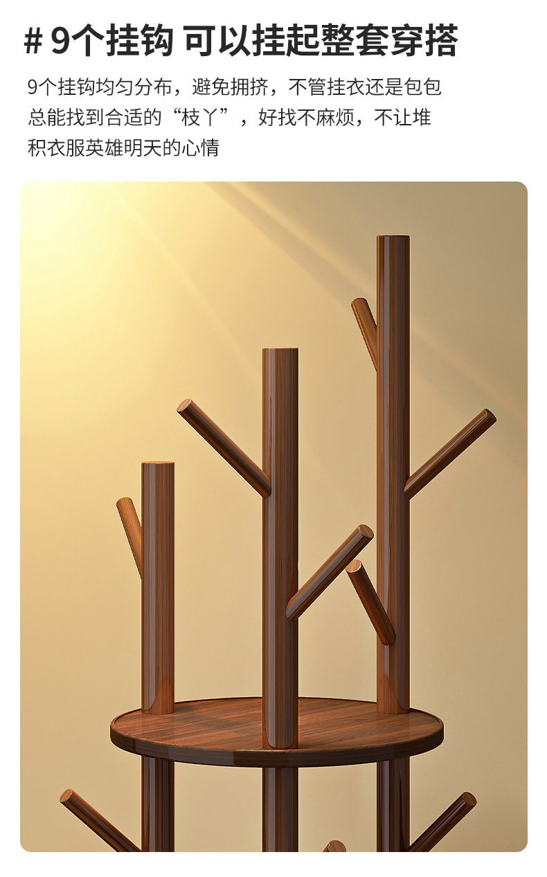 Solid Wood Rotating Coat Rack Floor-Standing Vertical Clothes Rack Bedroom Home Living Room Light Luxury Storage Rack
