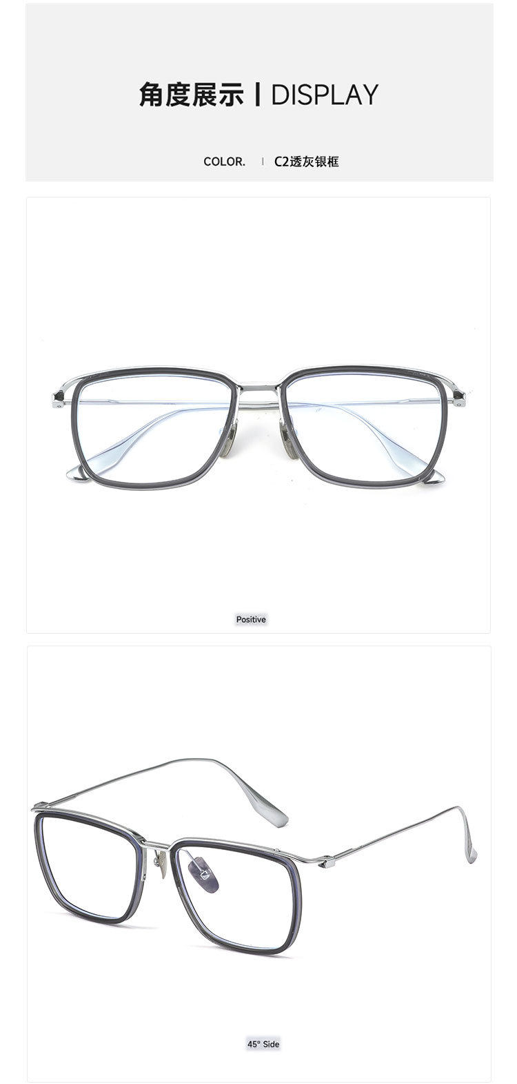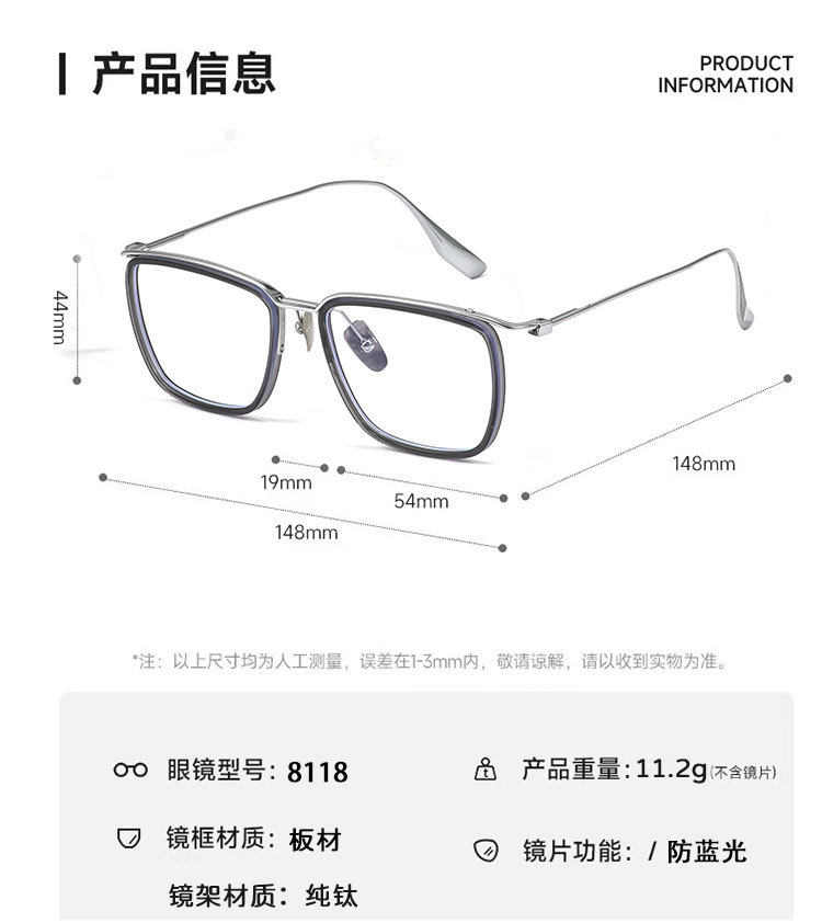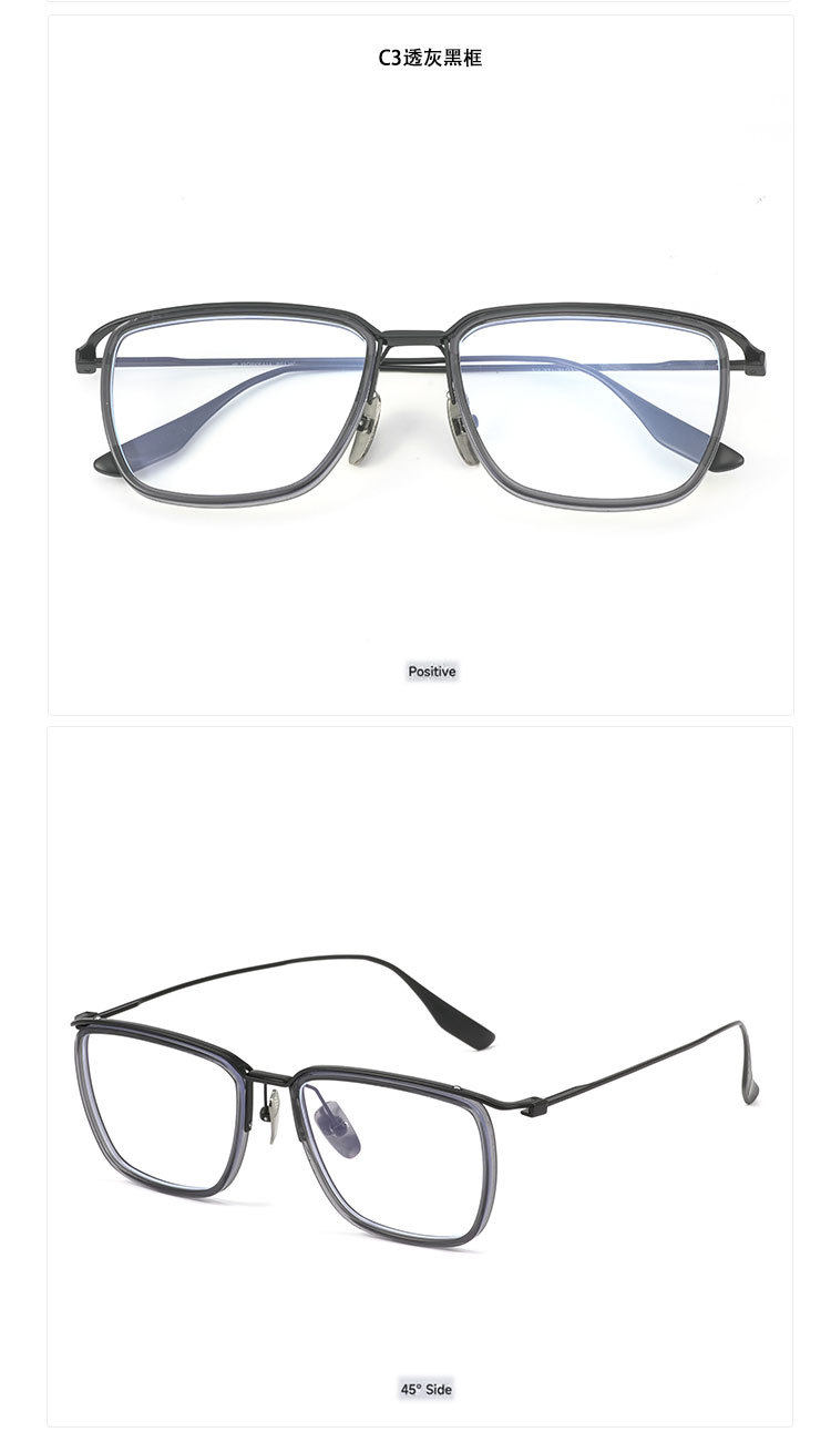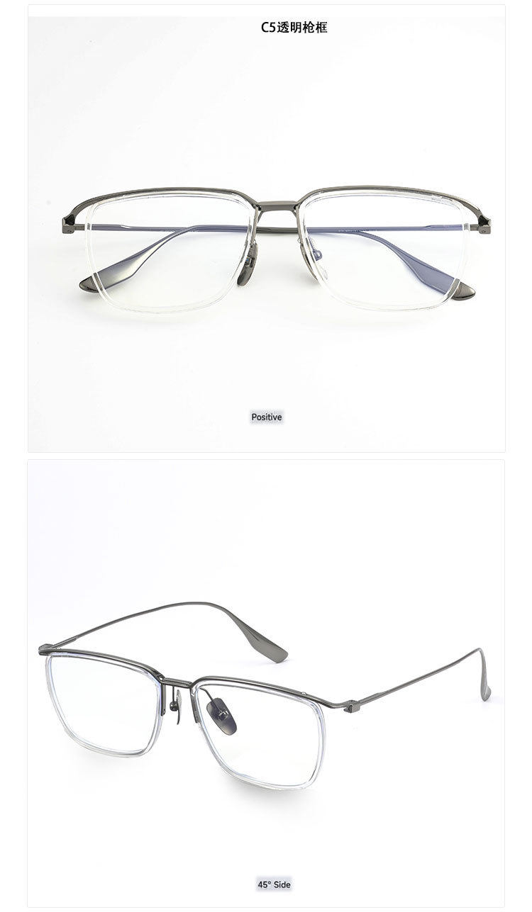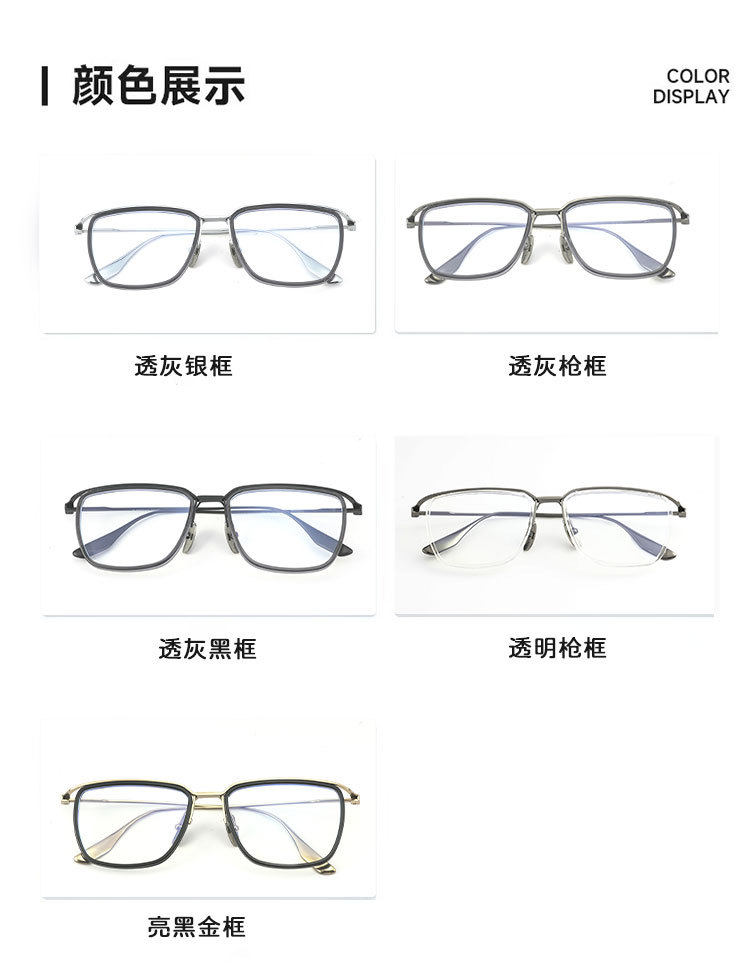| Frame color | C1 bright black gold frame-anti-blue light,C2 transparent gray silver frame-anti-blue light,C3 transparent gray sand black frame-anti-blue light,C4 transparent gray gun frame-anti-blue light,C5 transparent gun frame-anti-blue light,Please contact customer service for prescription,Exclusive protection rights/traceless delivery,Duqiao plate top supplier,Baichuan's unique value-added services |