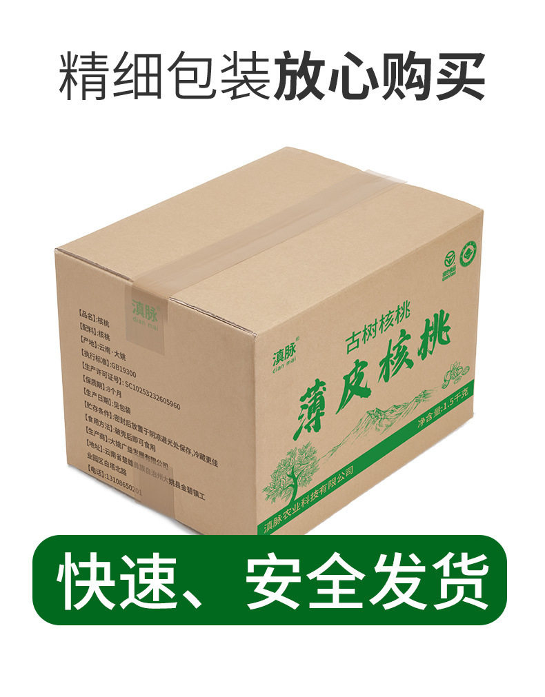 | Packaging specifications | 【paper】walnut large fruit 0.5kg,【paper】walnut large fruit 1.5kg,【paper】walnut large fruit 2.5kg,[thin skin] walnut large fruit 0.5kg,[thin skin] walnut large fruit 1.5kg,[thin skin] walnut large fruit 2.5kg |