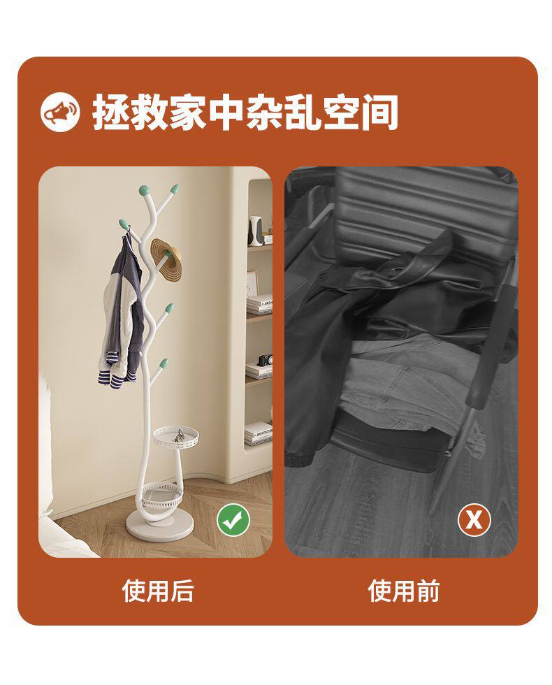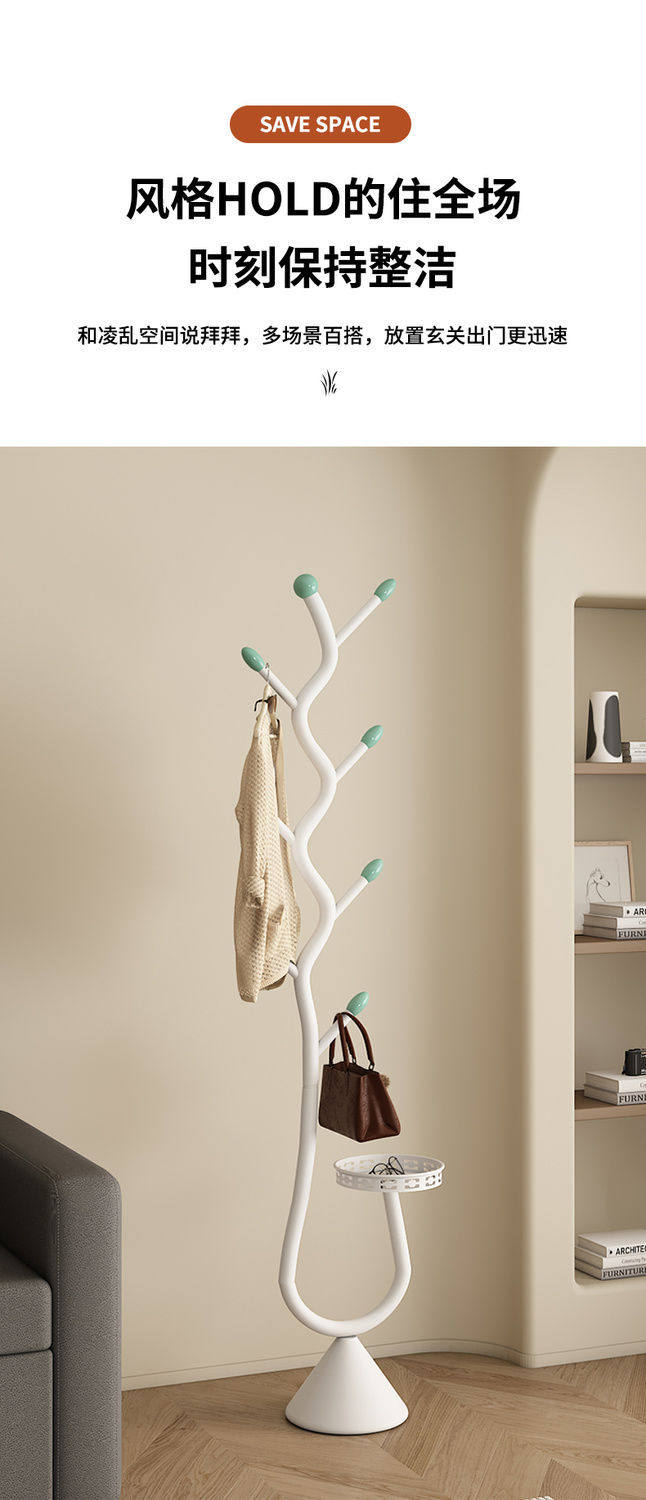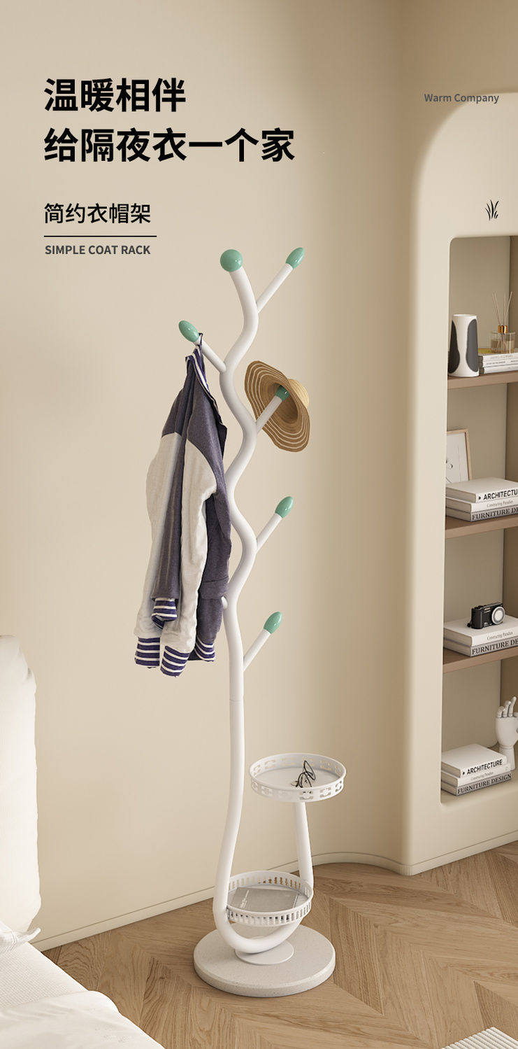 Clothes Rack Floor-Standing for Home Use in Living Room and Bedroom, Light Luxury Metal Coat Rack, Simple Cream Style Bag Rack