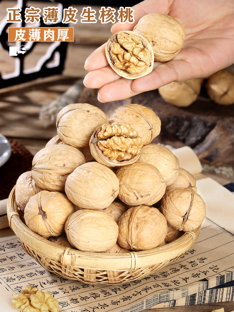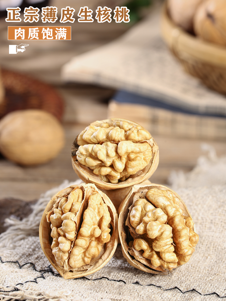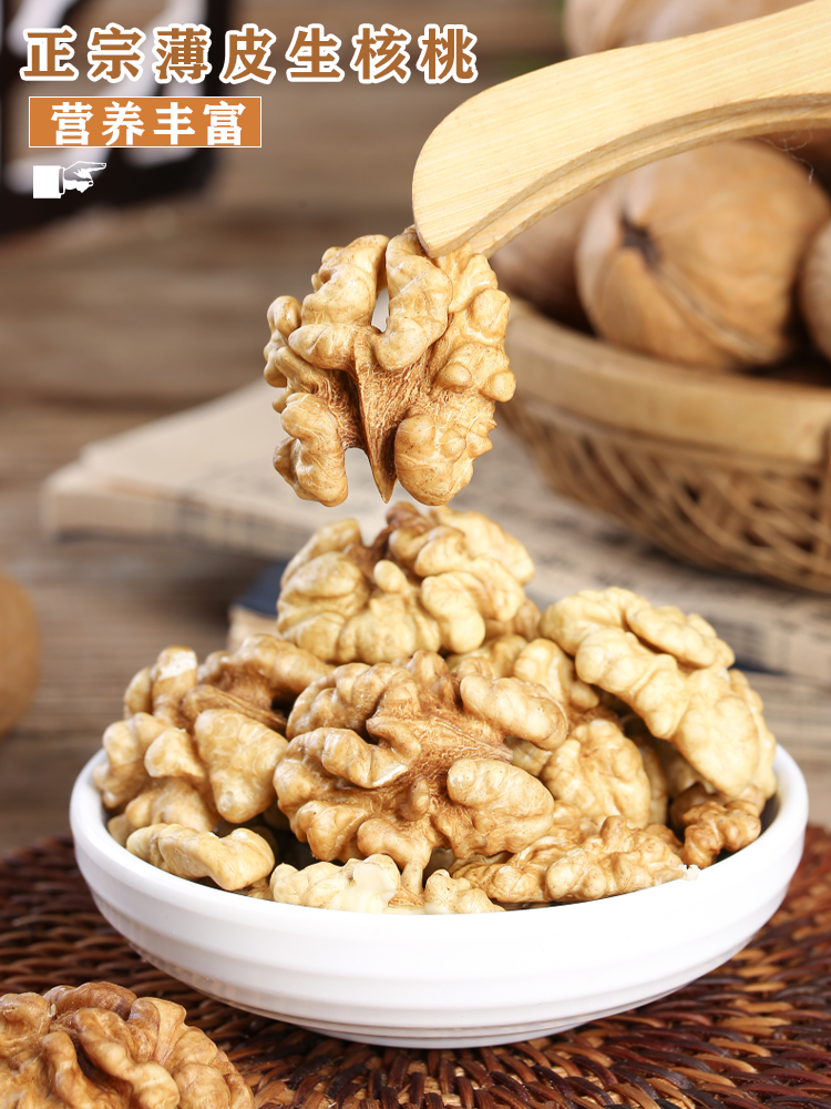 | Packaging specifications | Paper-skinned walnuts 0.5kg (open by squeezing with hands),【thin-skinned raw walnuts】 1.5kg,Paper-skinned walnuts 1.0kg (open by squeezing with hands),[thin-skinned raw walnuts] 0.5kg (comes with clip),[thin-skinned raw walnuts] 1.0kg (comes with clip) |