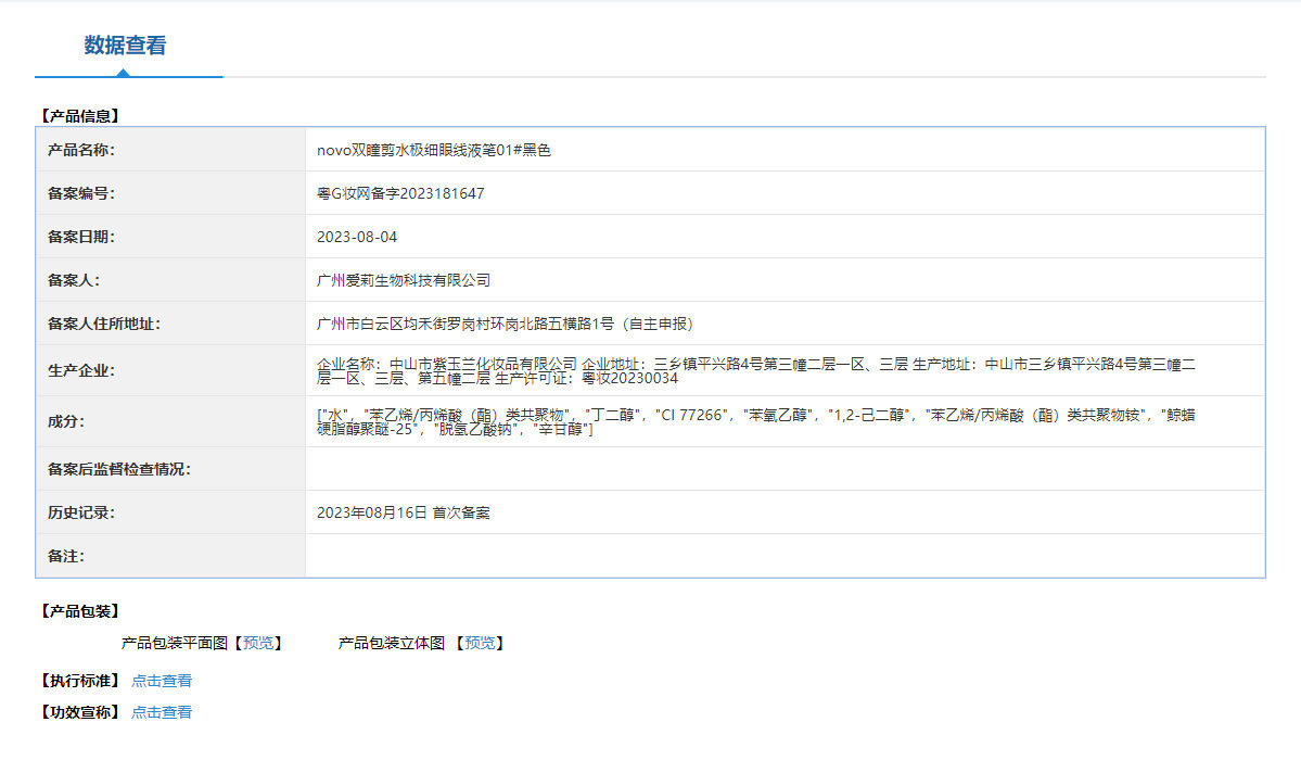 | Non-special cosmetics registration certificate number | Guangdong g makeup network preparation number 2023181647 |