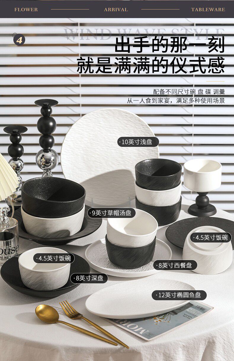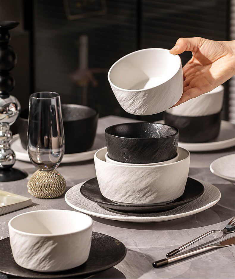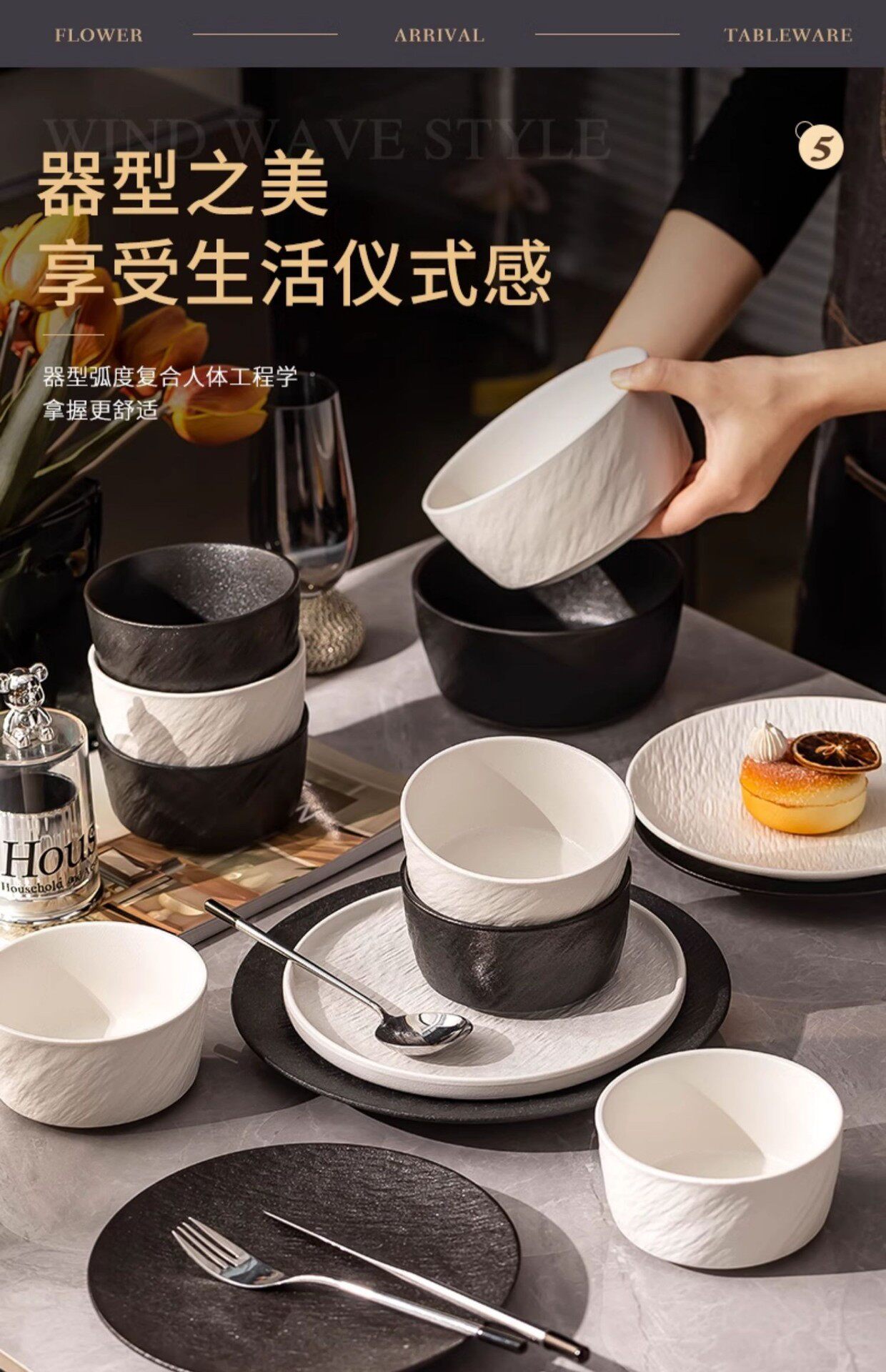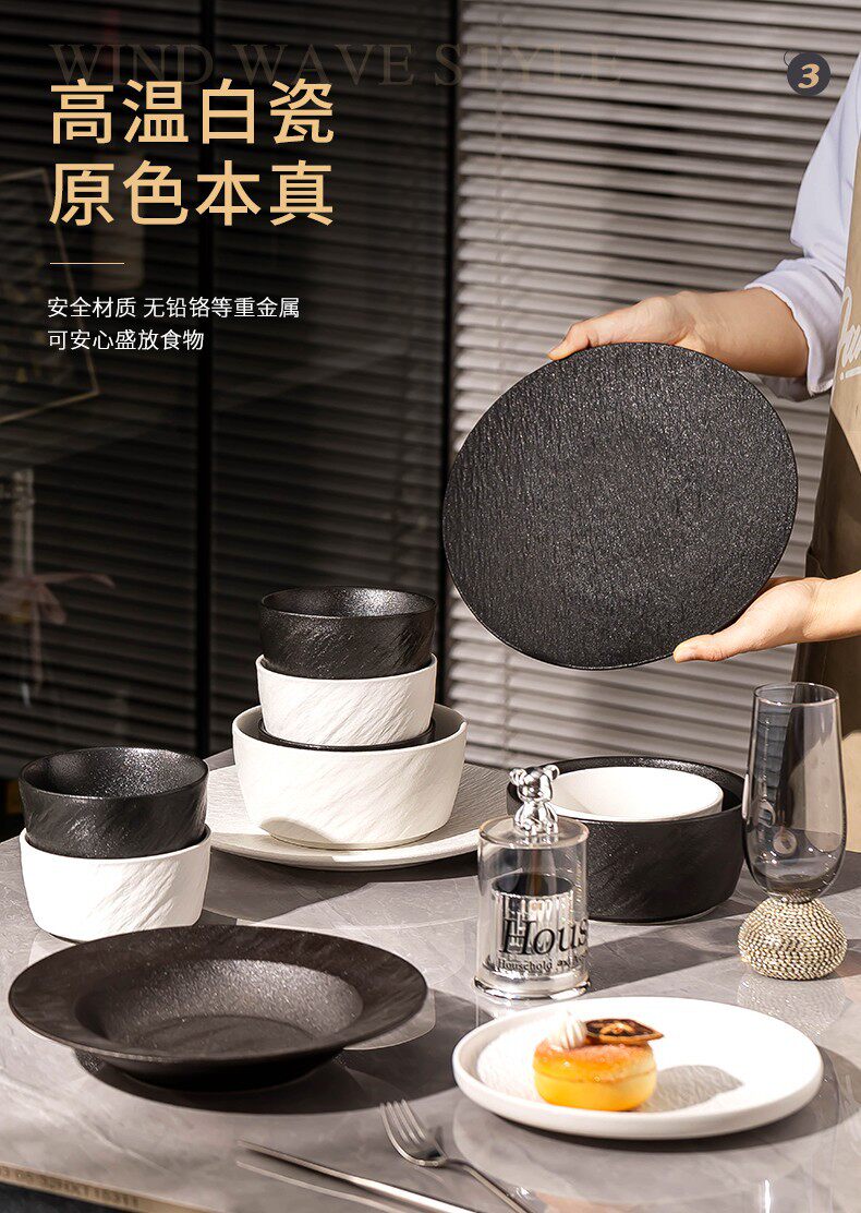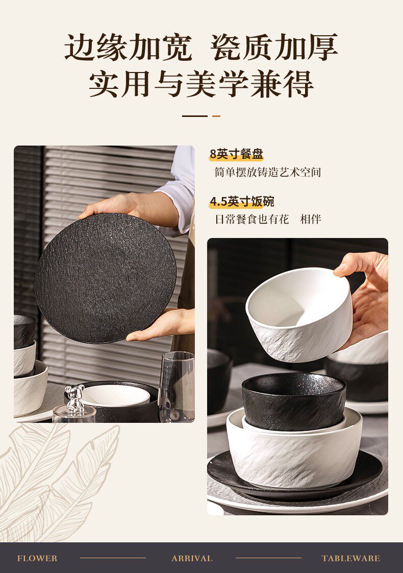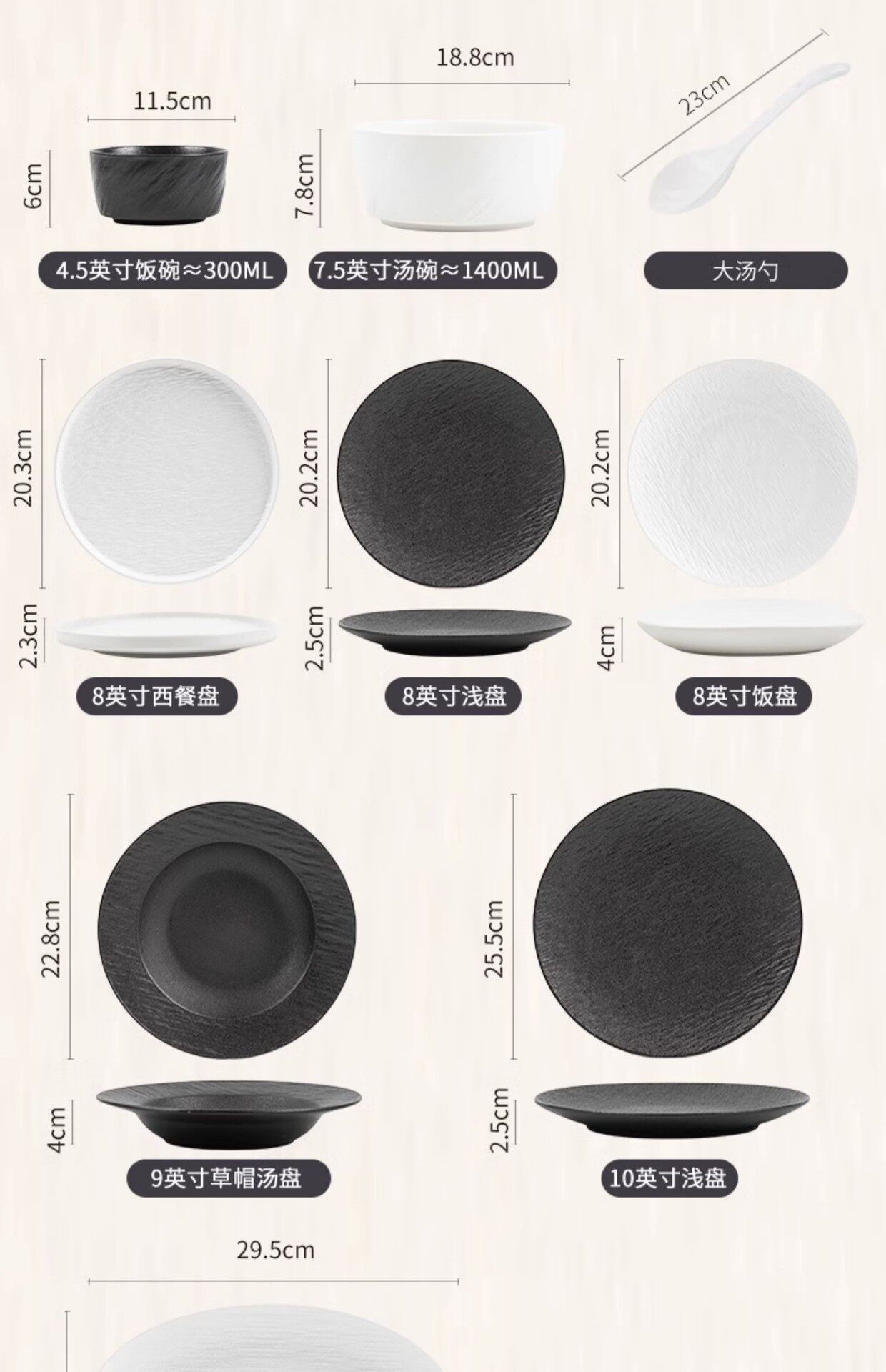 | Color | Rock black - 4.5inch rice bowls,Rock black - 6inch noodle bowls,Rock black- 7.5inch soup bowl,Rock black - 8inch shallow plate,Rock black - 8inch deep plate,Rock black- 9inch straw hat plate,Rock black - 10inch shallow plate,Rock black- 12inch fish plate,Rock white - 4.5inch rice bowl,Rock white- 6inch noodle bowl,Rock white- 7.5inch soup bowl,Rock white - 8inch shallow plate,Rock white - 8inch deep plate,Rock white- 9inch straw hat plate,Rock white - 10inch shallow plate,Rock white- 12inch fish plate |