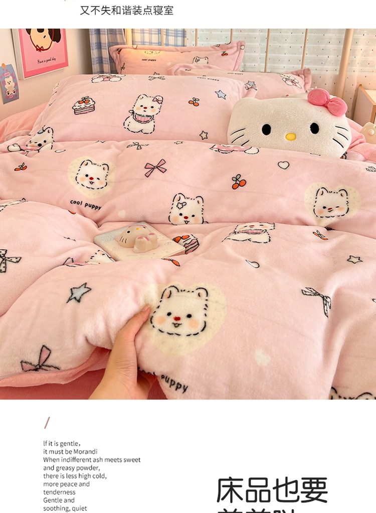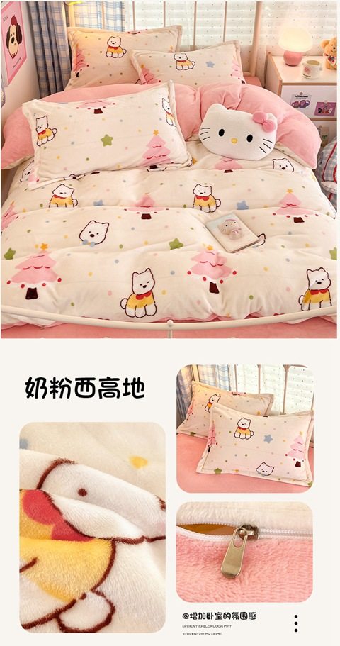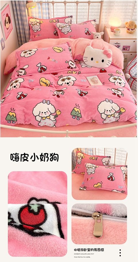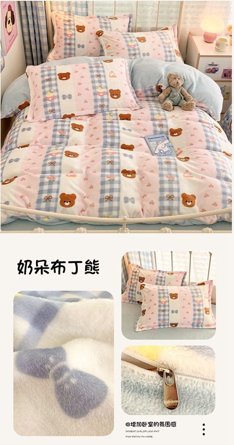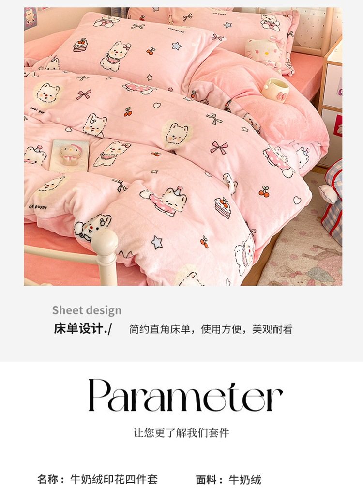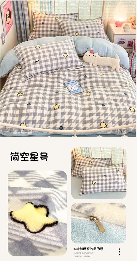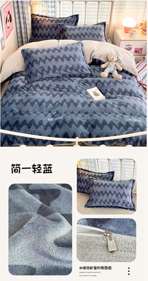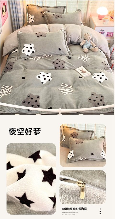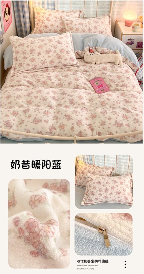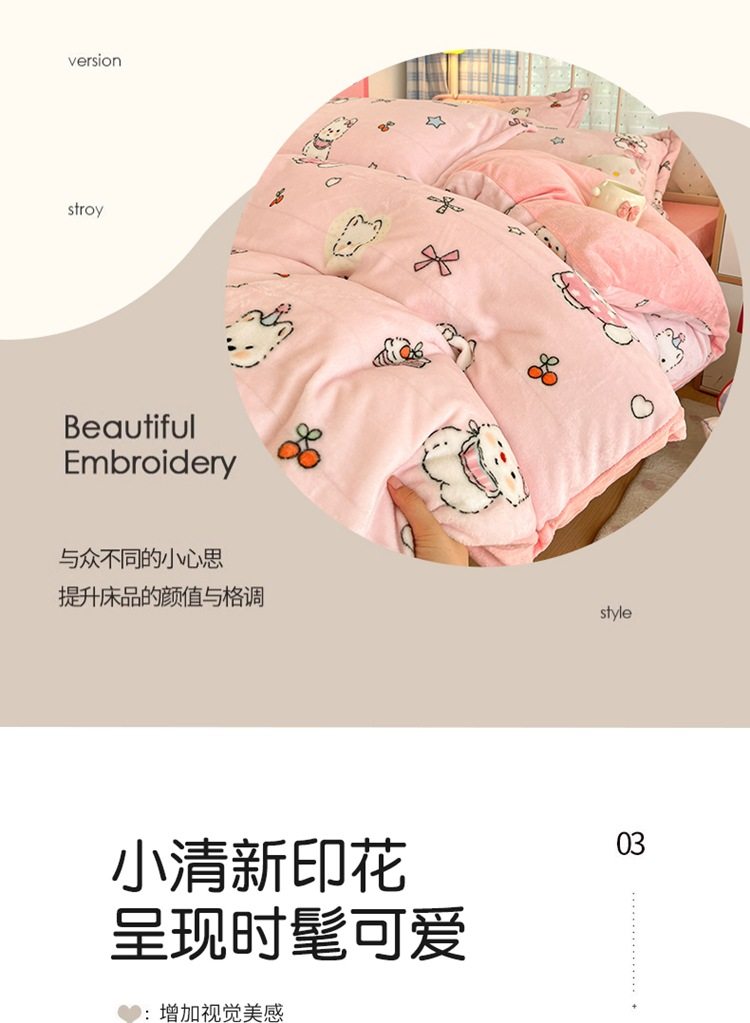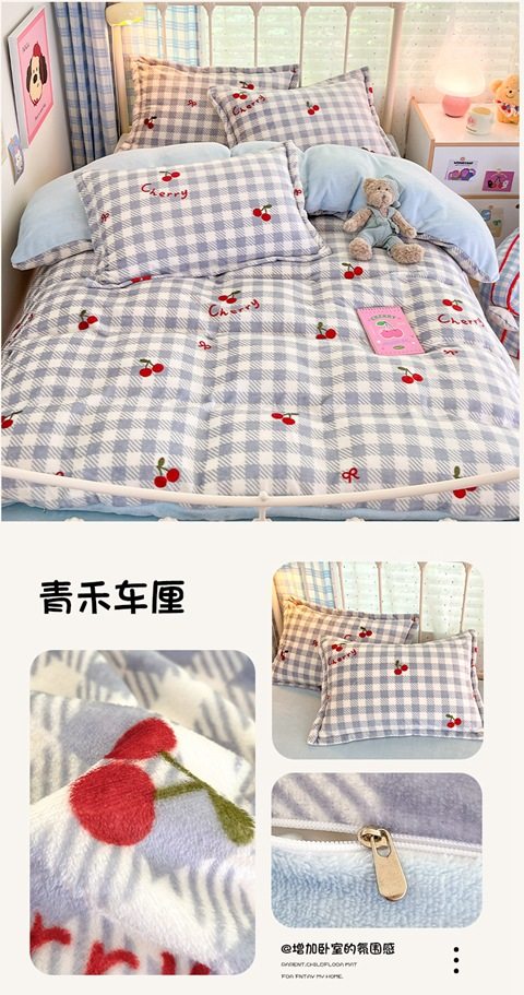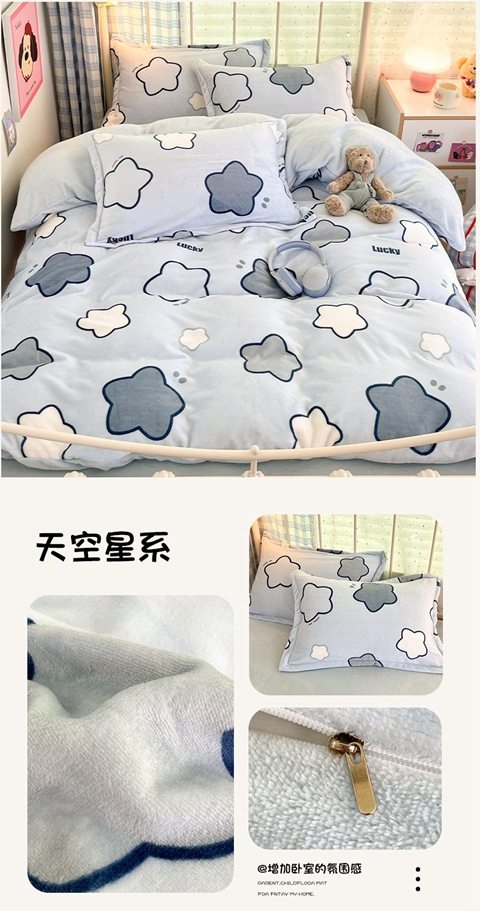 Winter Thickeneded Milk Velvet Bed Four-Piece Set New Coral Velvet Flannel Single Quilt Cover Bed Sheets Three-Piece Bedding Set