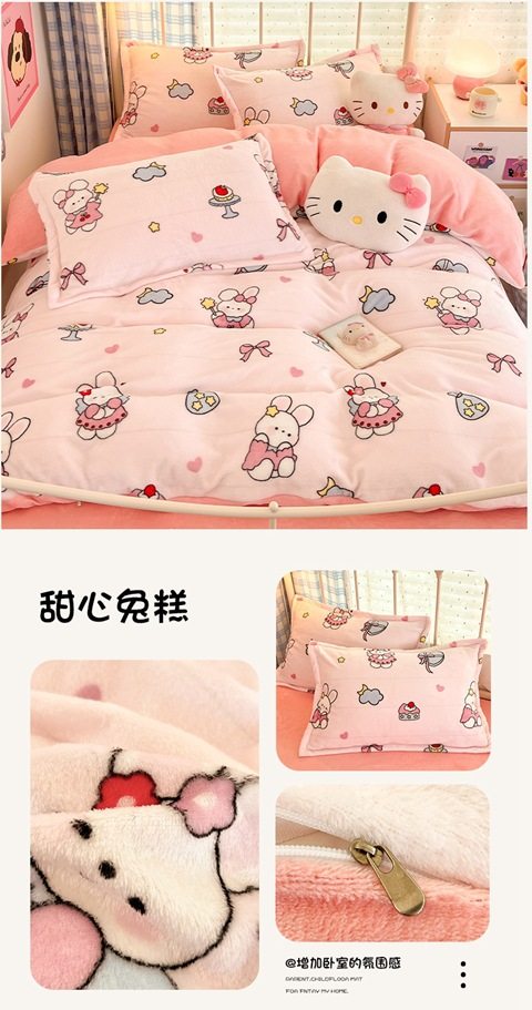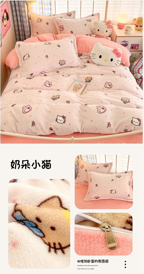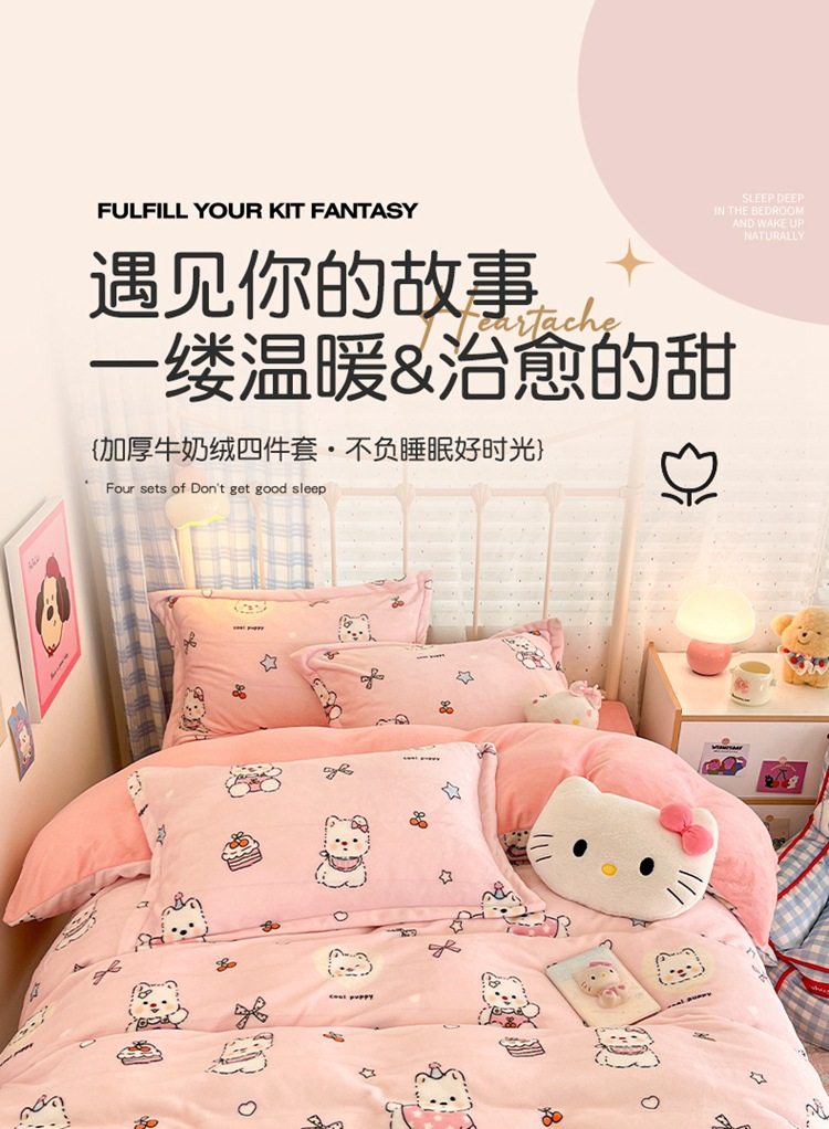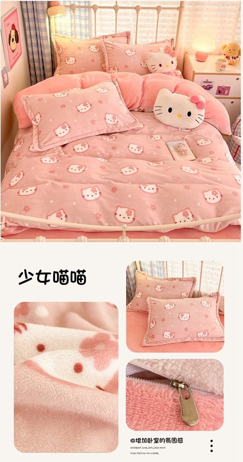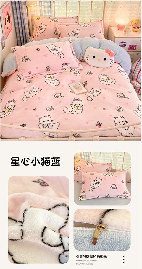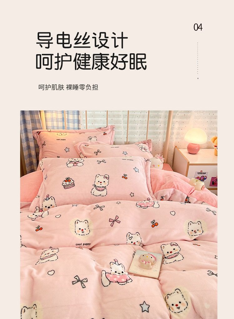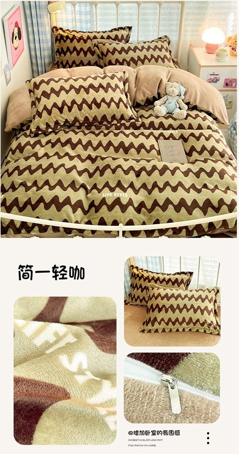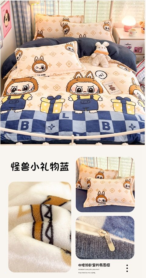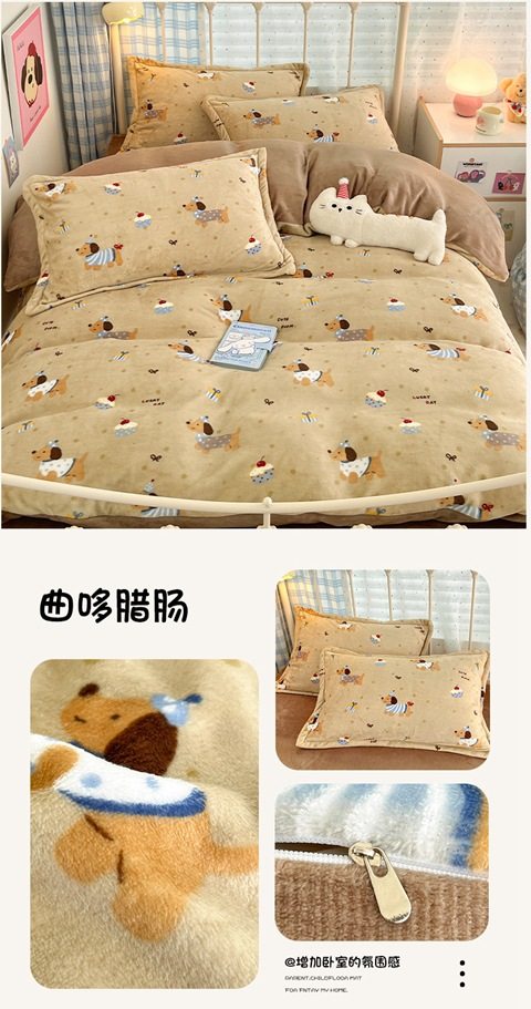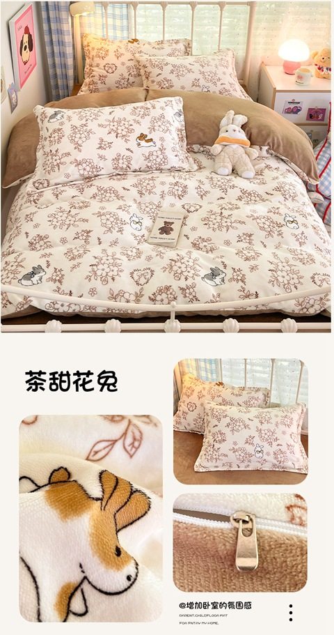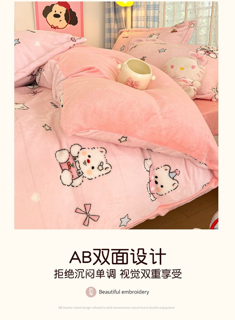 Winter Thickeneded Milk Velvet Bed Four-Piece Set New Coral Velvet Flannel Single Quilt Cover Bed Sheets Three-Piece Bedding Set
